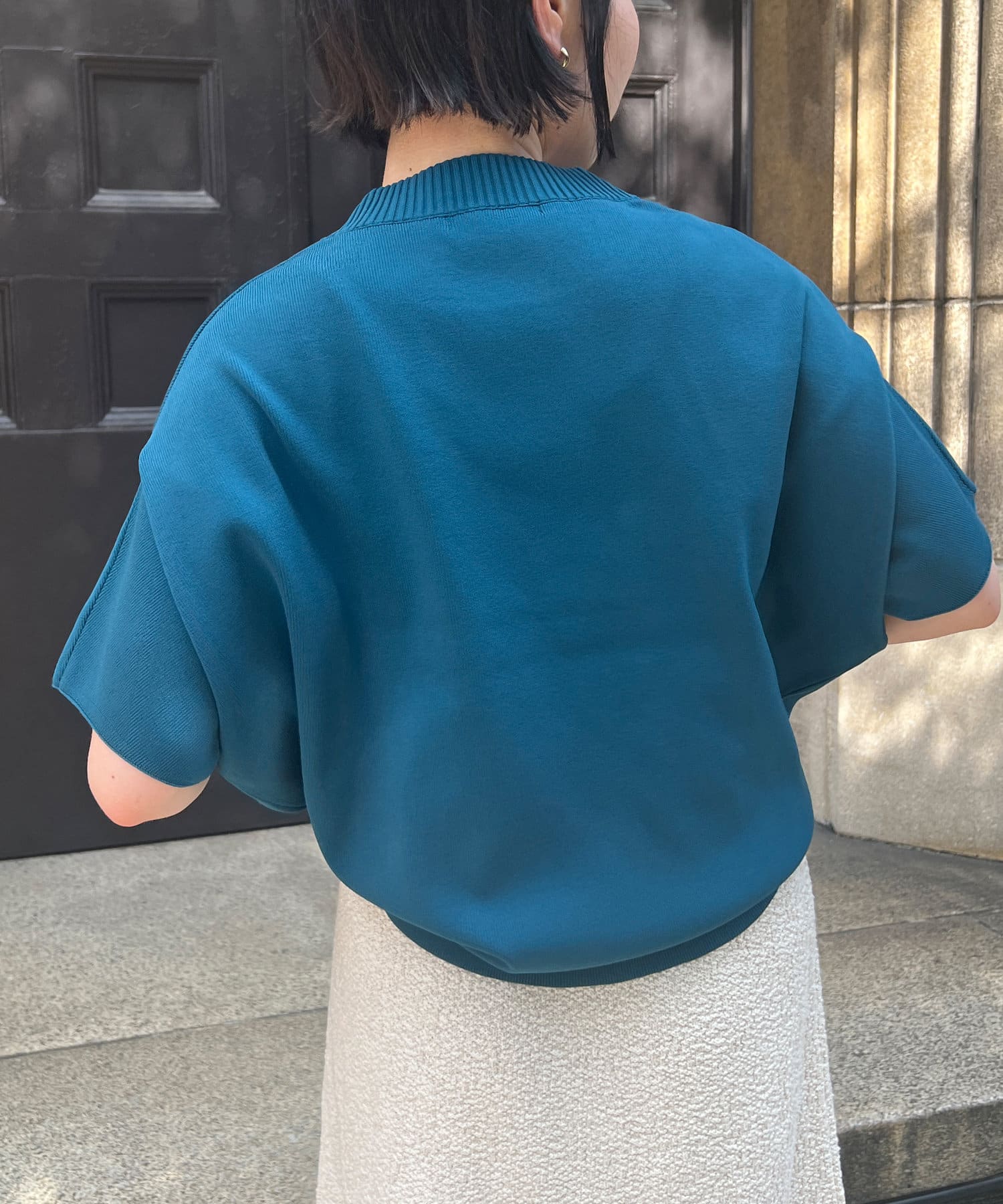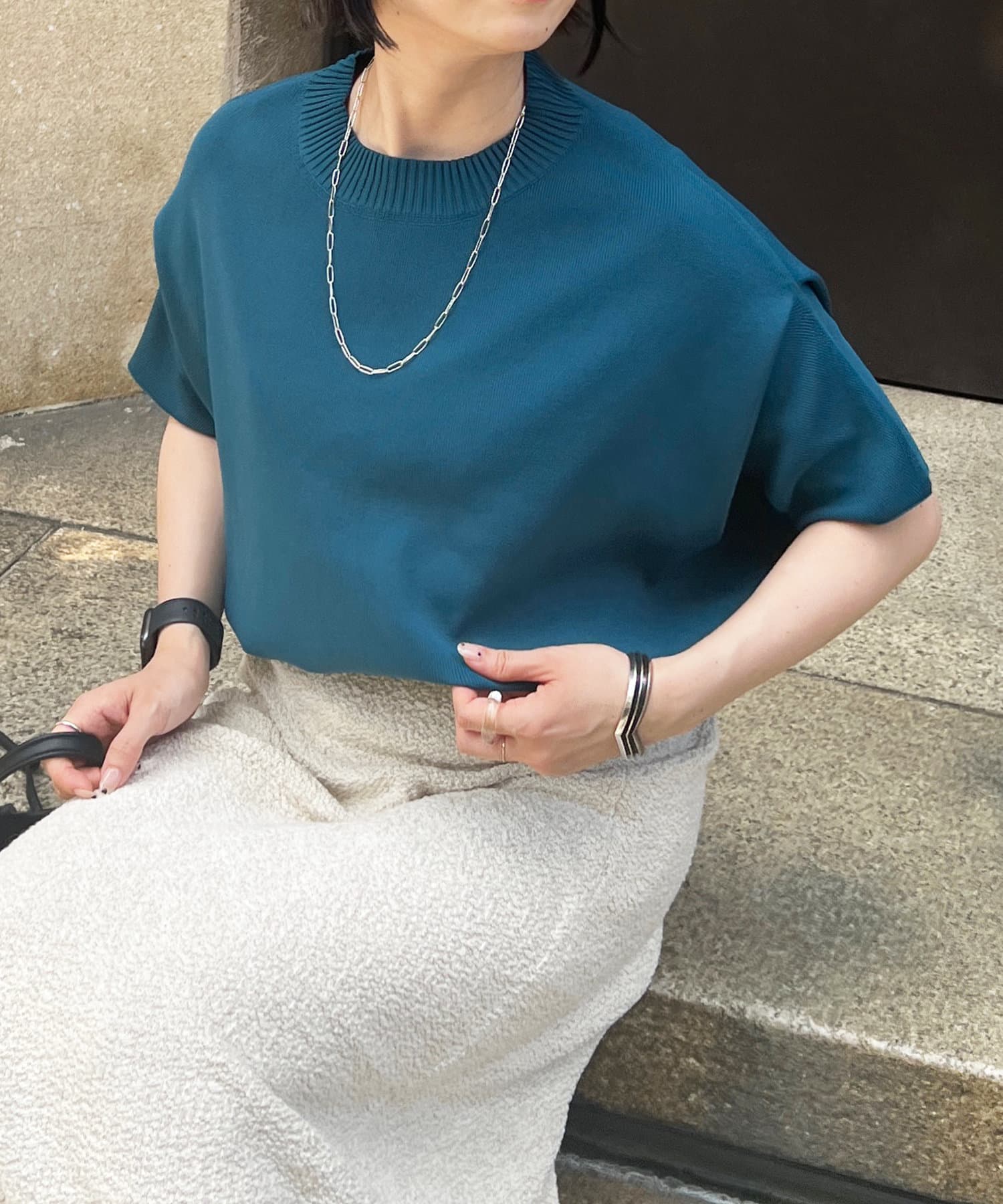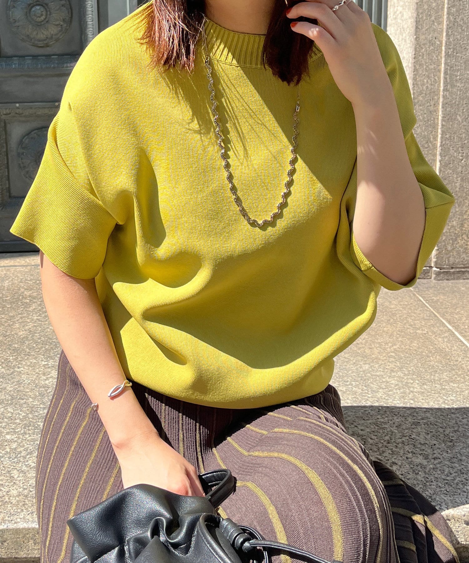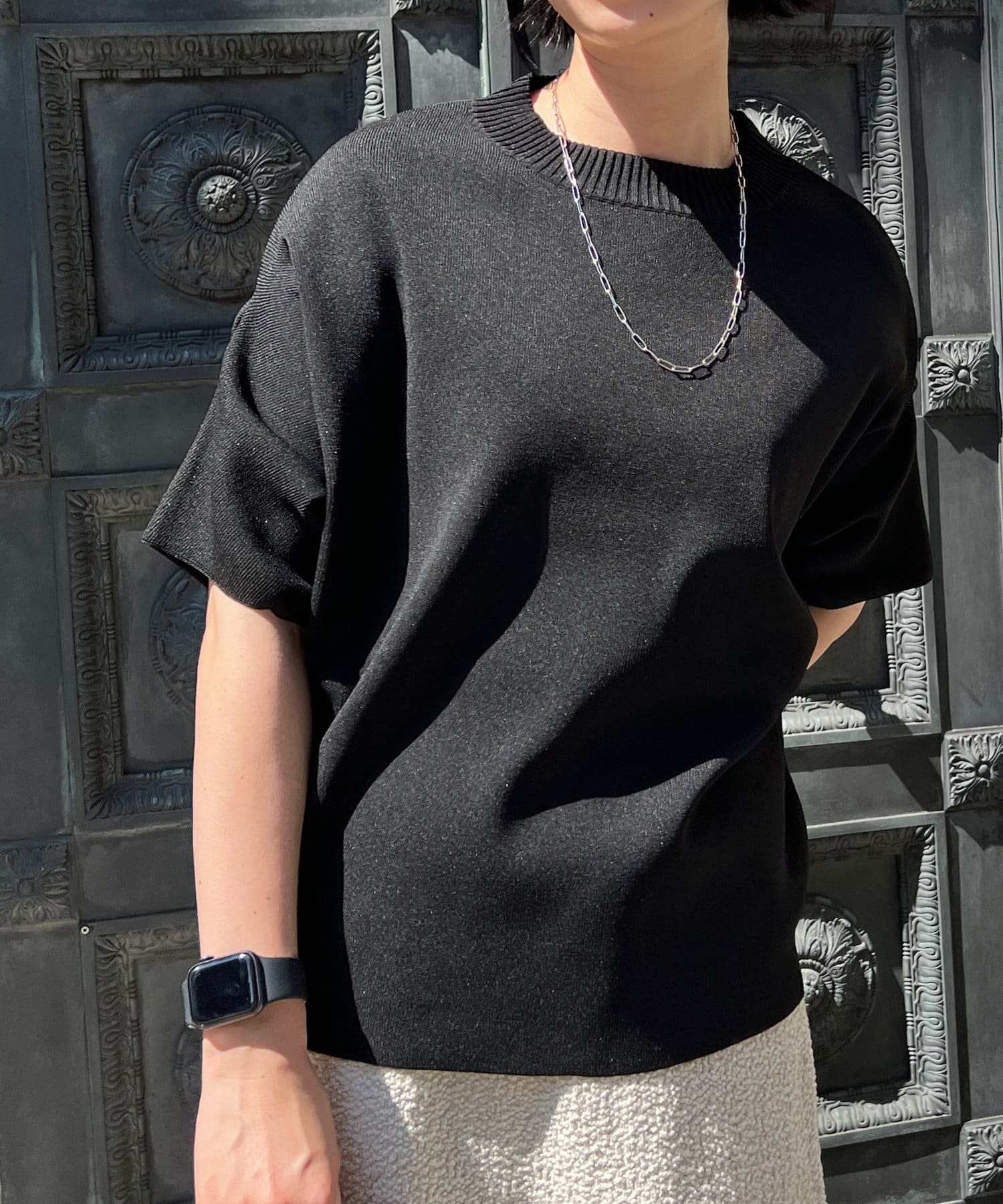 アップスリーブのデザインが二の腕を華奢に見せてくれるオトナに嬉しい万能ニット