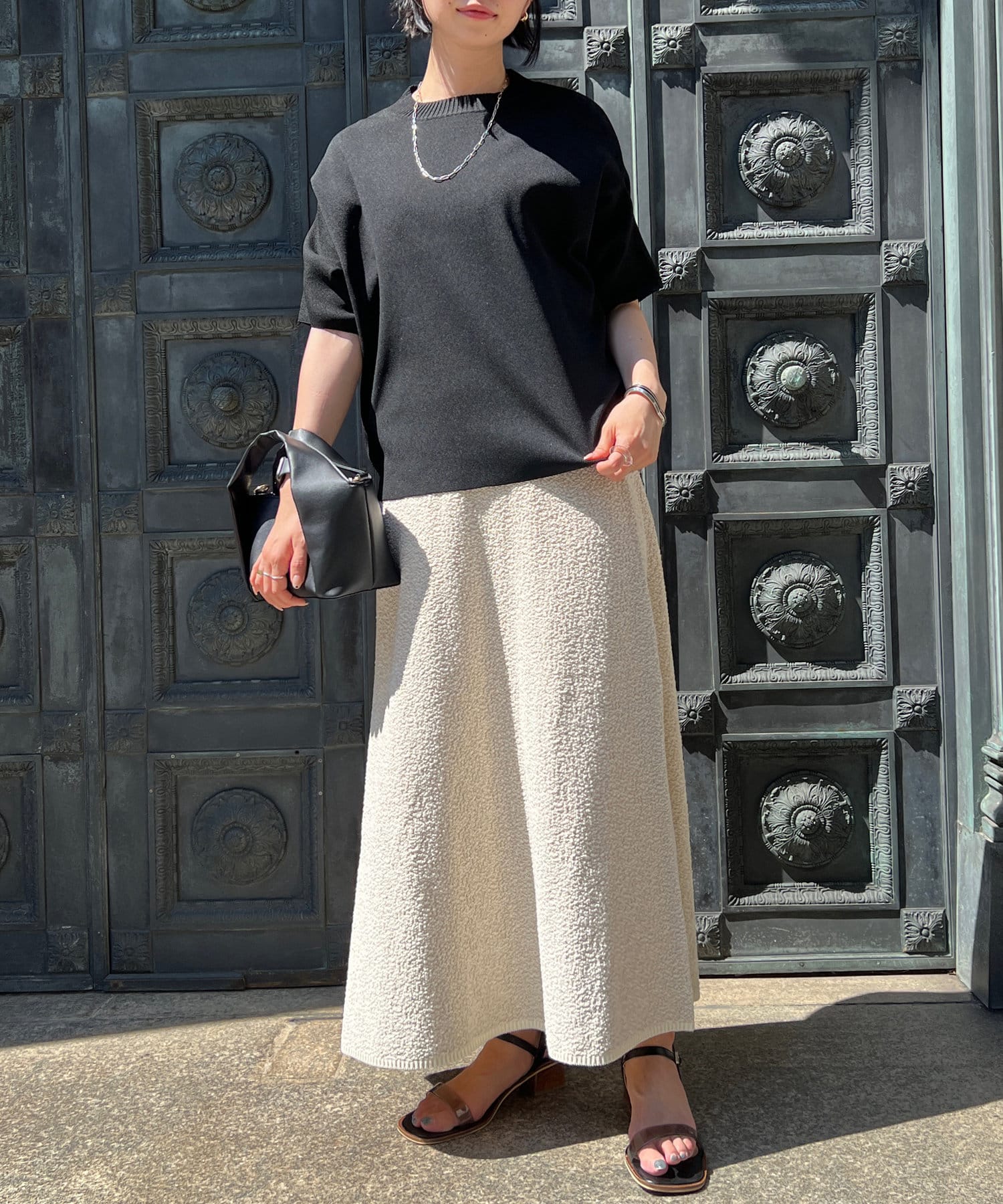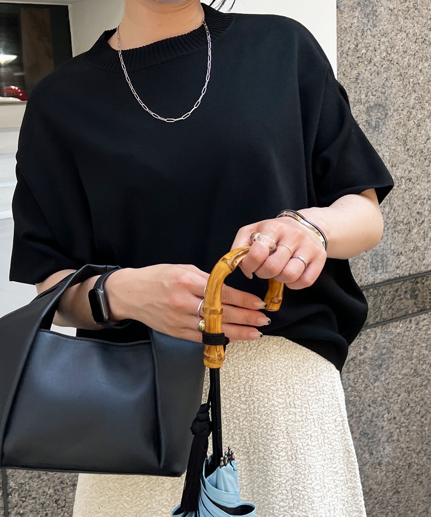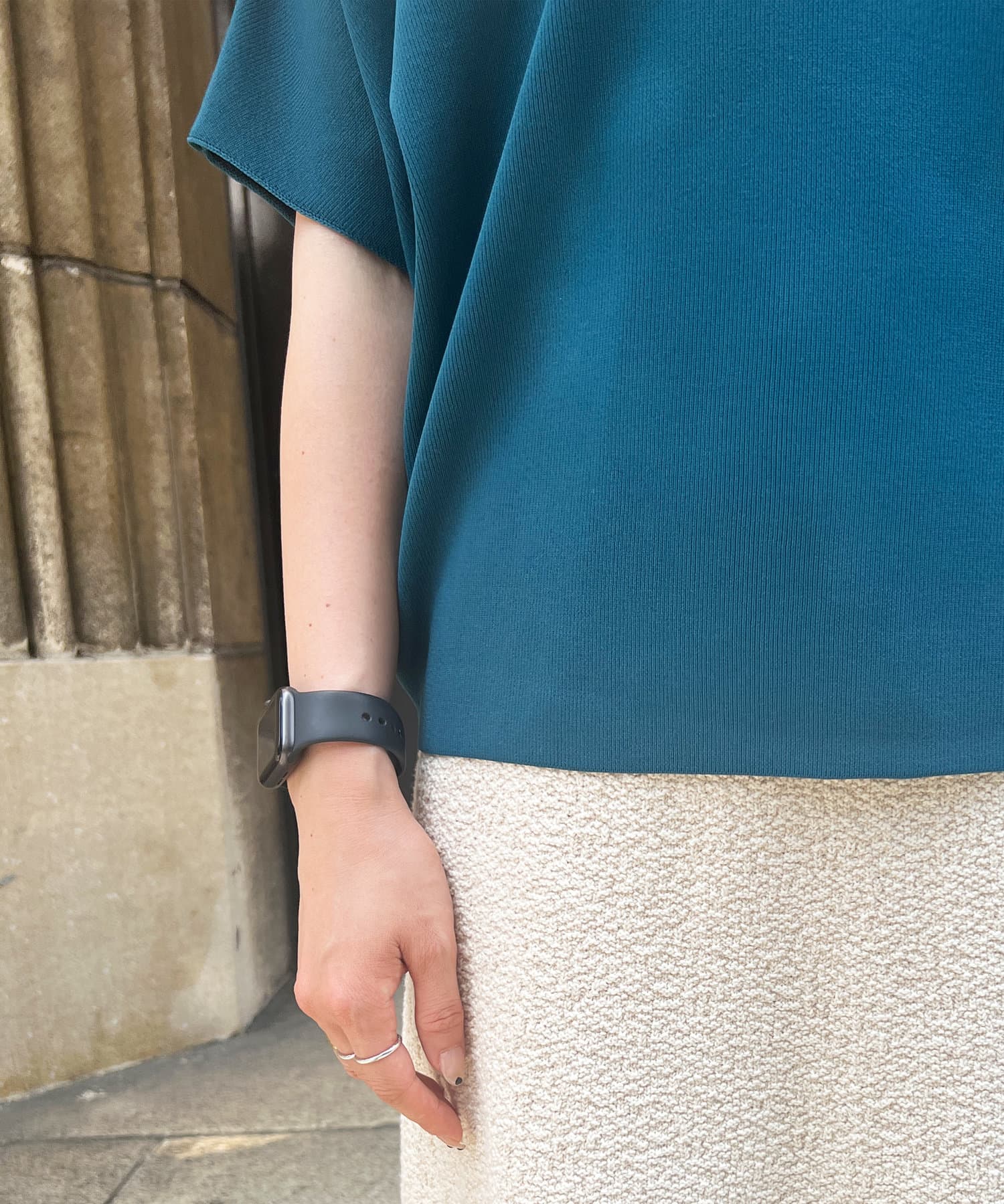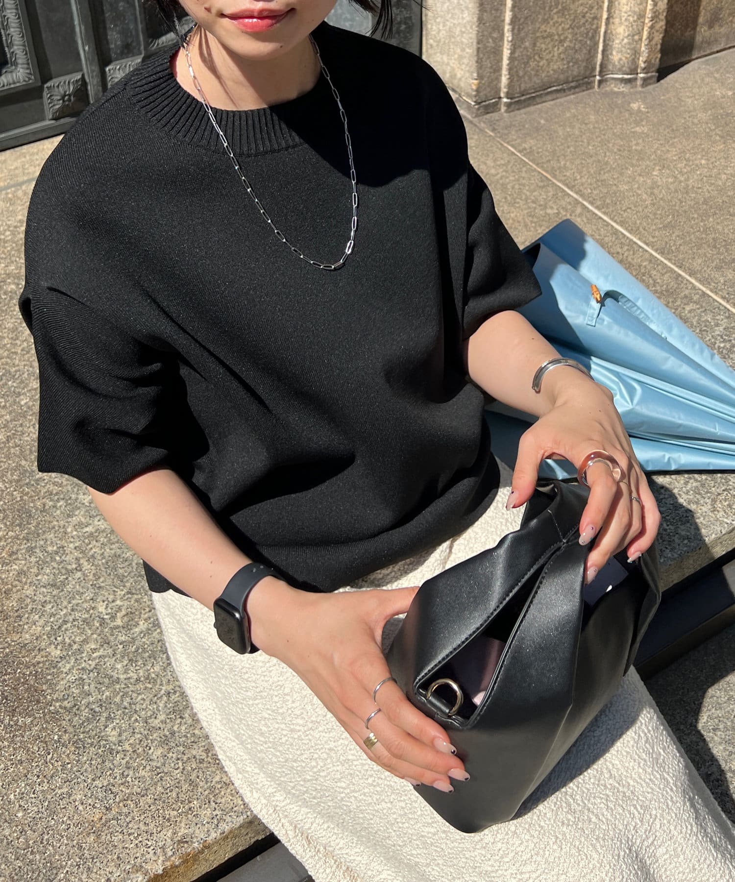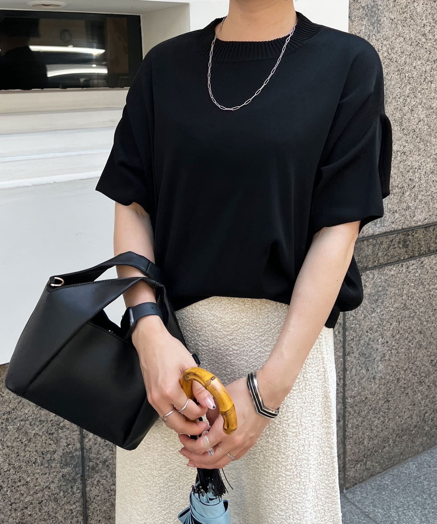 アップスリーブのデザインが二の腕を華奢に見せてくれるオトナに嬉しい万能ニット