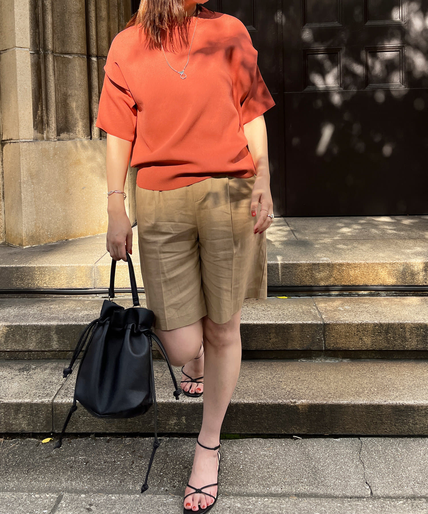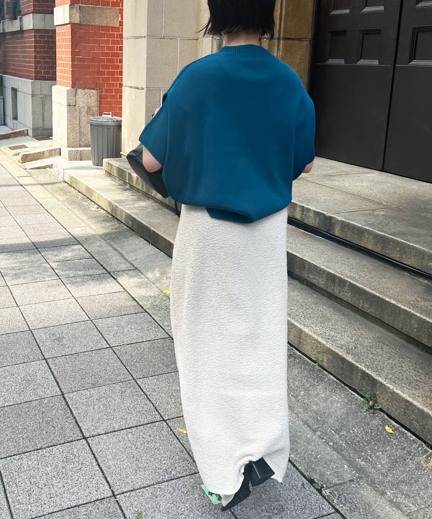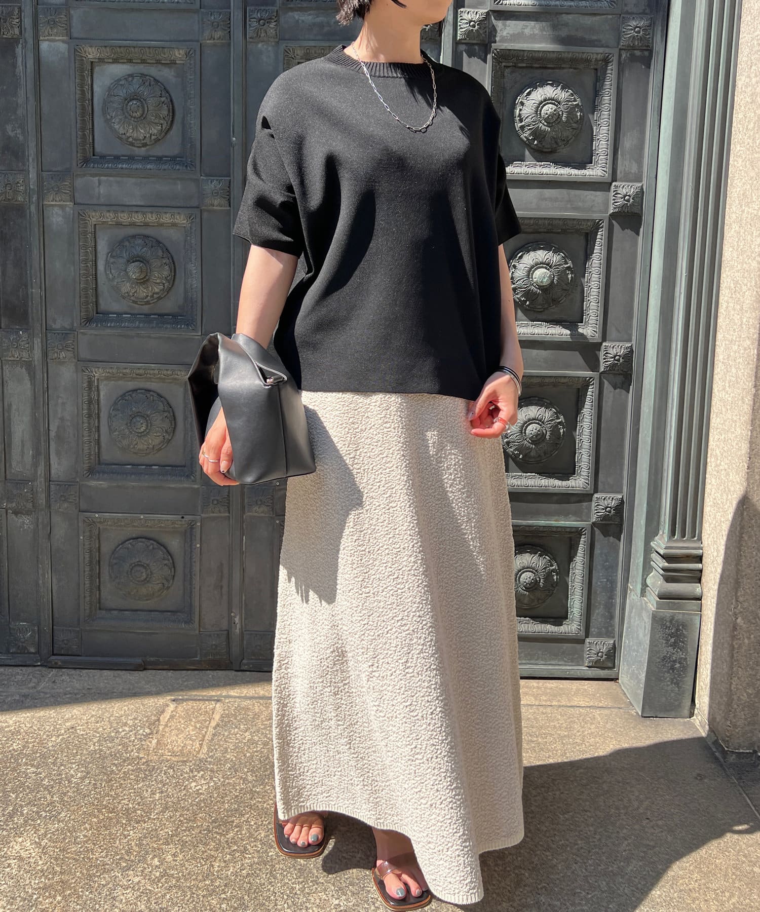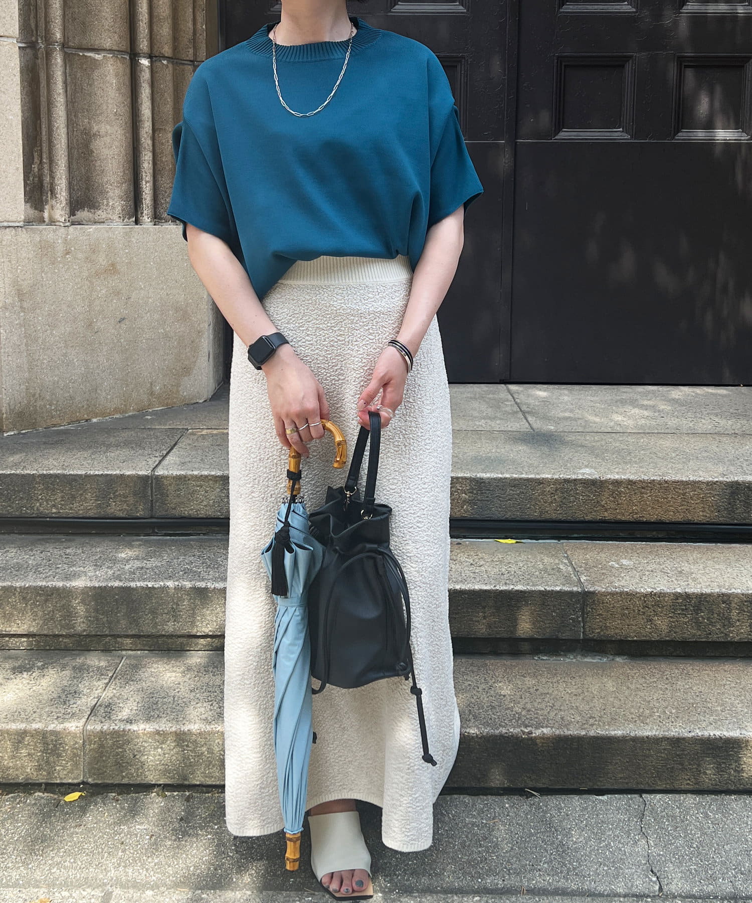 アップスリーブのデザインが二の腕を華奢に見せてくれるオトナに嬉しい万能ニット