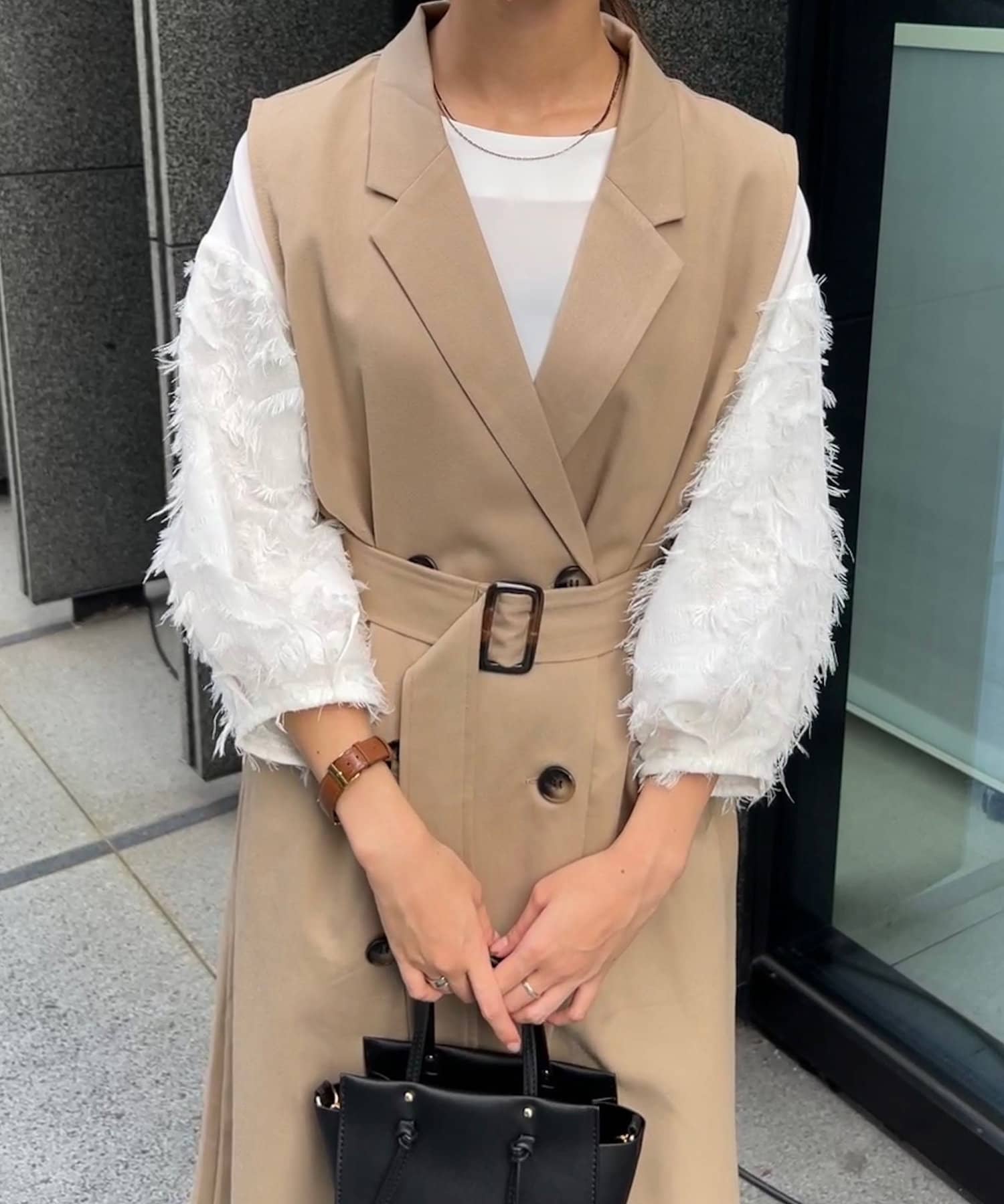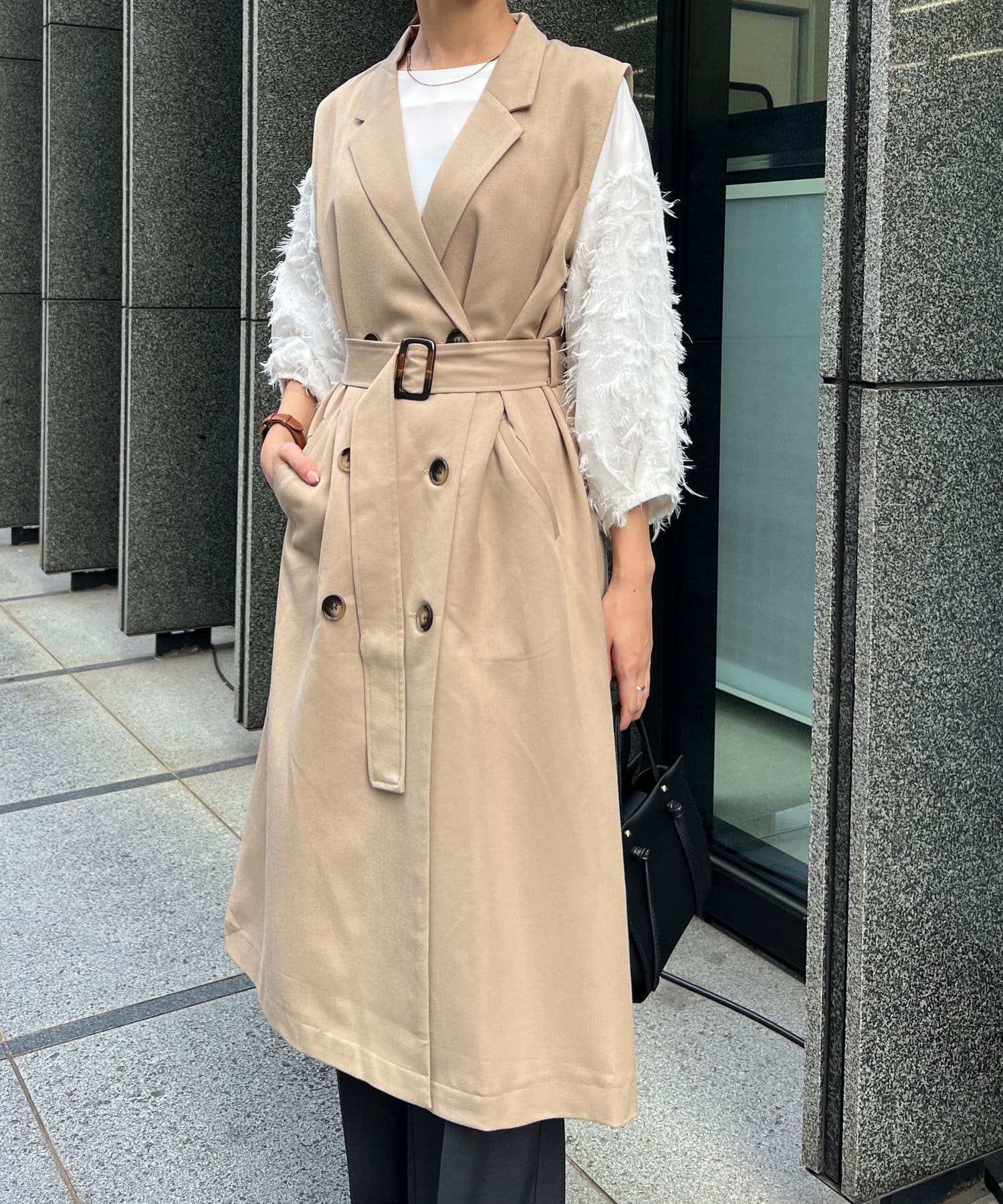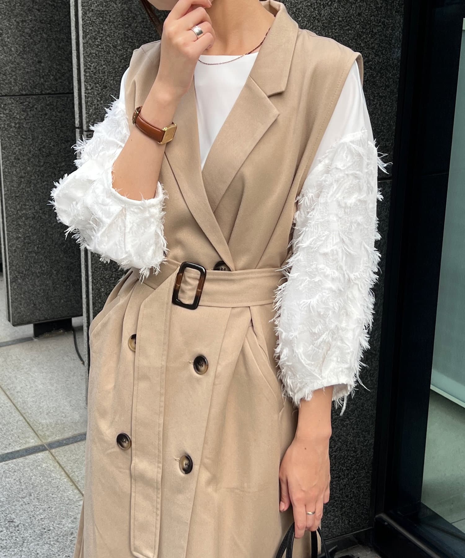 ・トレンチ見えするデザインは少しマニッシュな印象にも。