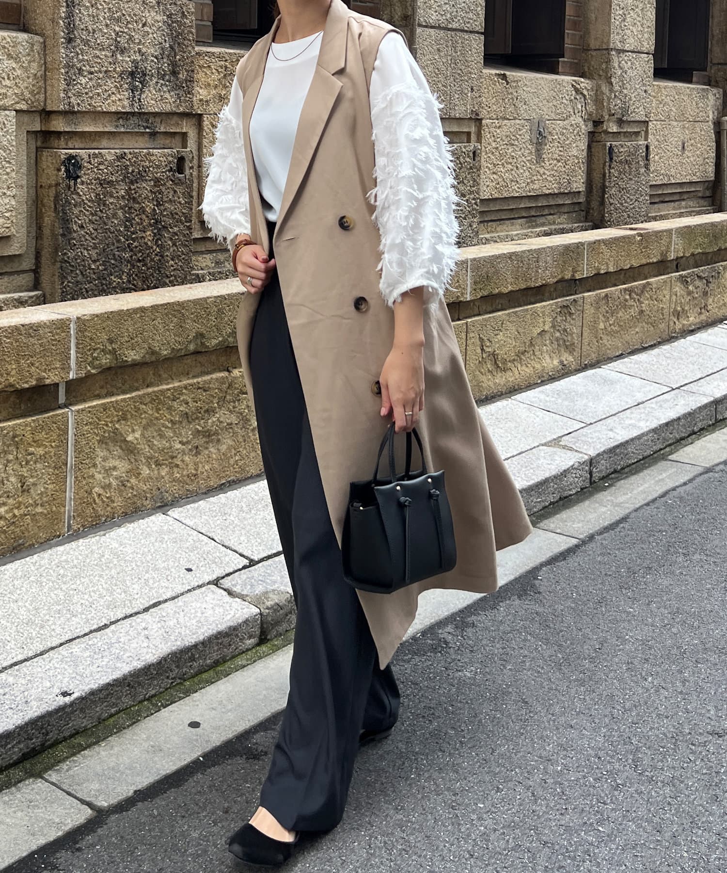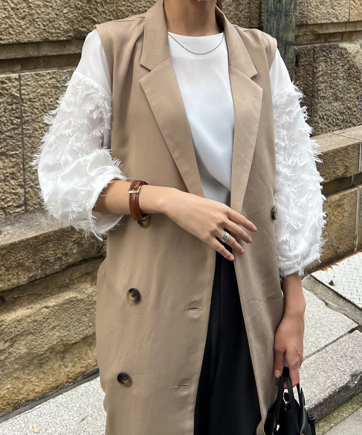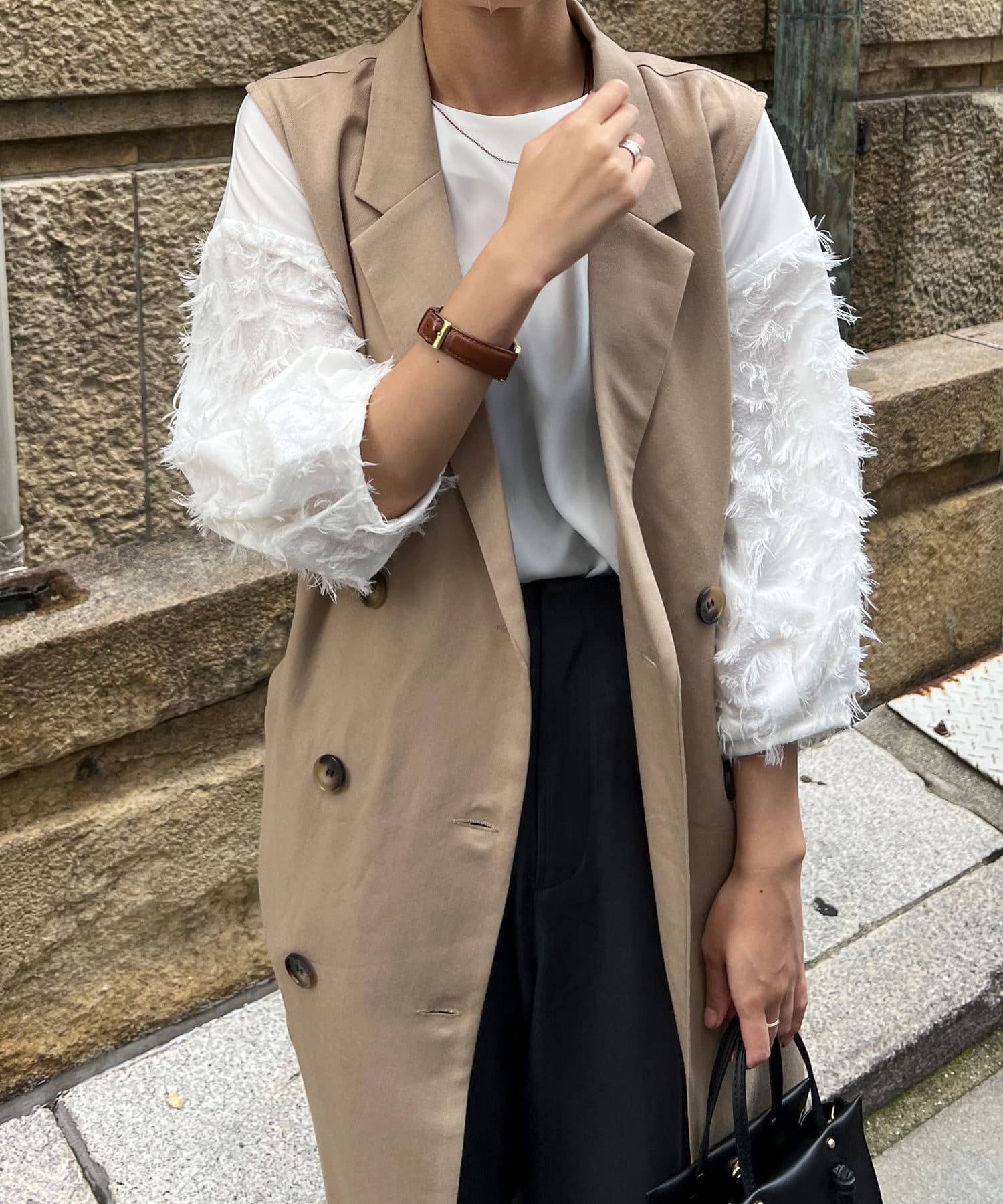 ・トレンチ見えするデザインは少しマニッシュな印象にも。