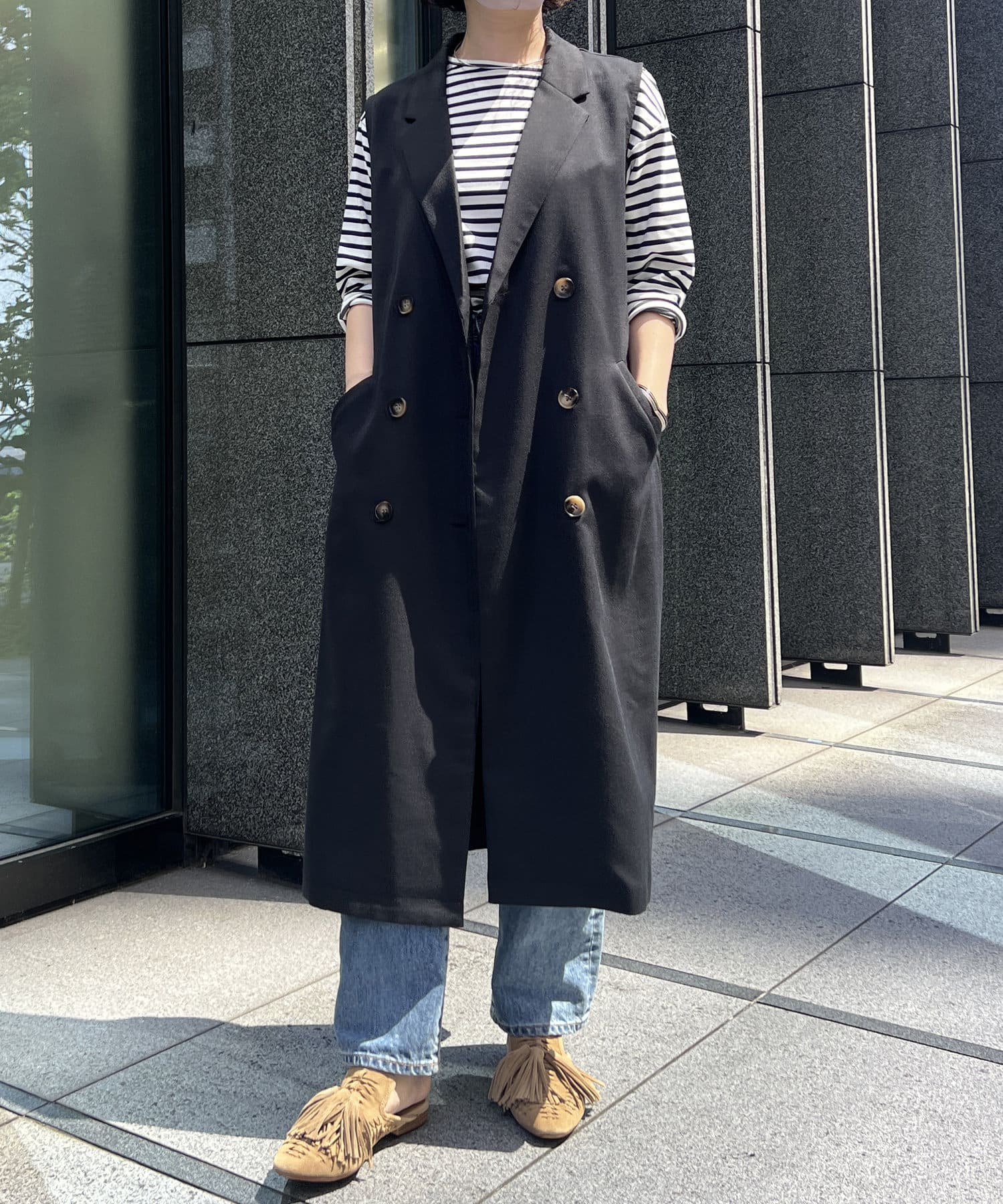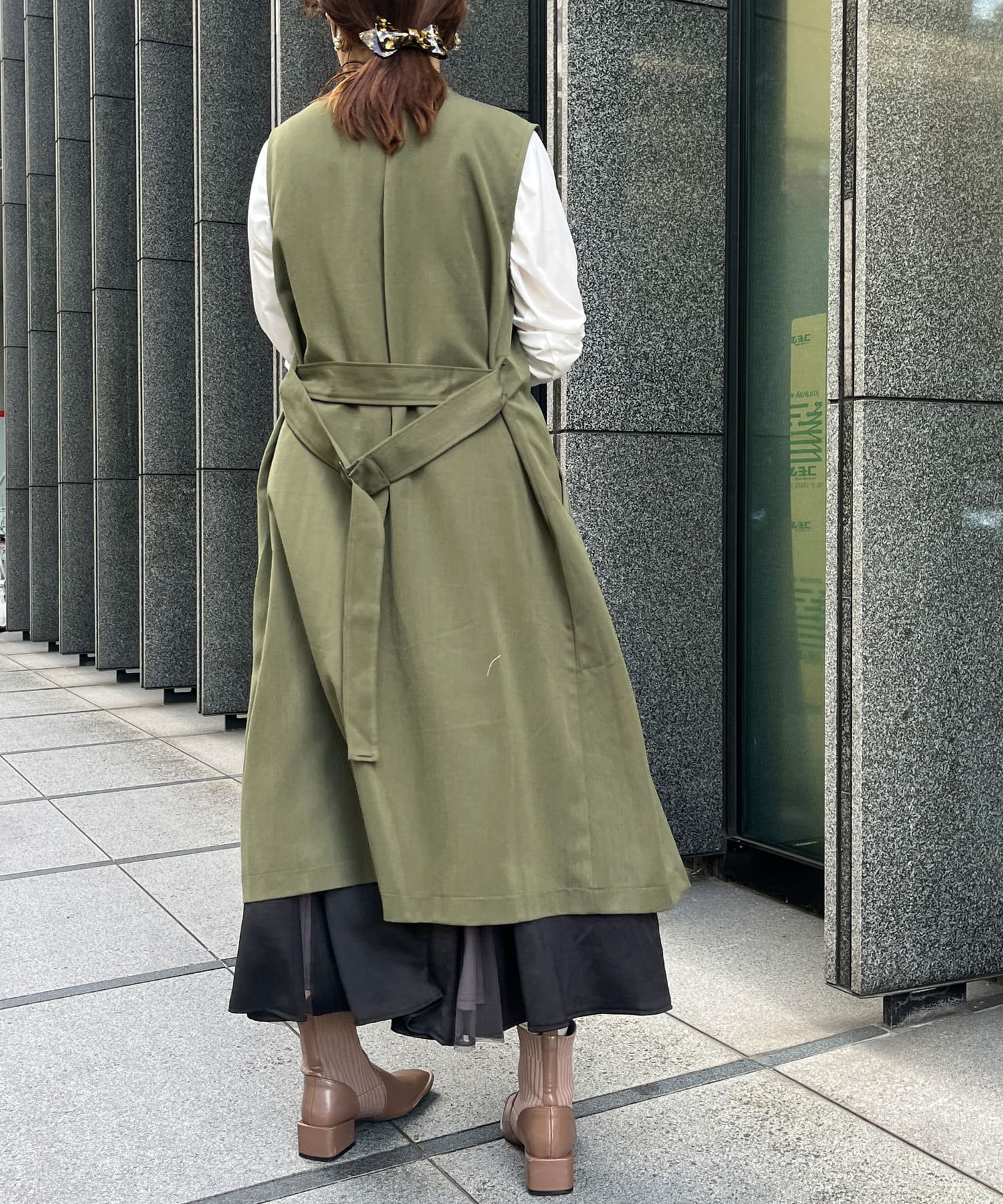 トレンチ風デザインのロングジレ