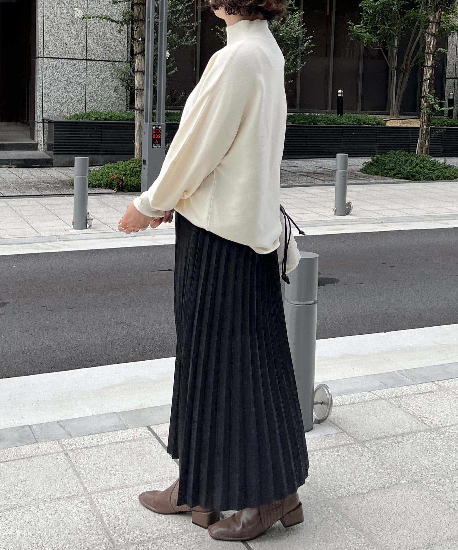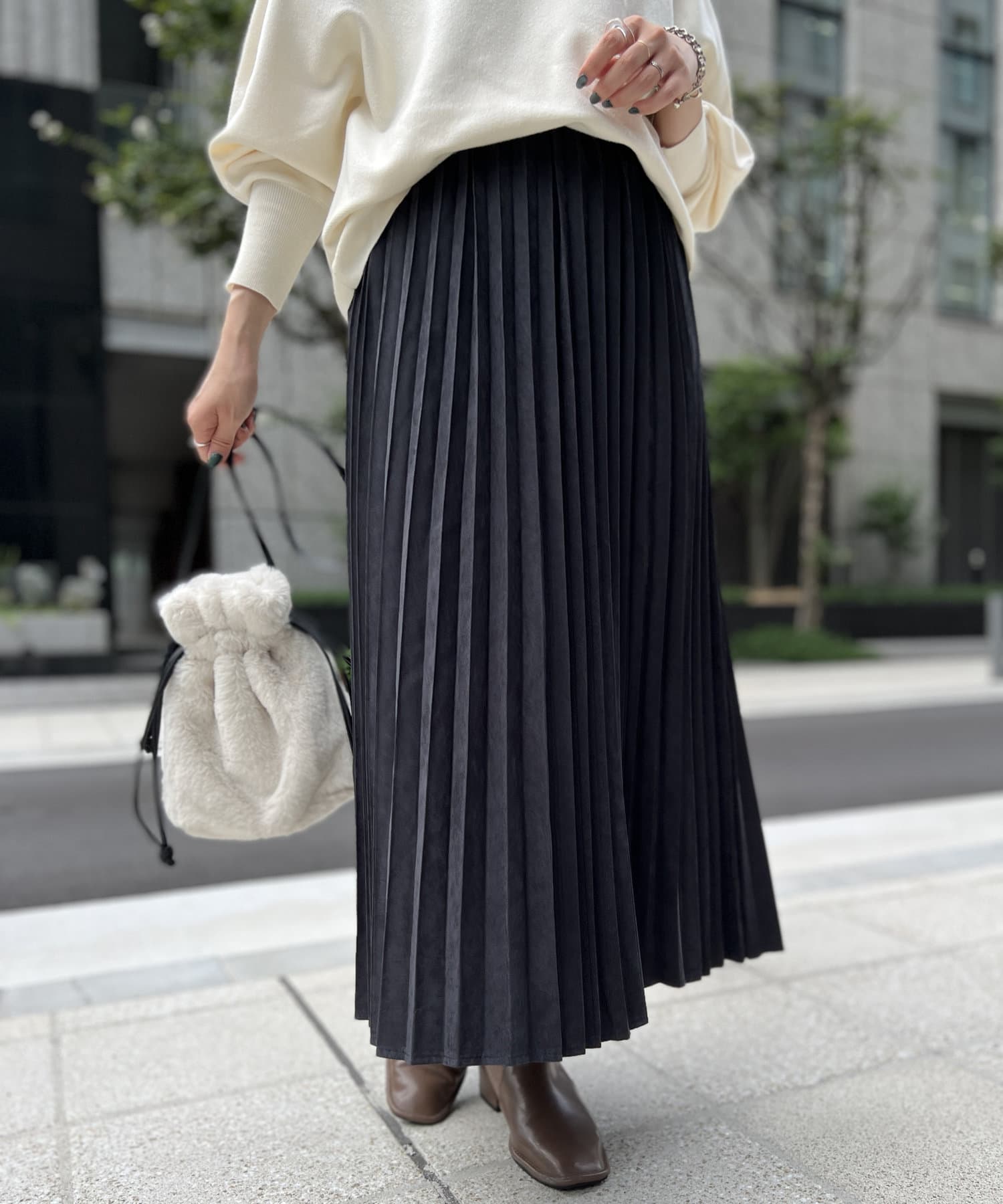 しっとりとしたピーチスキン素材が秋冬コーディネートのポイントに
