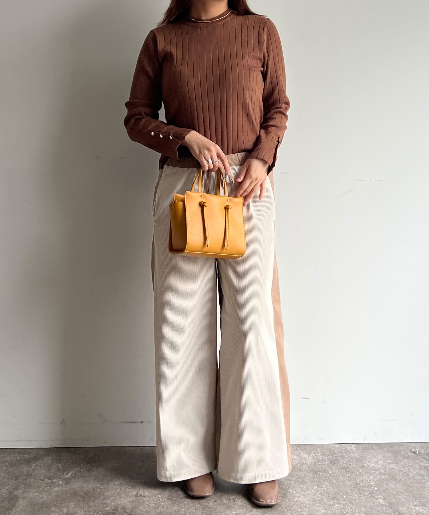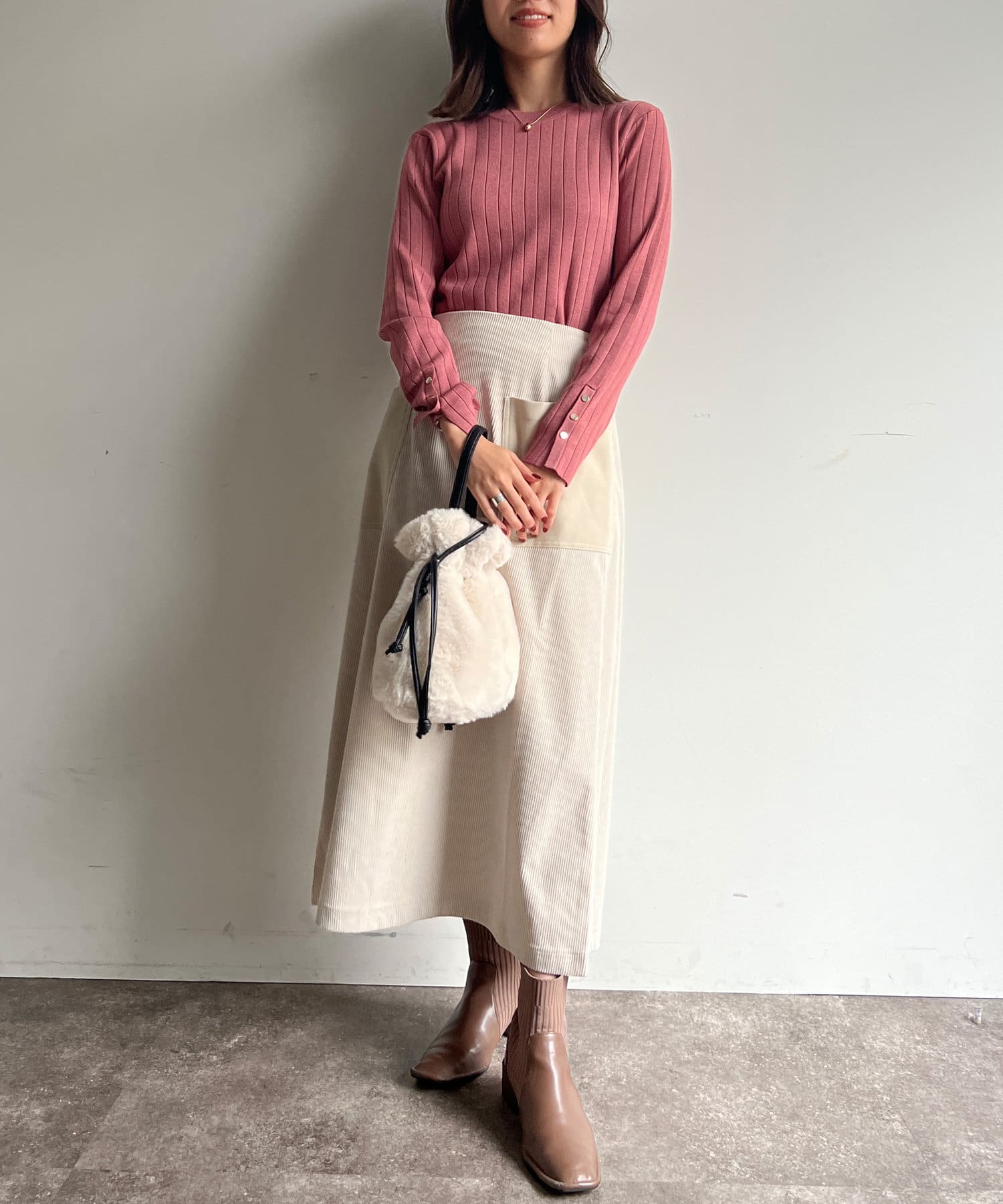 デニムやスカートとシンプルに合わせても様になるトップスです。