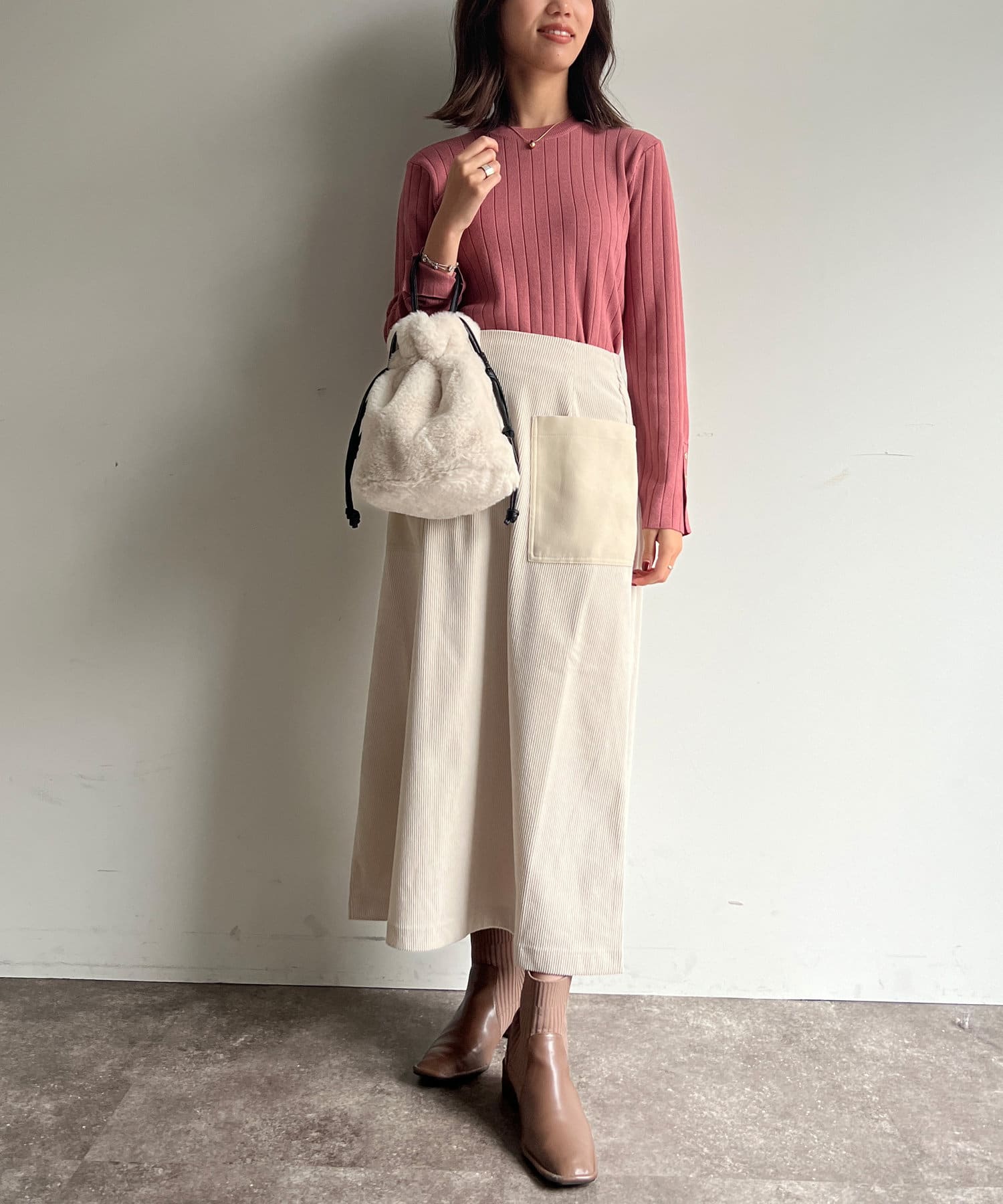 サロペットやキャミワンピースのインナーに使うのはもちろん、トレンドのファーベストやジレとも相性抜群!