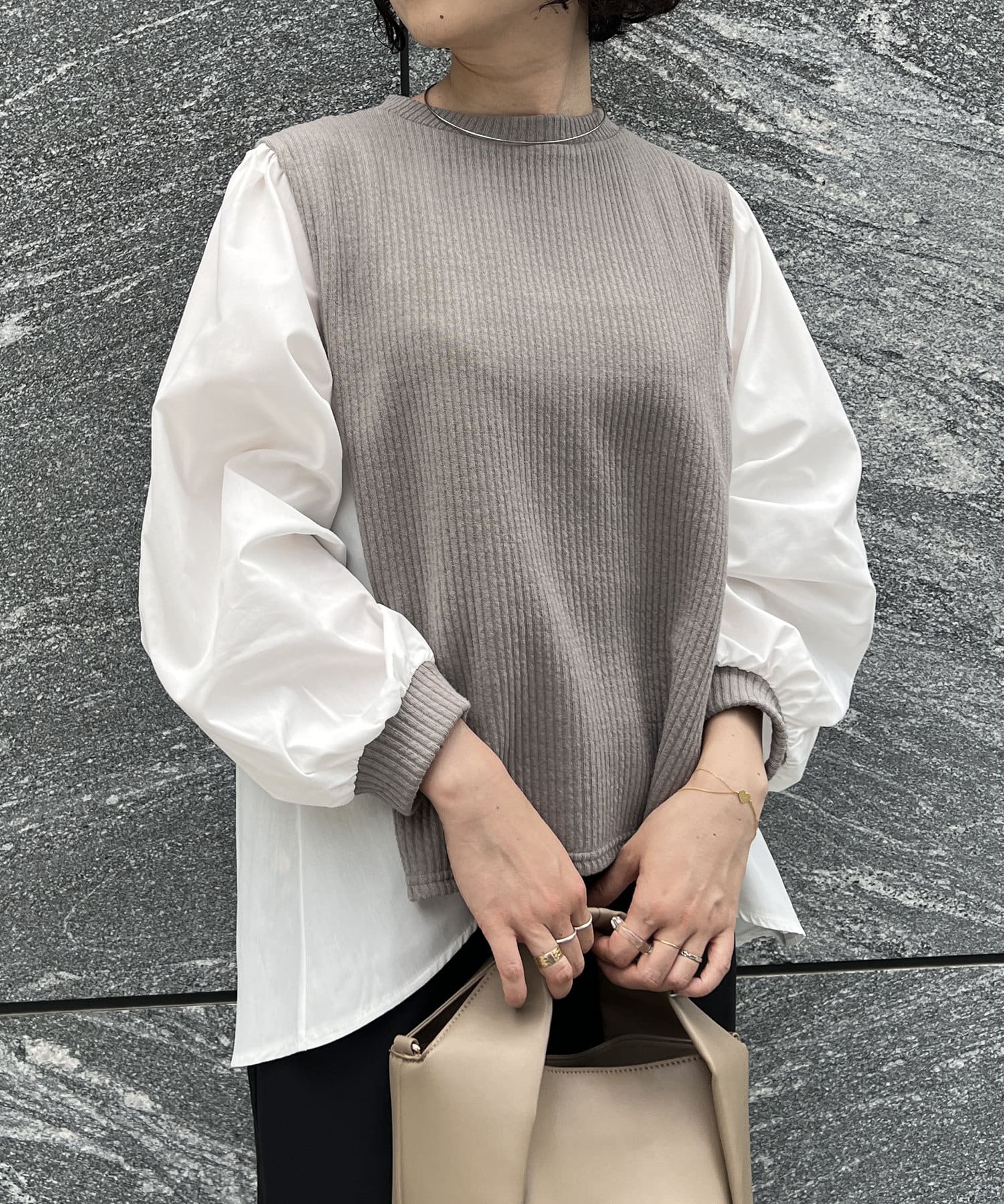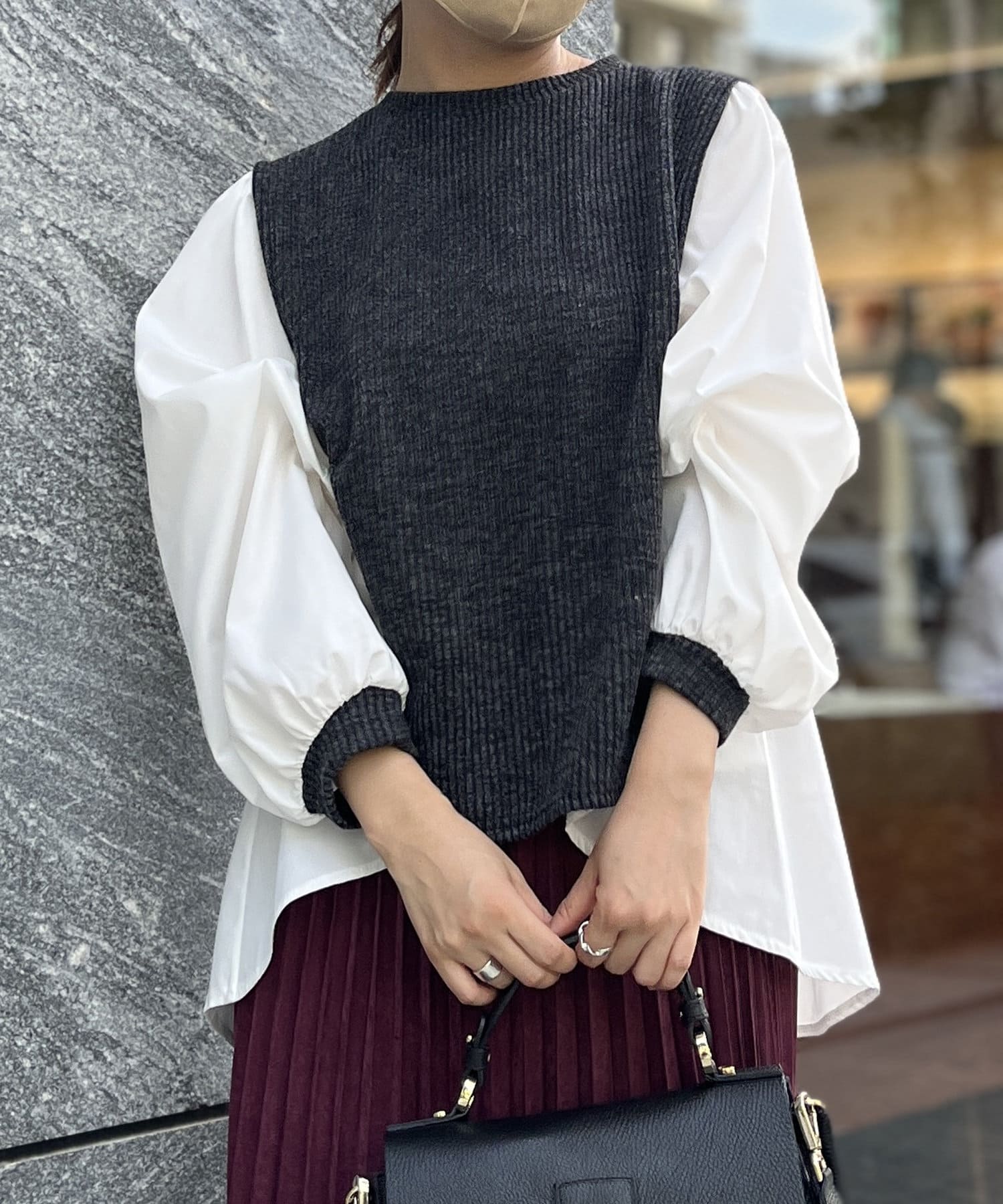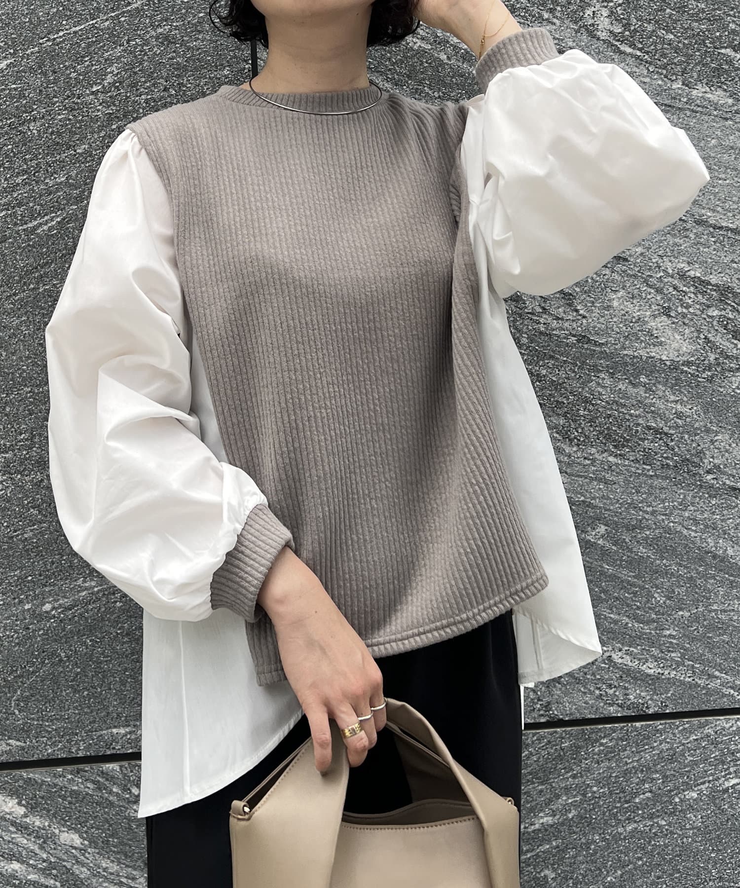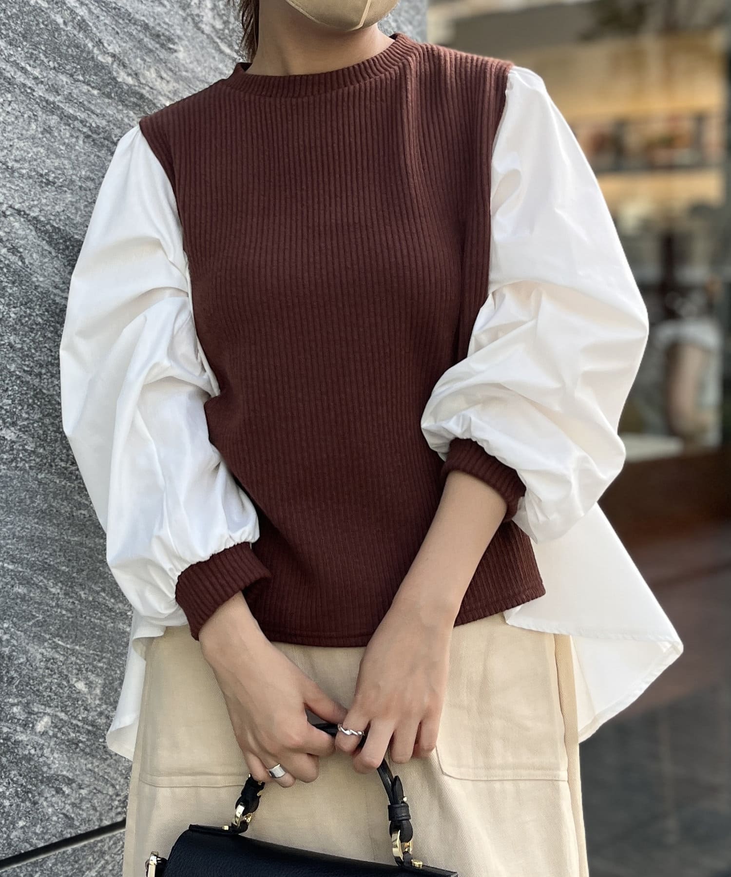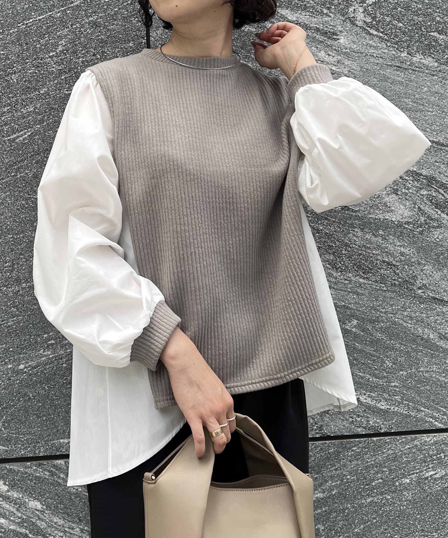 袖ボリュームとドッキングデザインが着るだけで様になるオトナトップス