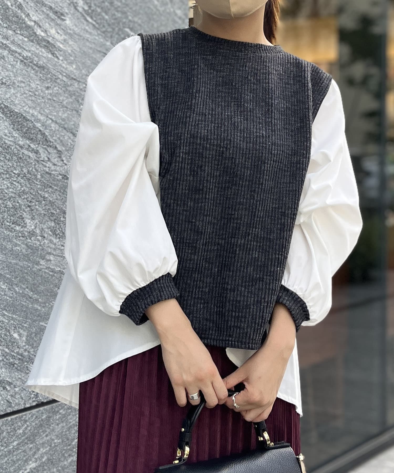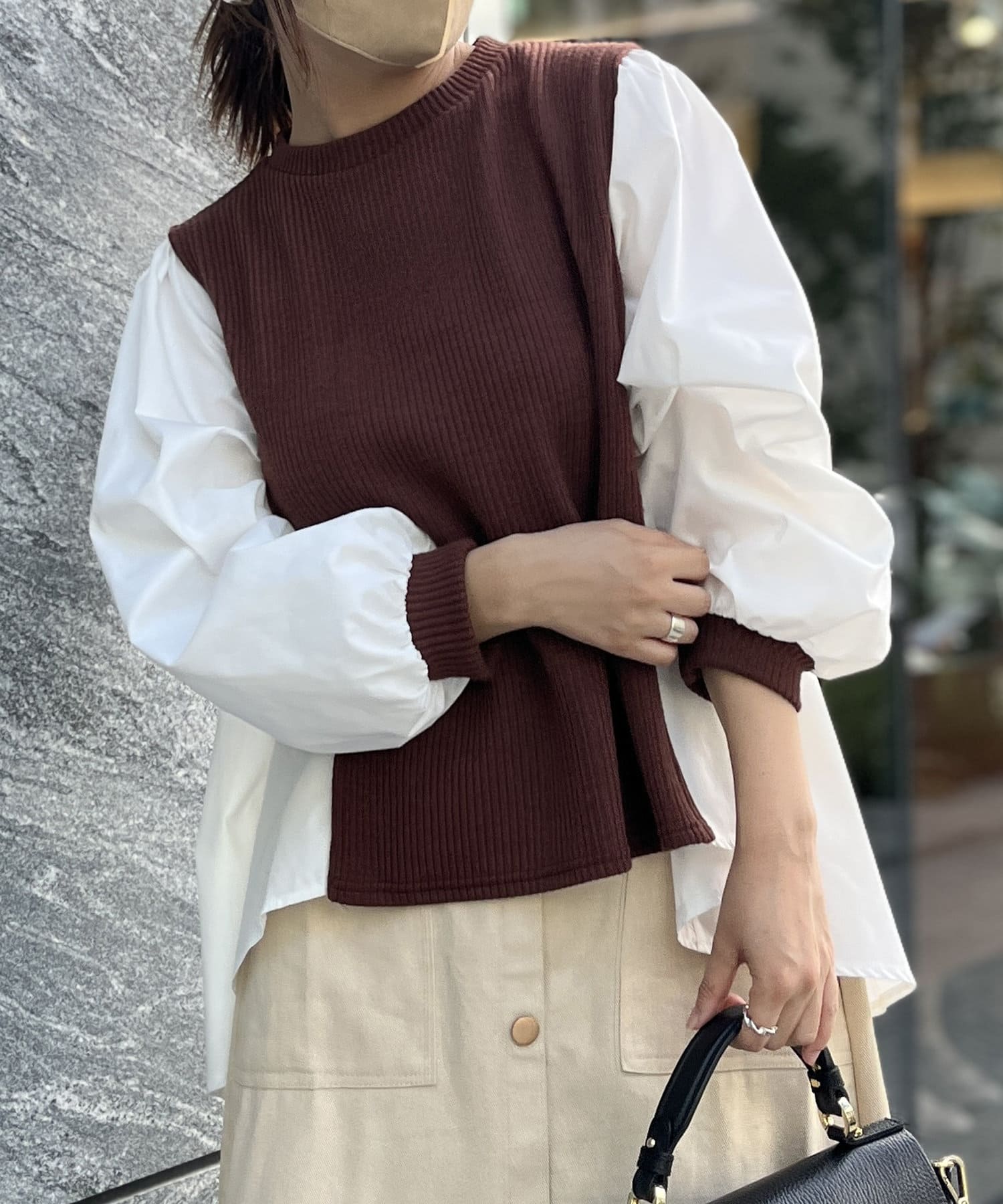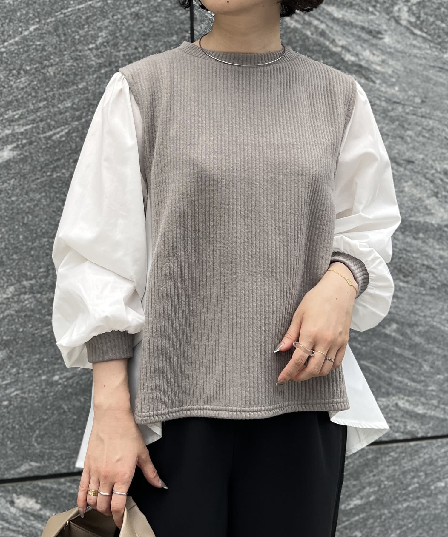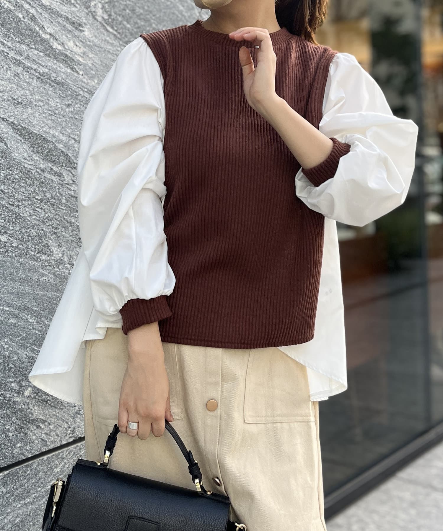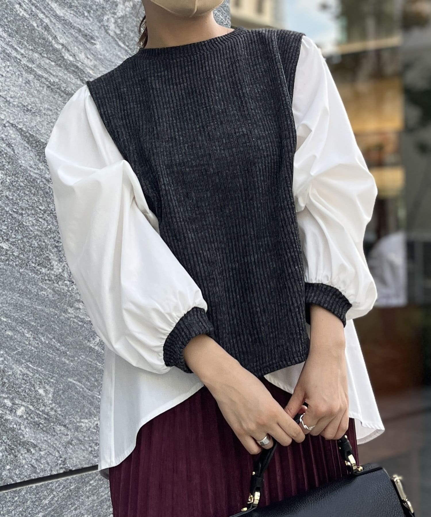 袖ボリュームとドッキングデザインが着るだけで様になるオトナトップス