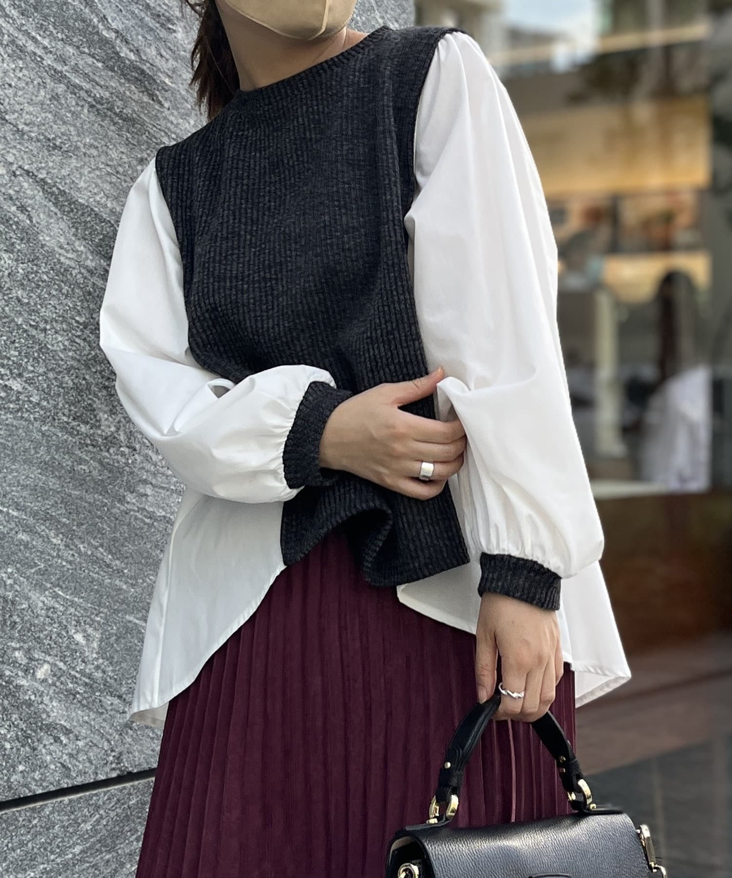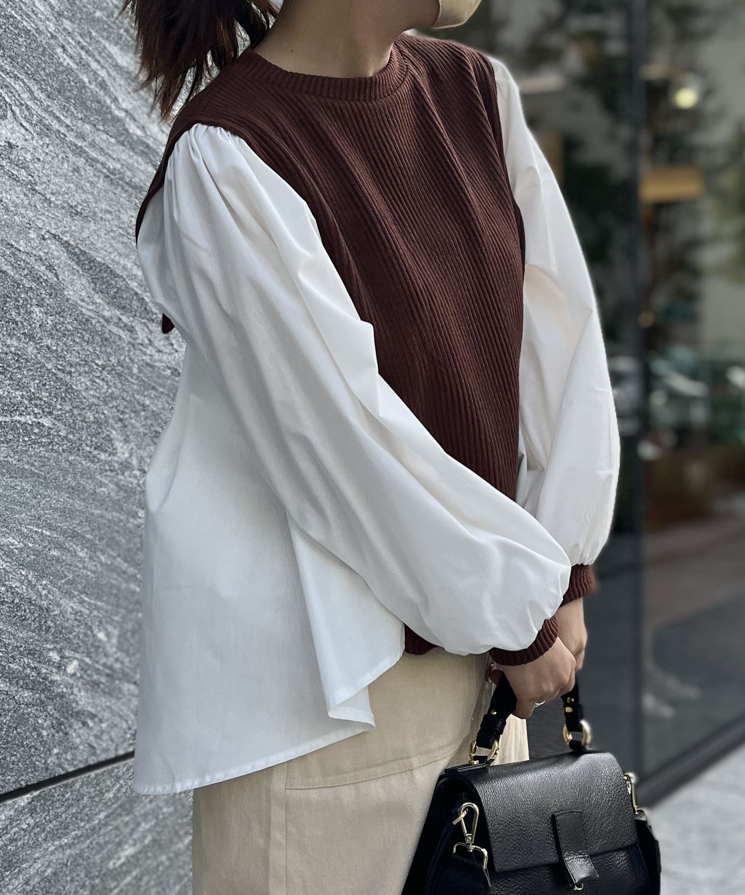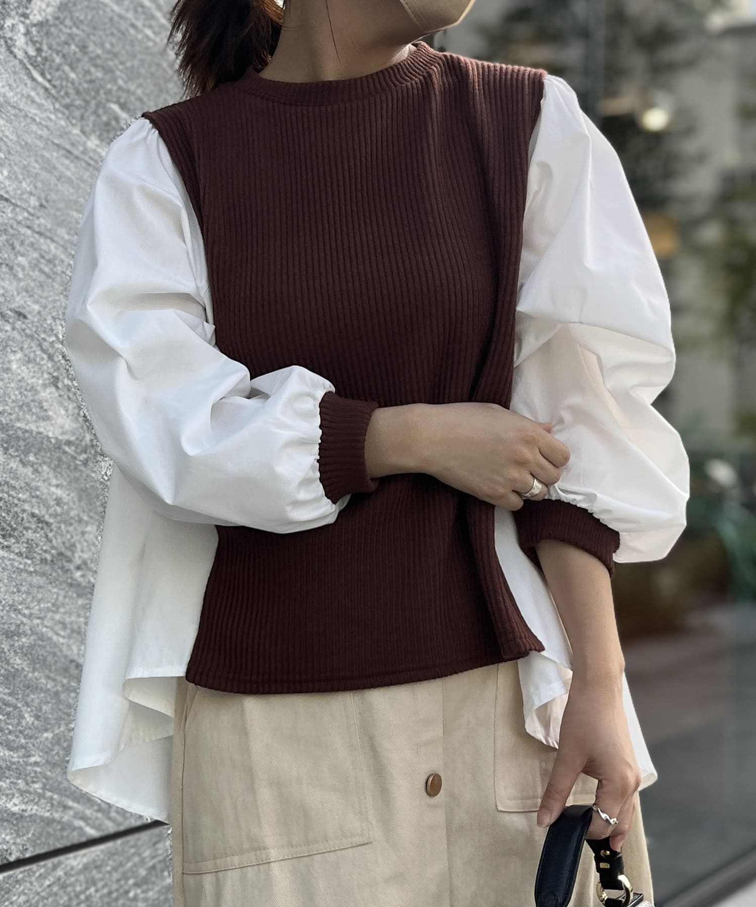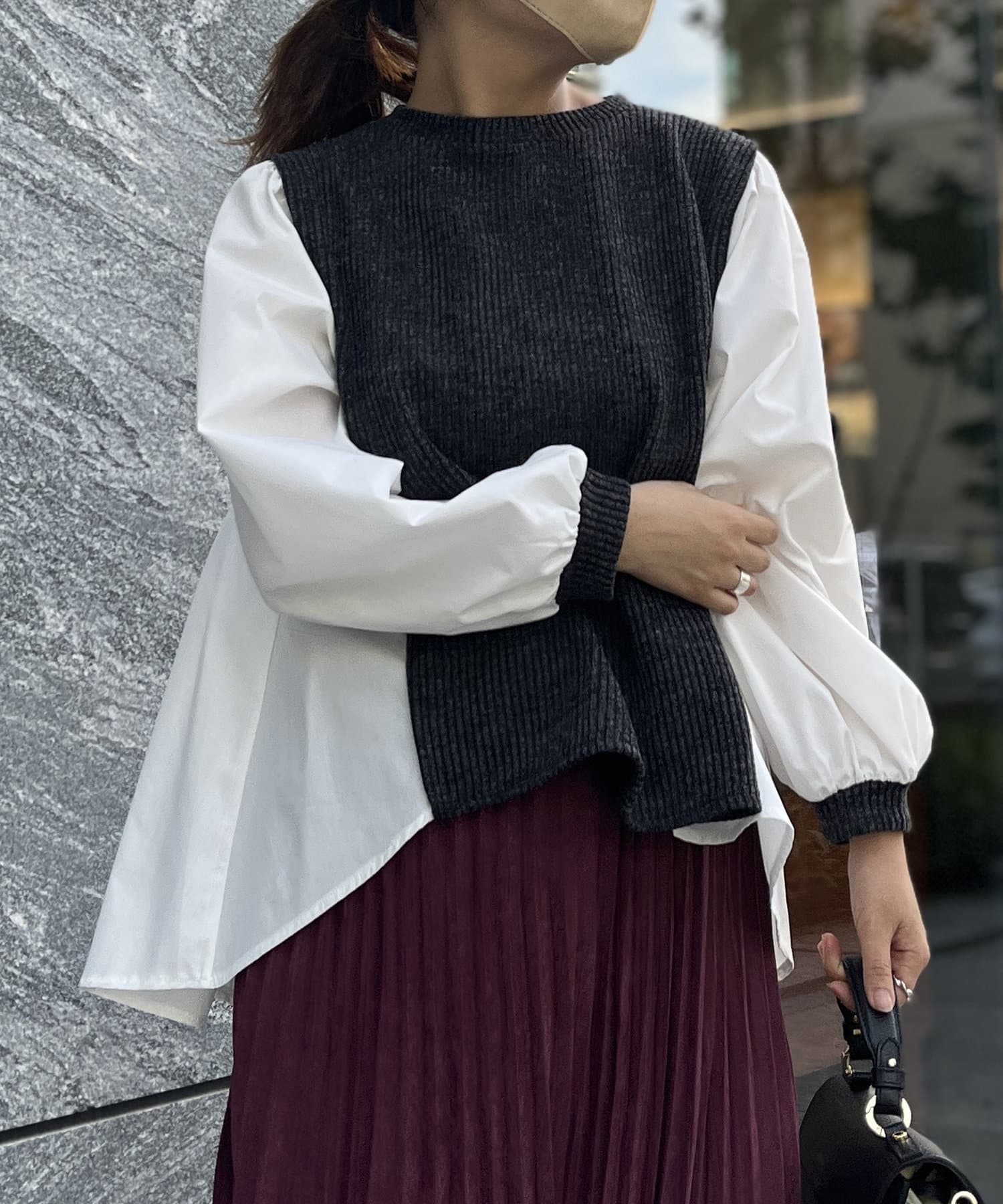 袖ボリュームとドッキングデザインが着るだけで様になるオトナトップス