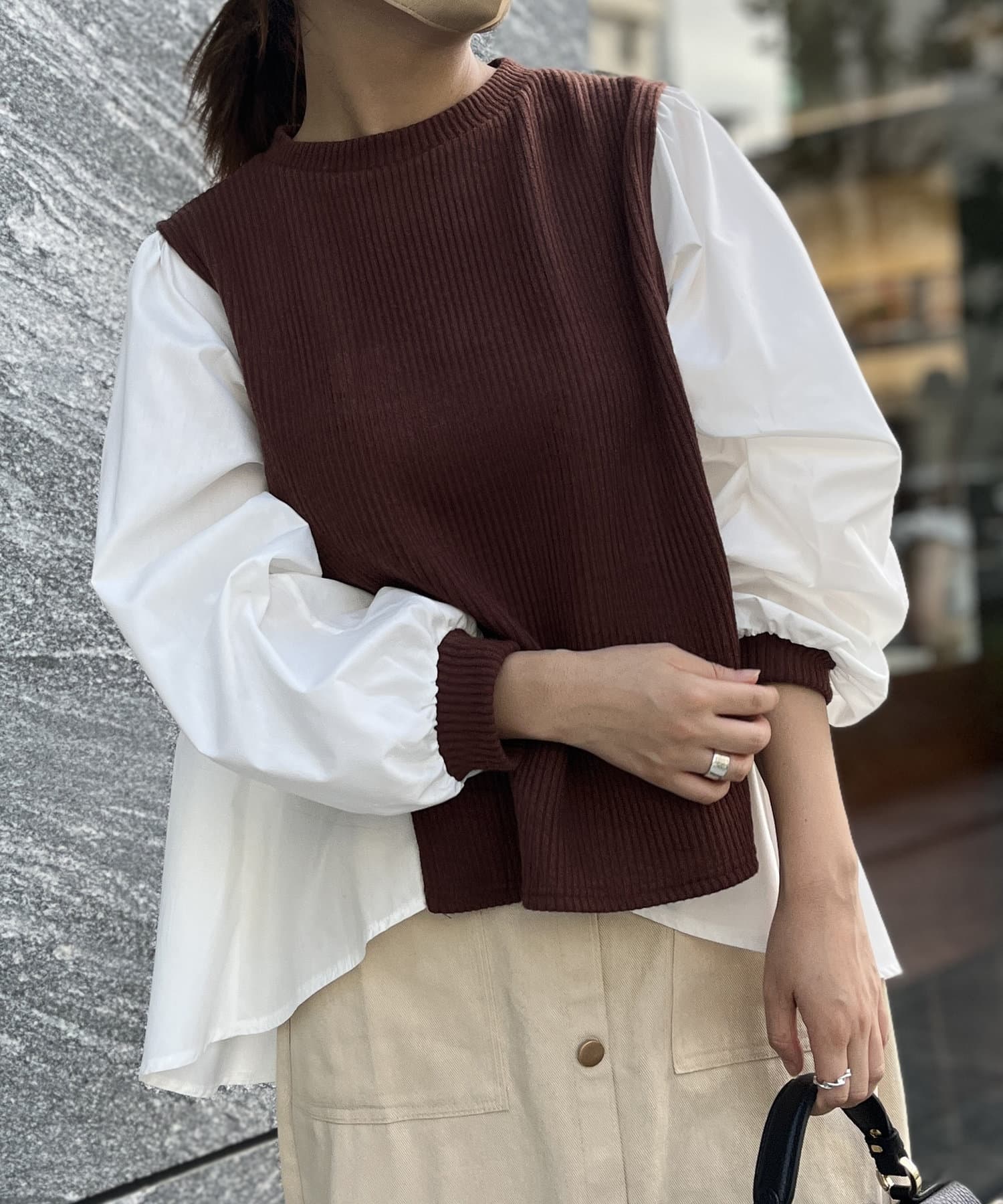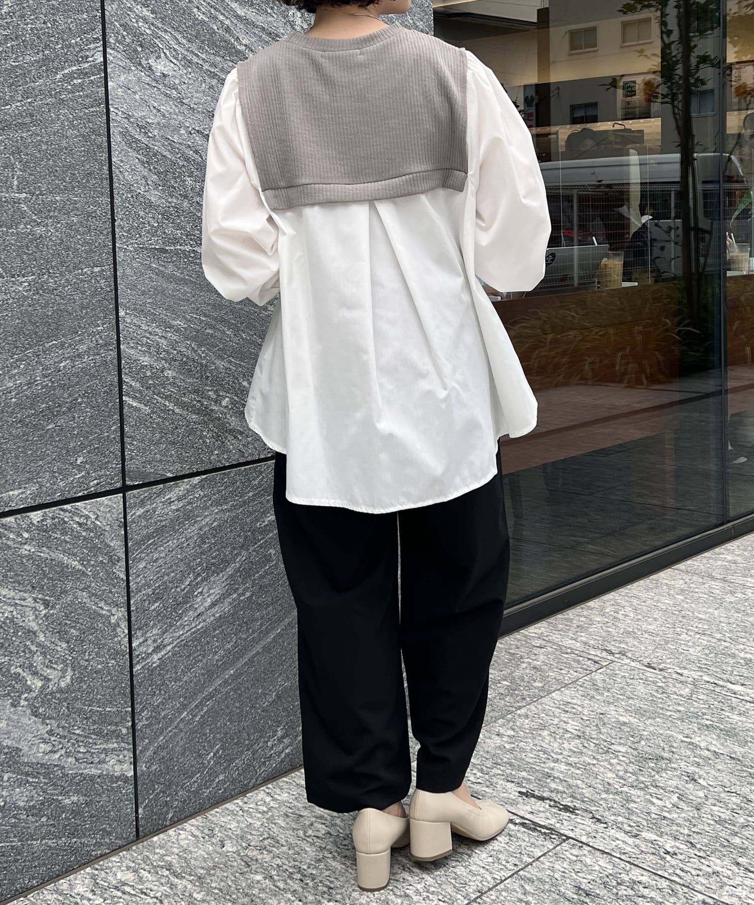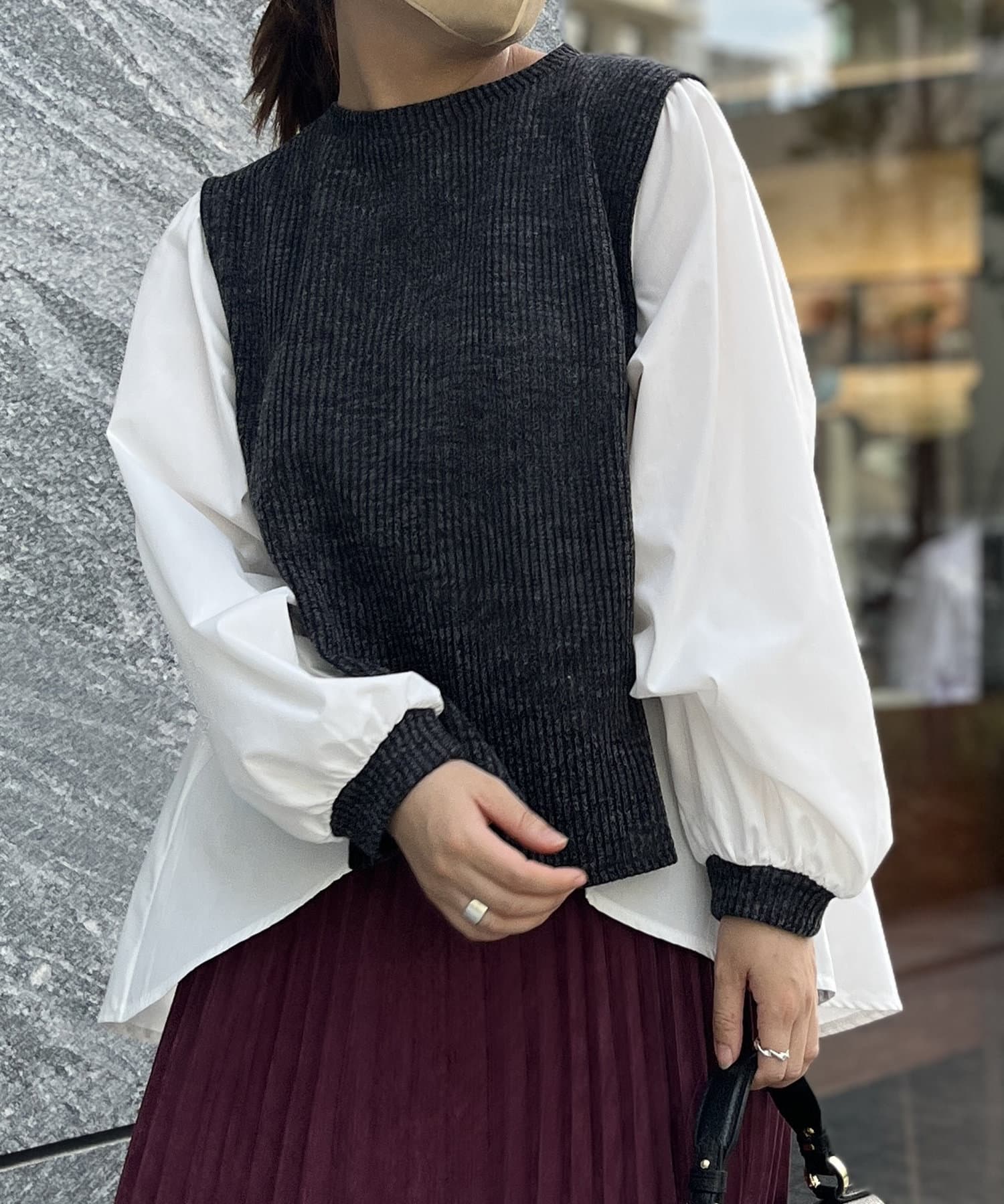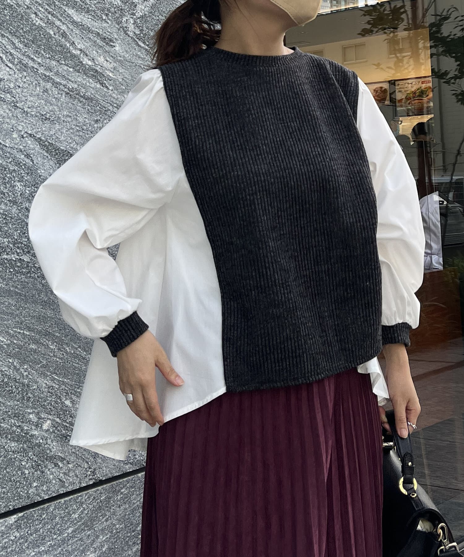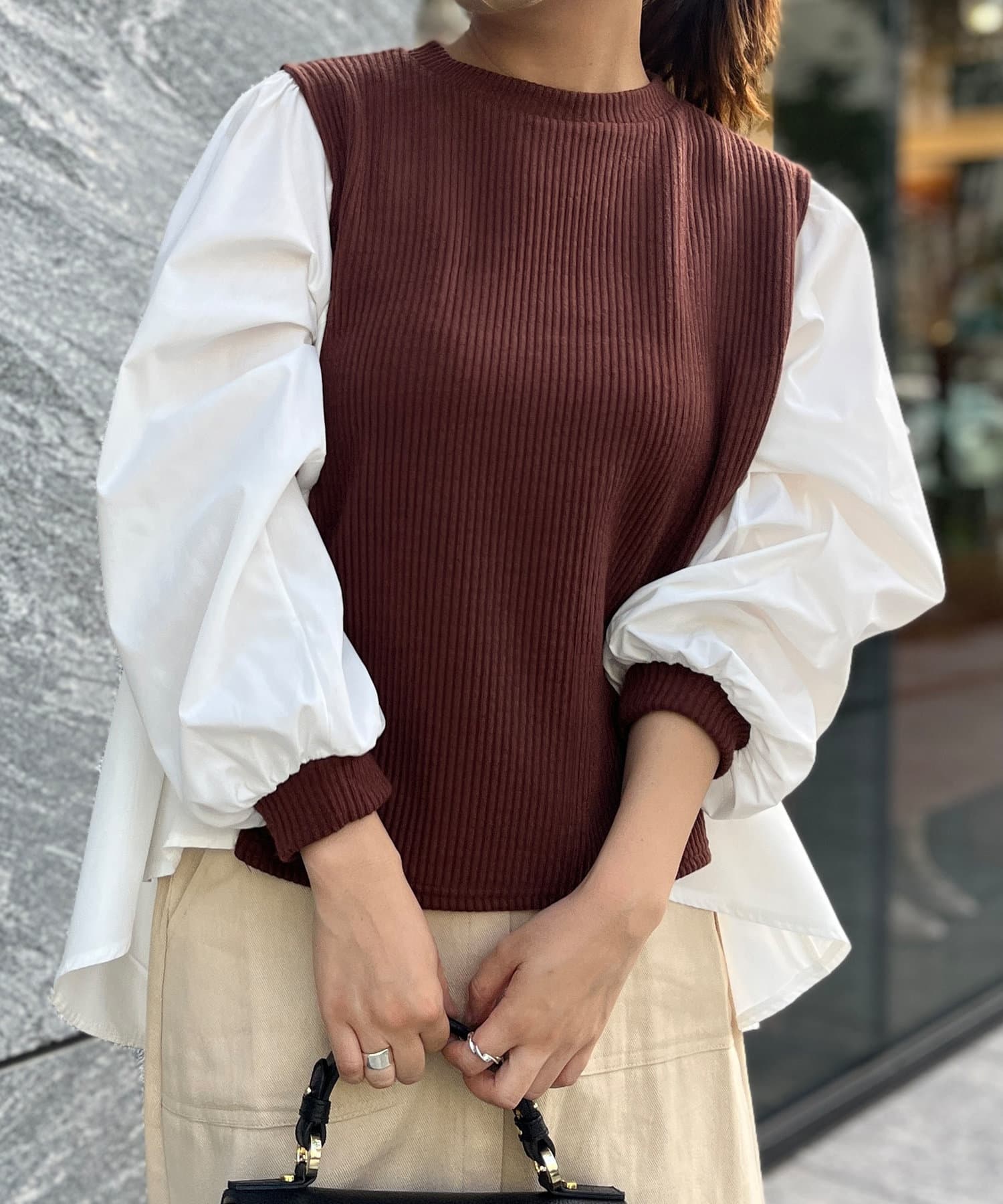 袖ボリュームとドッキングデザインが着るだけで様になるオトナトップス