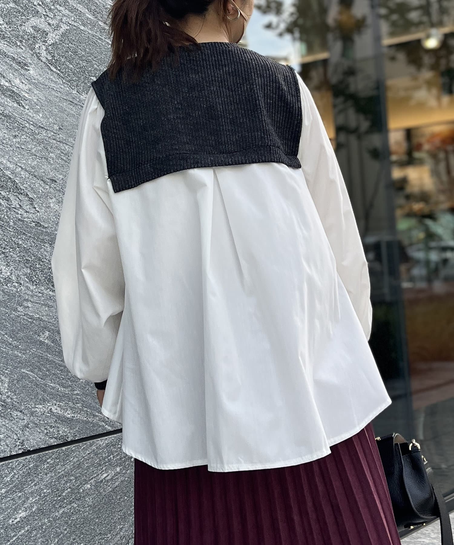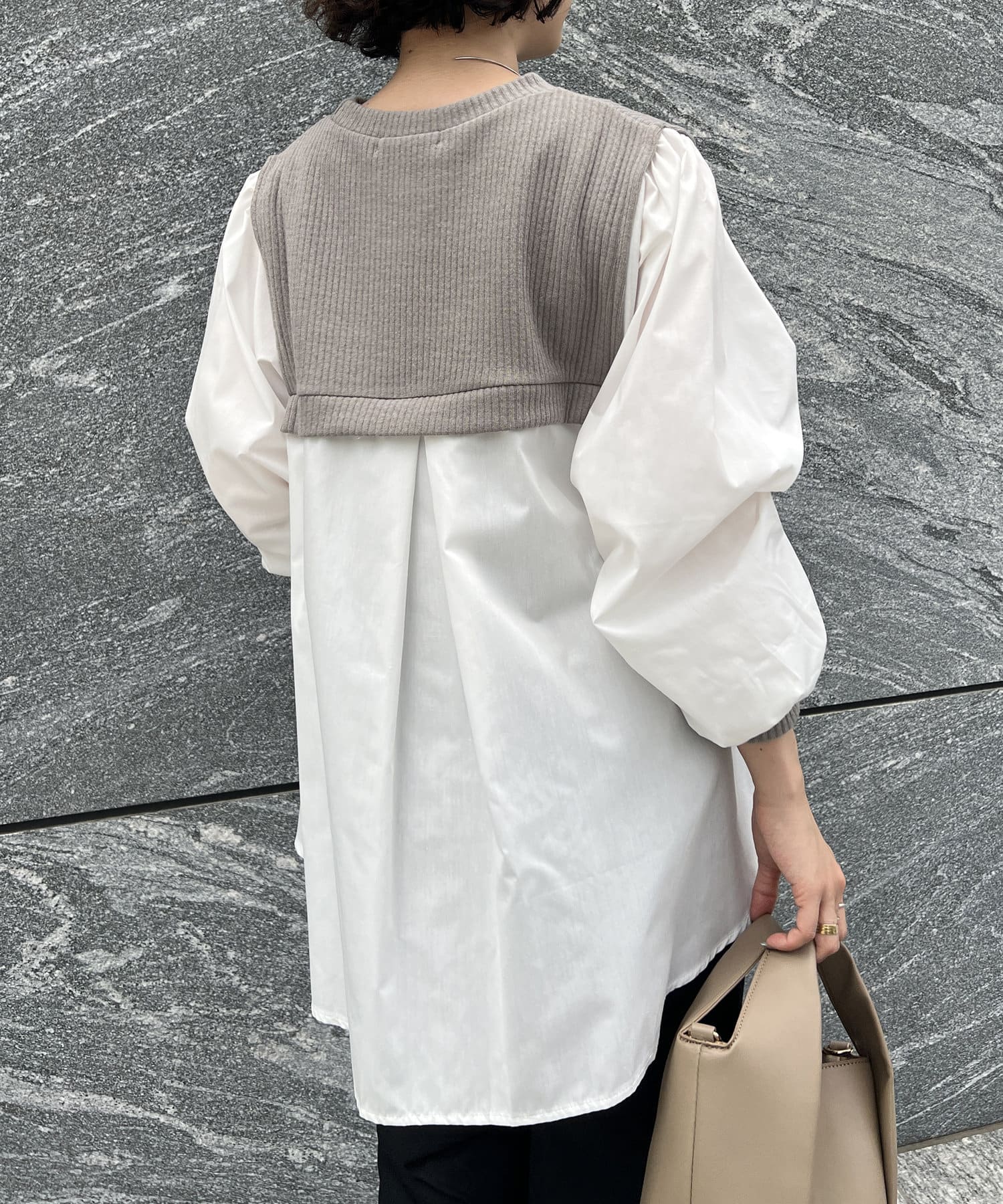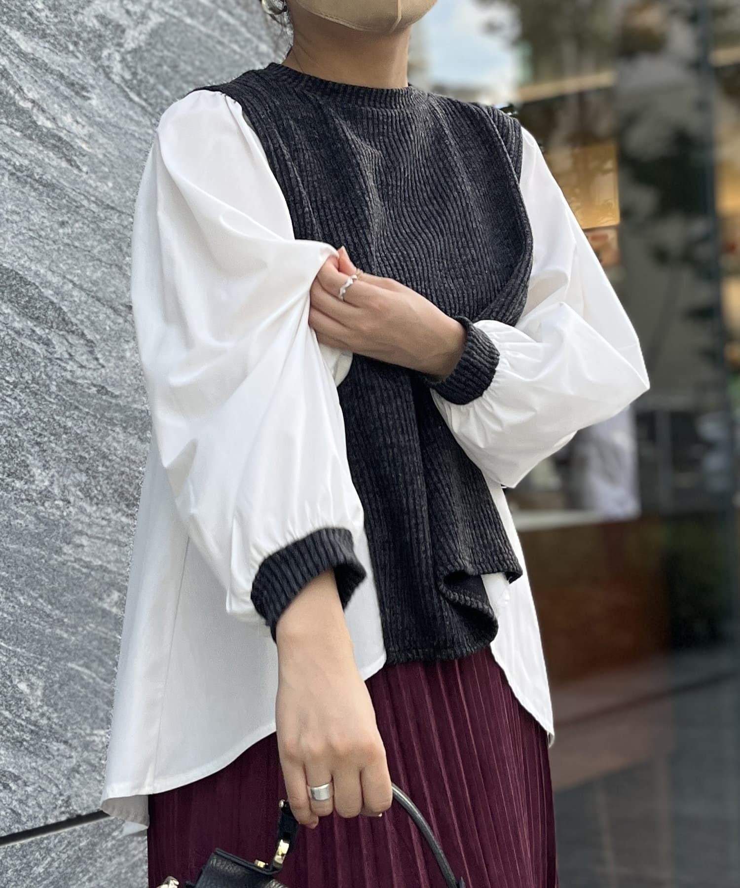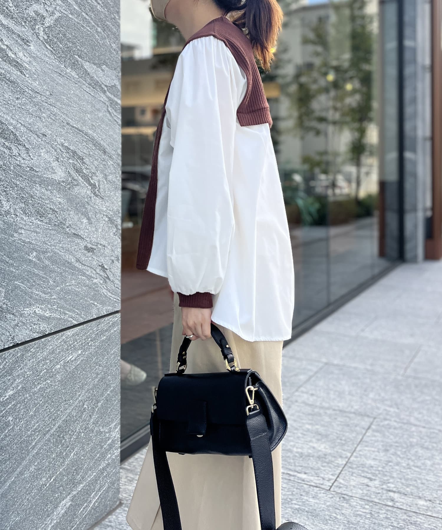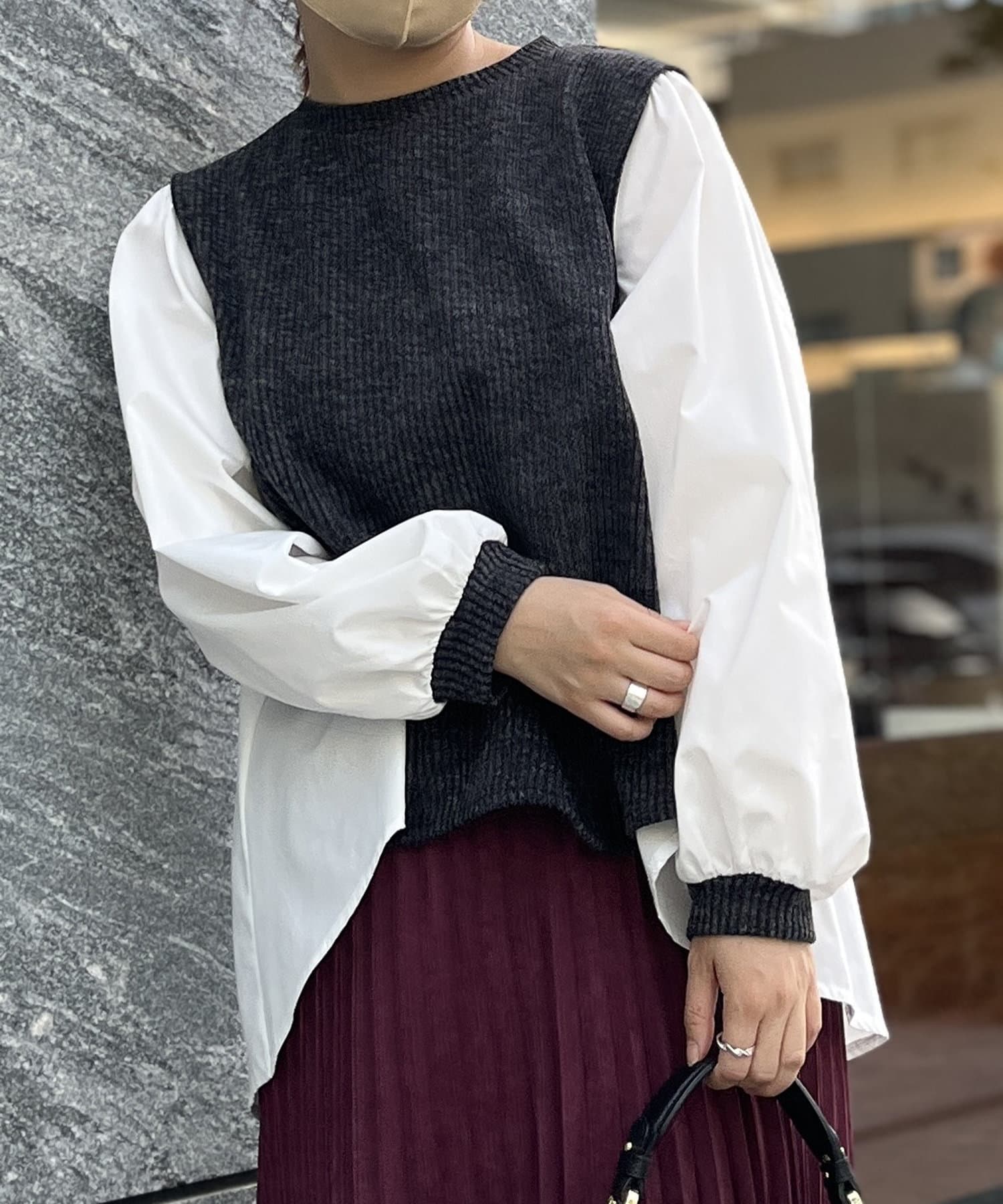 袖ボリュームとドッキングデザインが着るだけで様になるオトナトップス