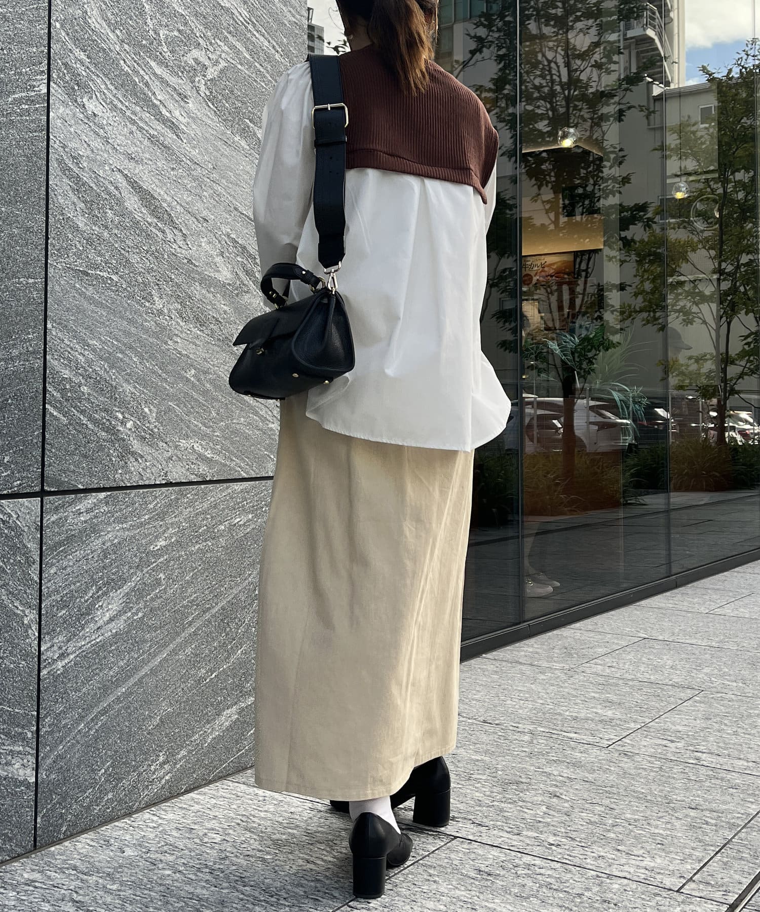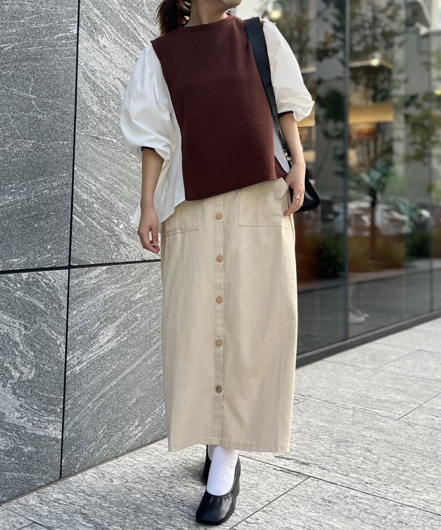 カジュアルなデニムやワイドパンツなど幅広く合わせて着用頂けます。