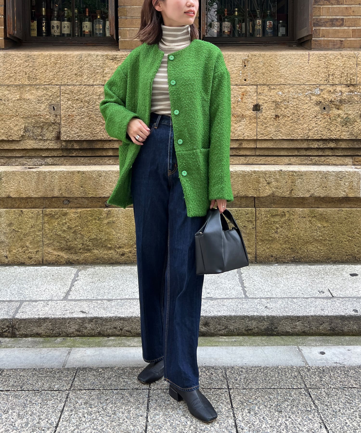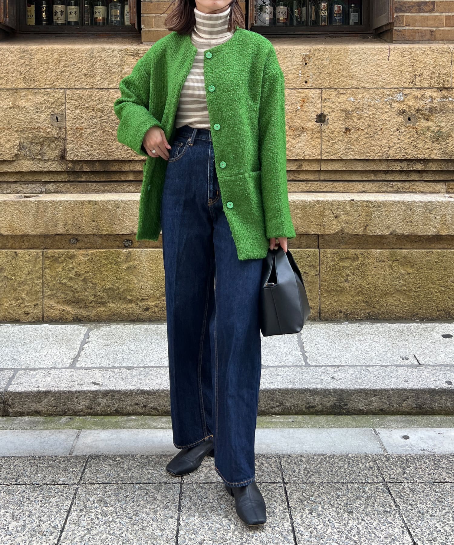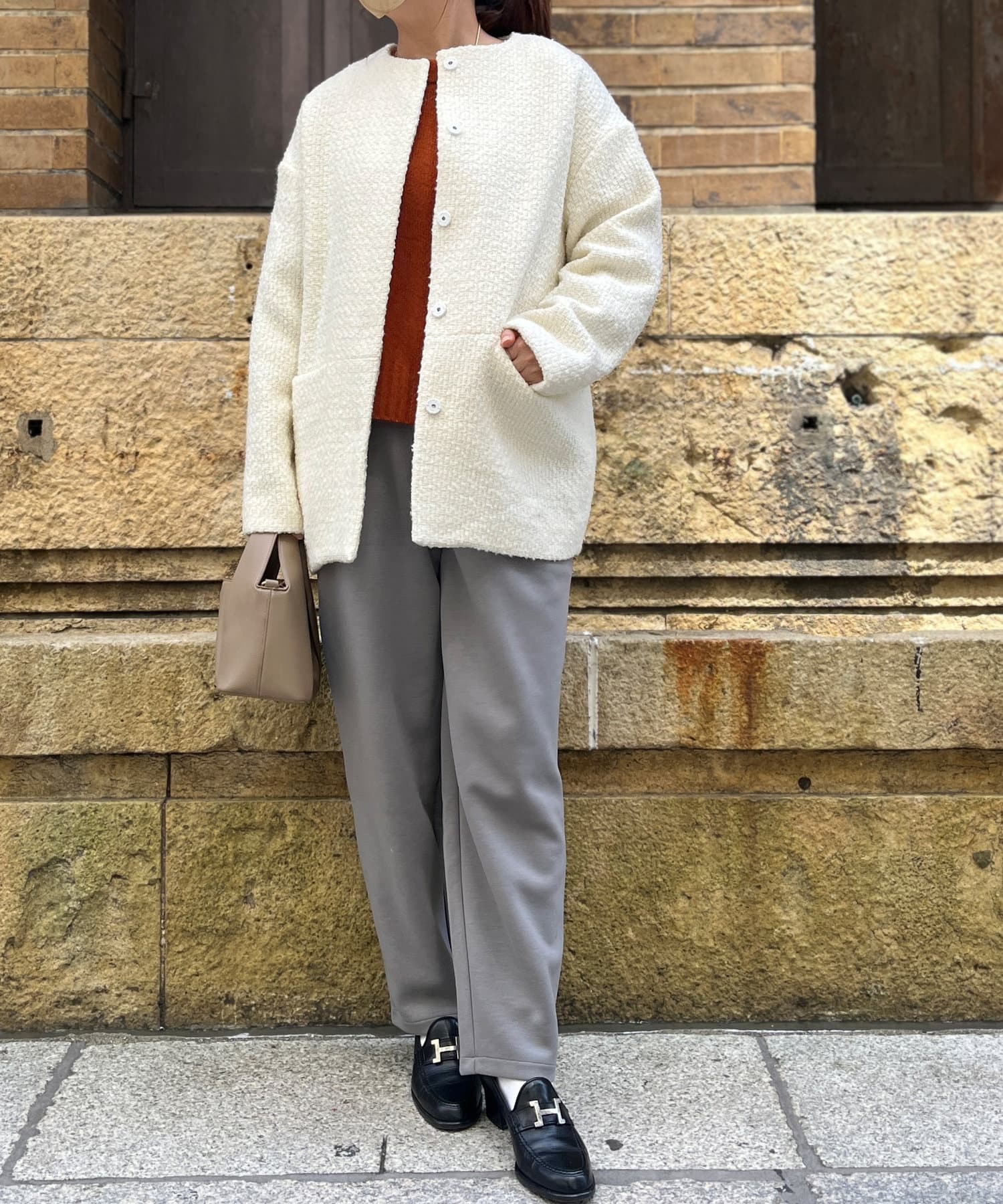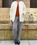 ・身幅はゆったりとしているので、ボリュームのあるニットを合わせてもバッチリ!