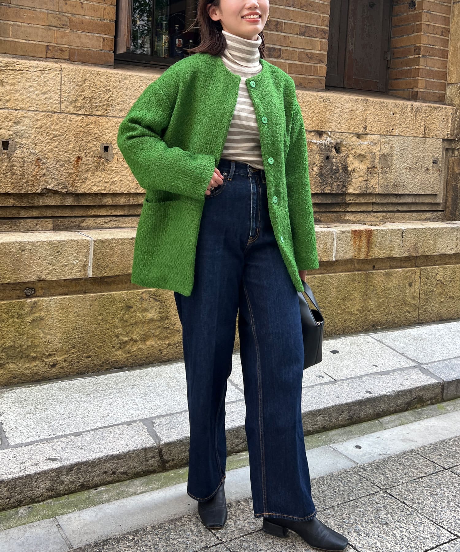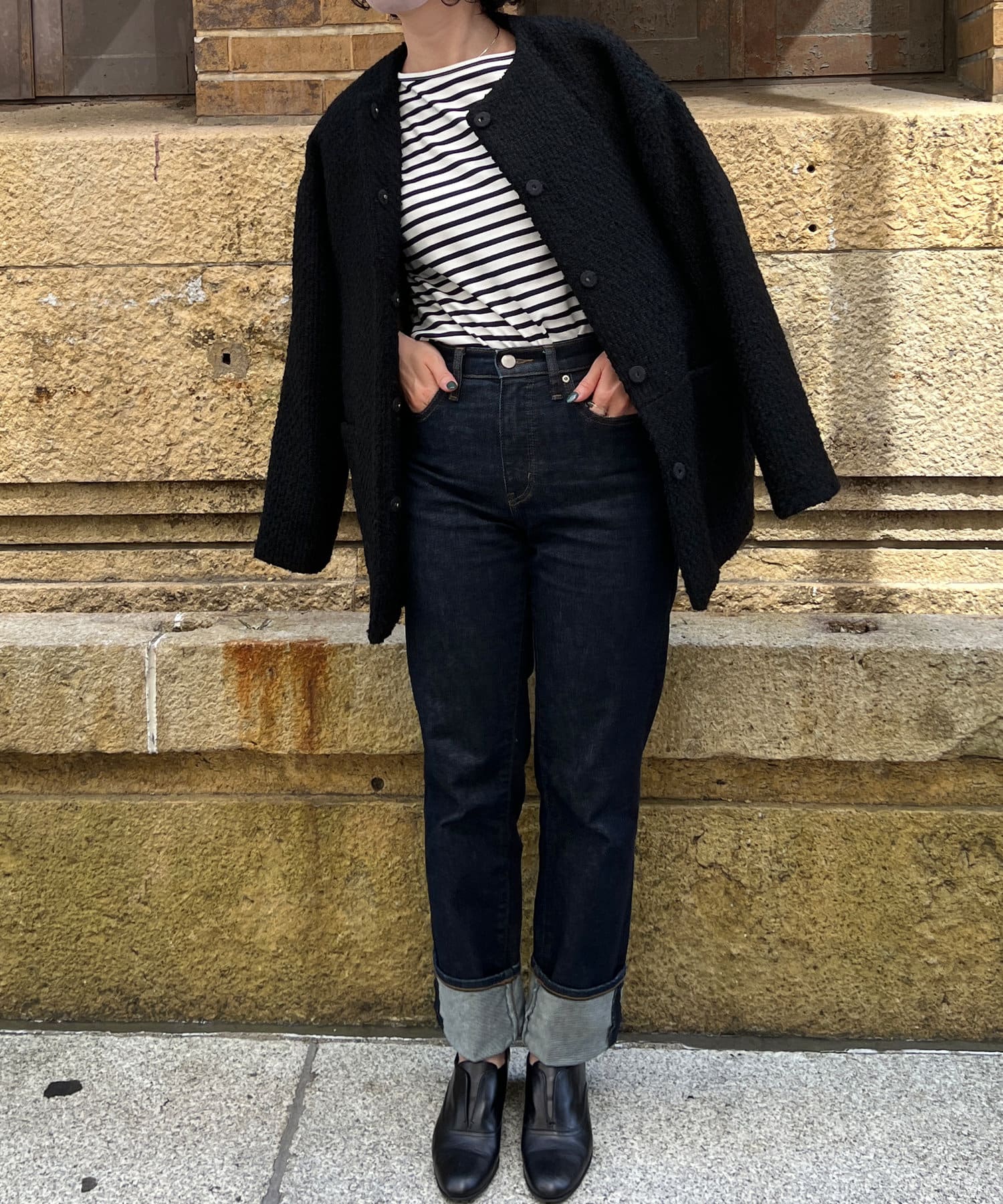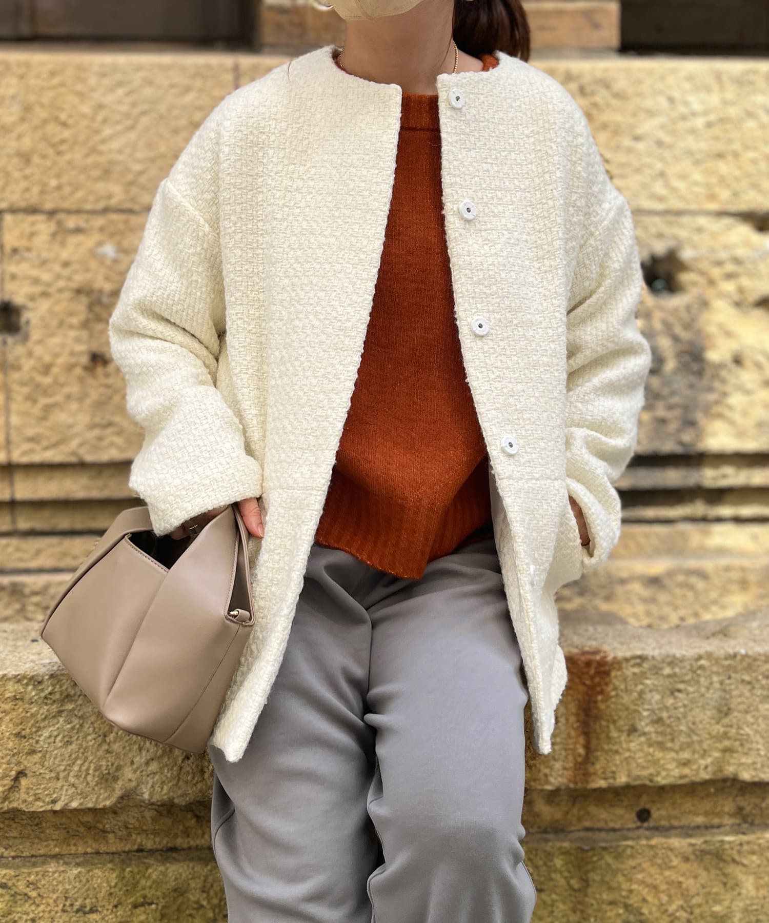 ・身幅はゆったりとしているので、ボリュームのあるニットを合わせてもバッチリ!