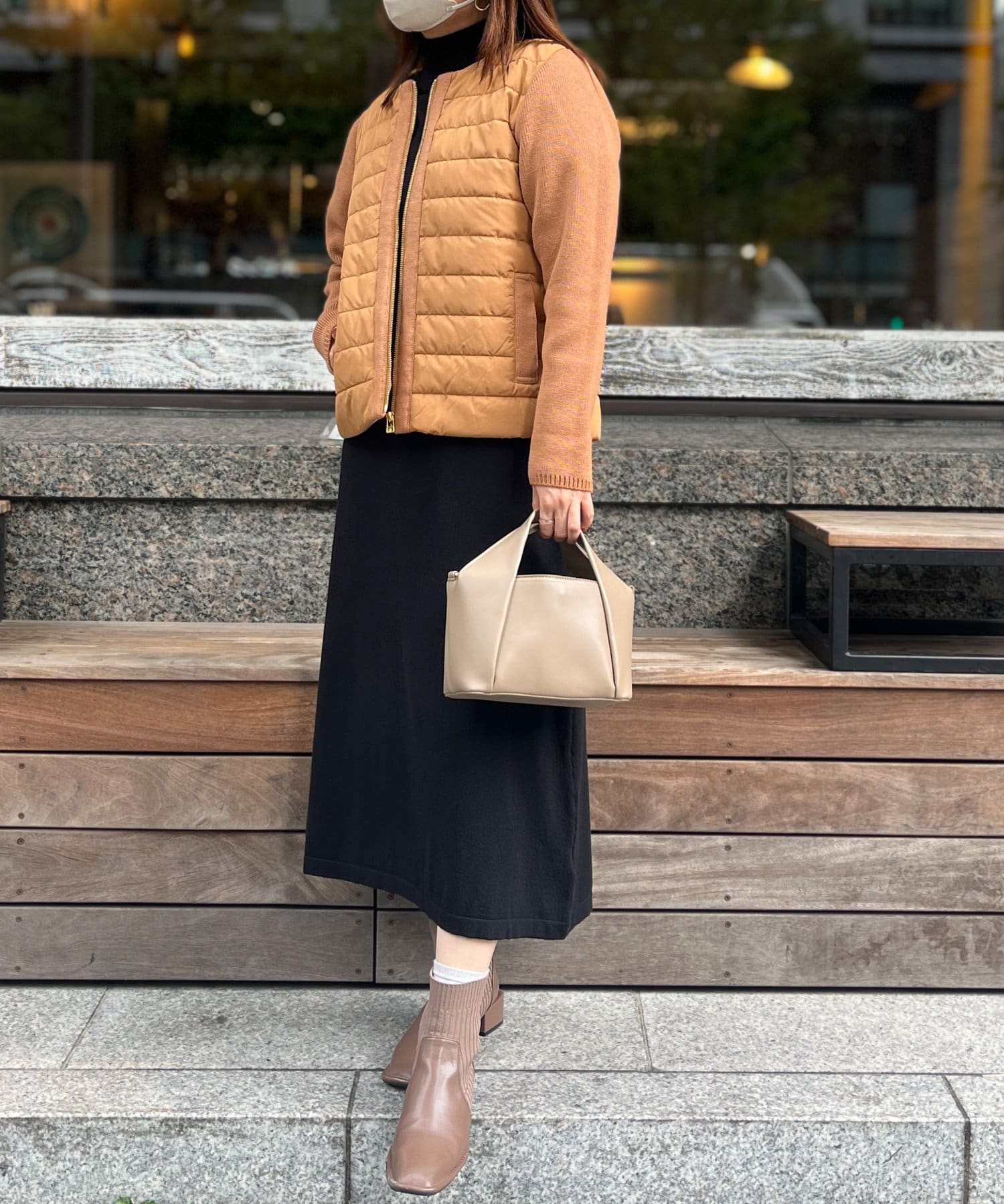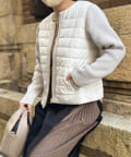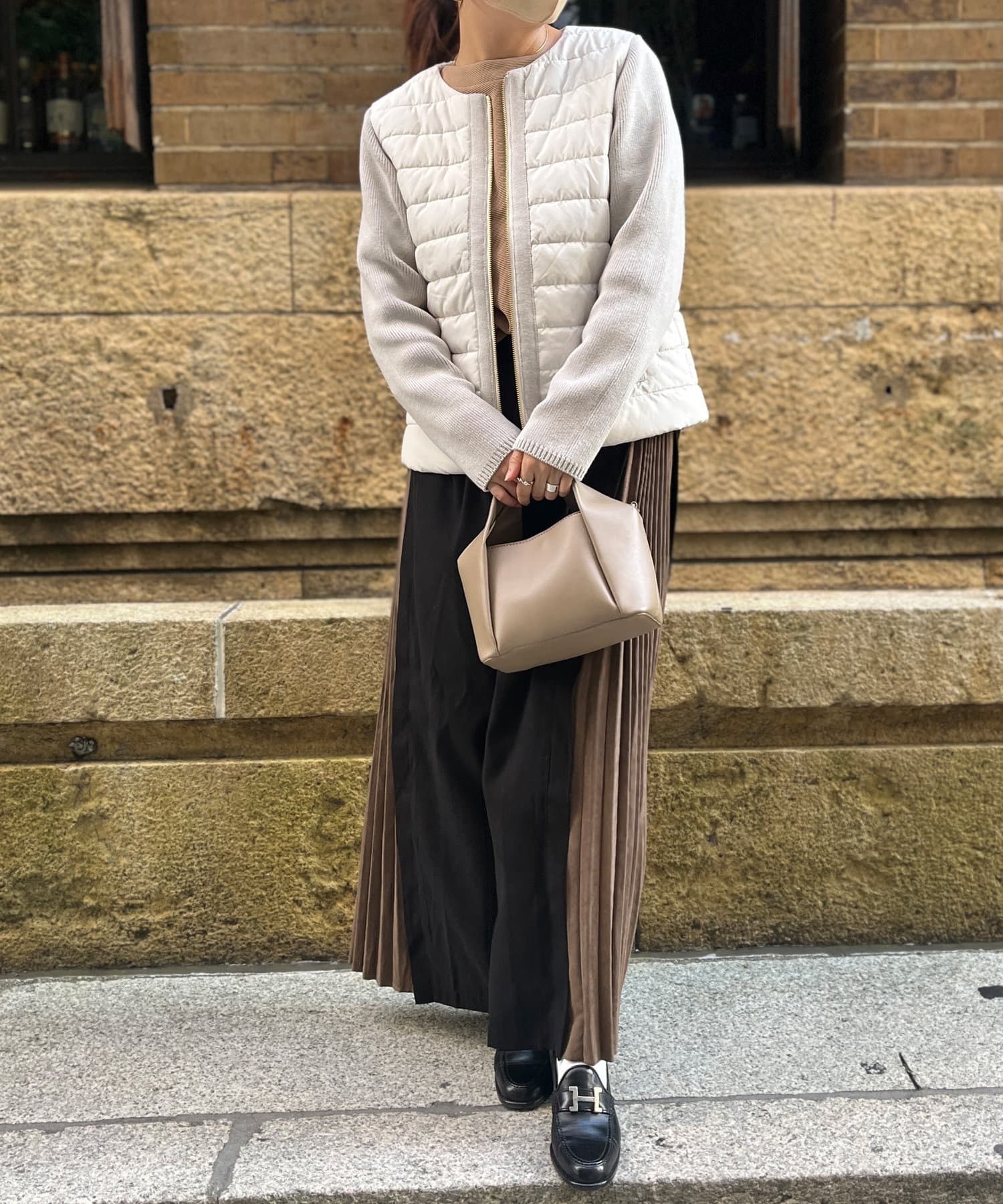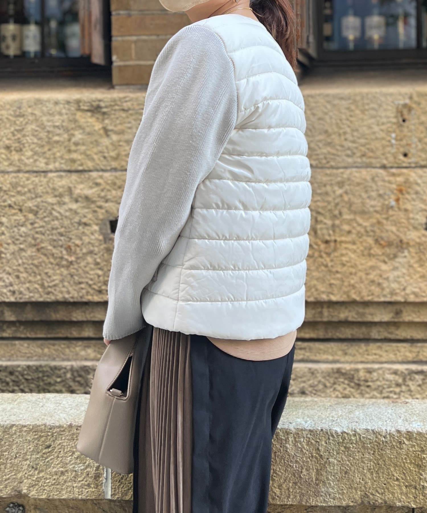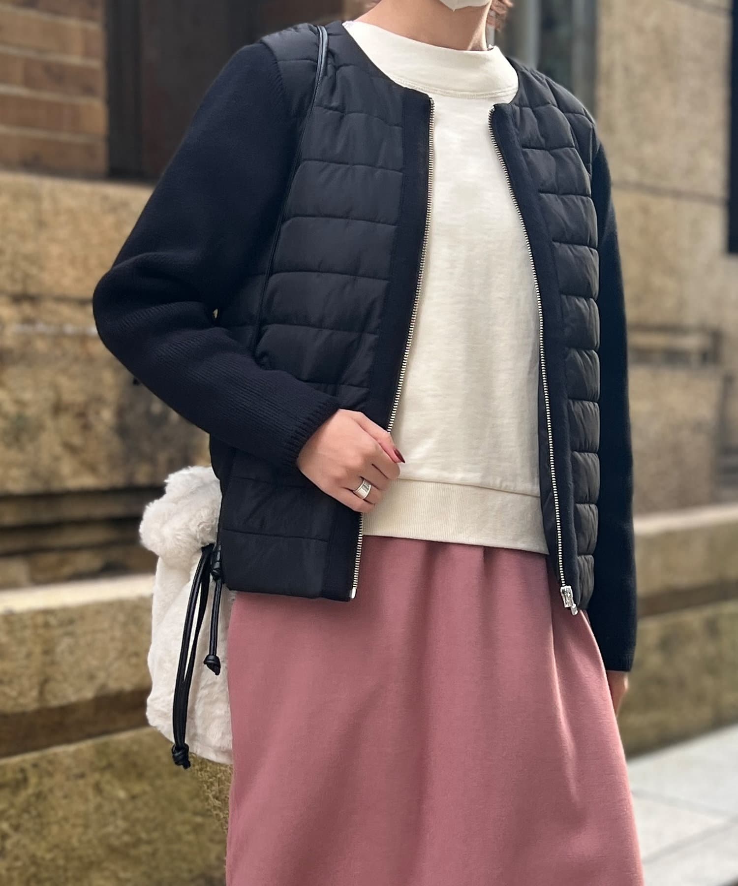 袖部分はハリのあるニットになっており、キルティングベストを重ねた様なデザインがポイント!