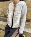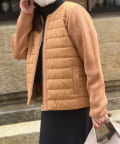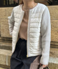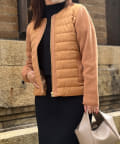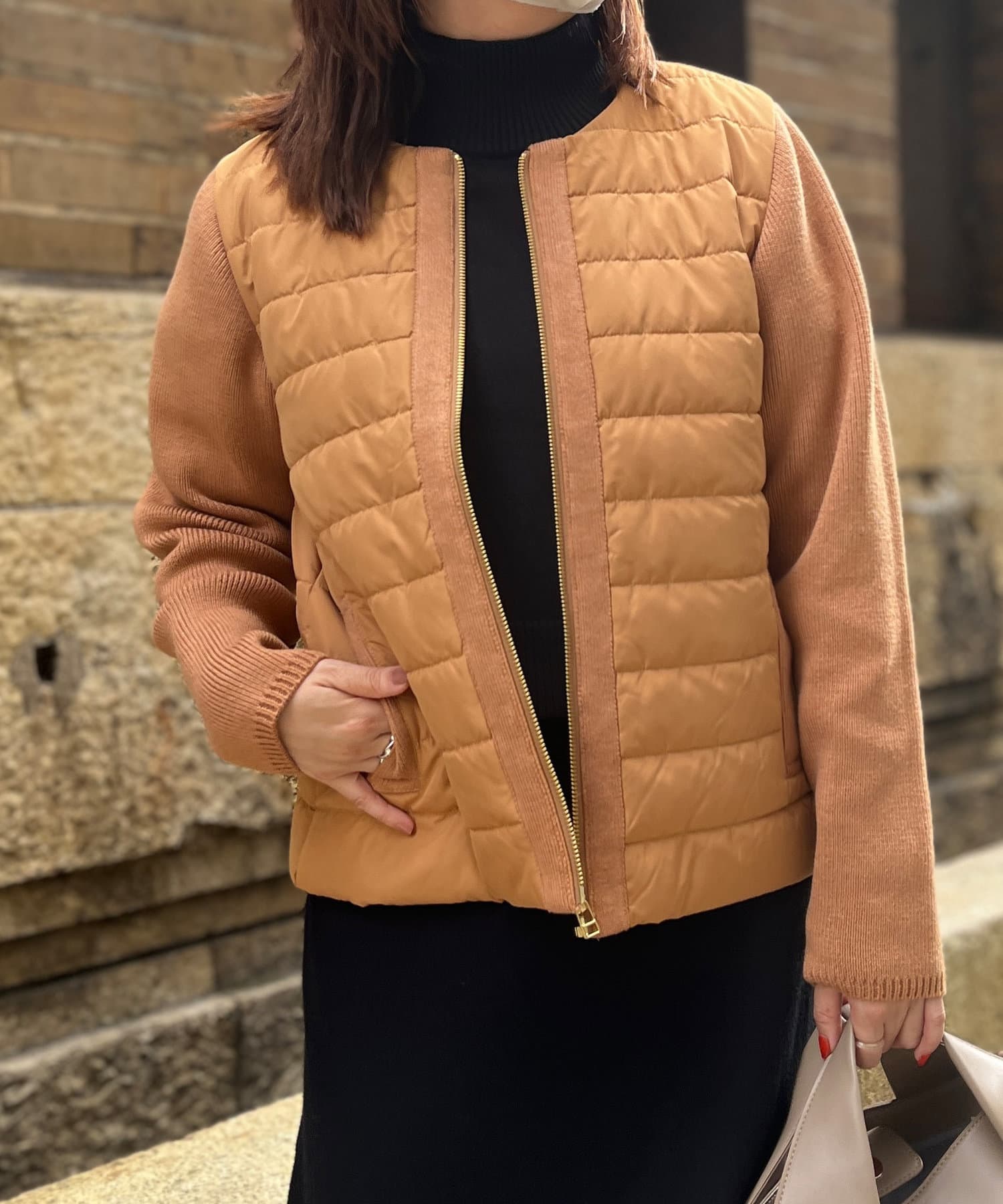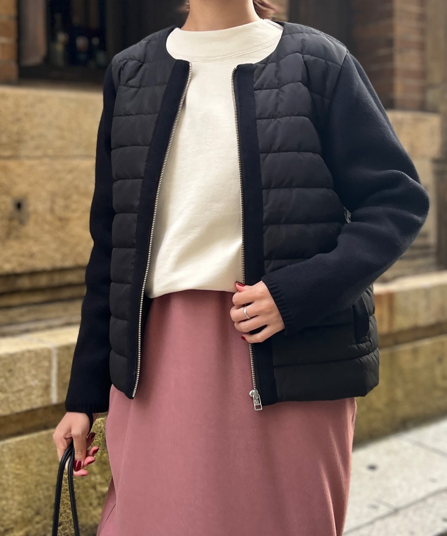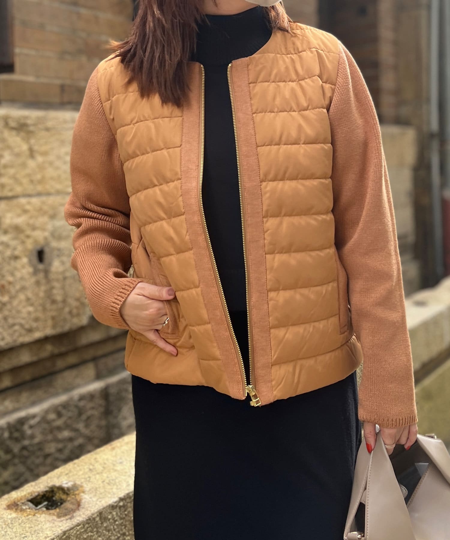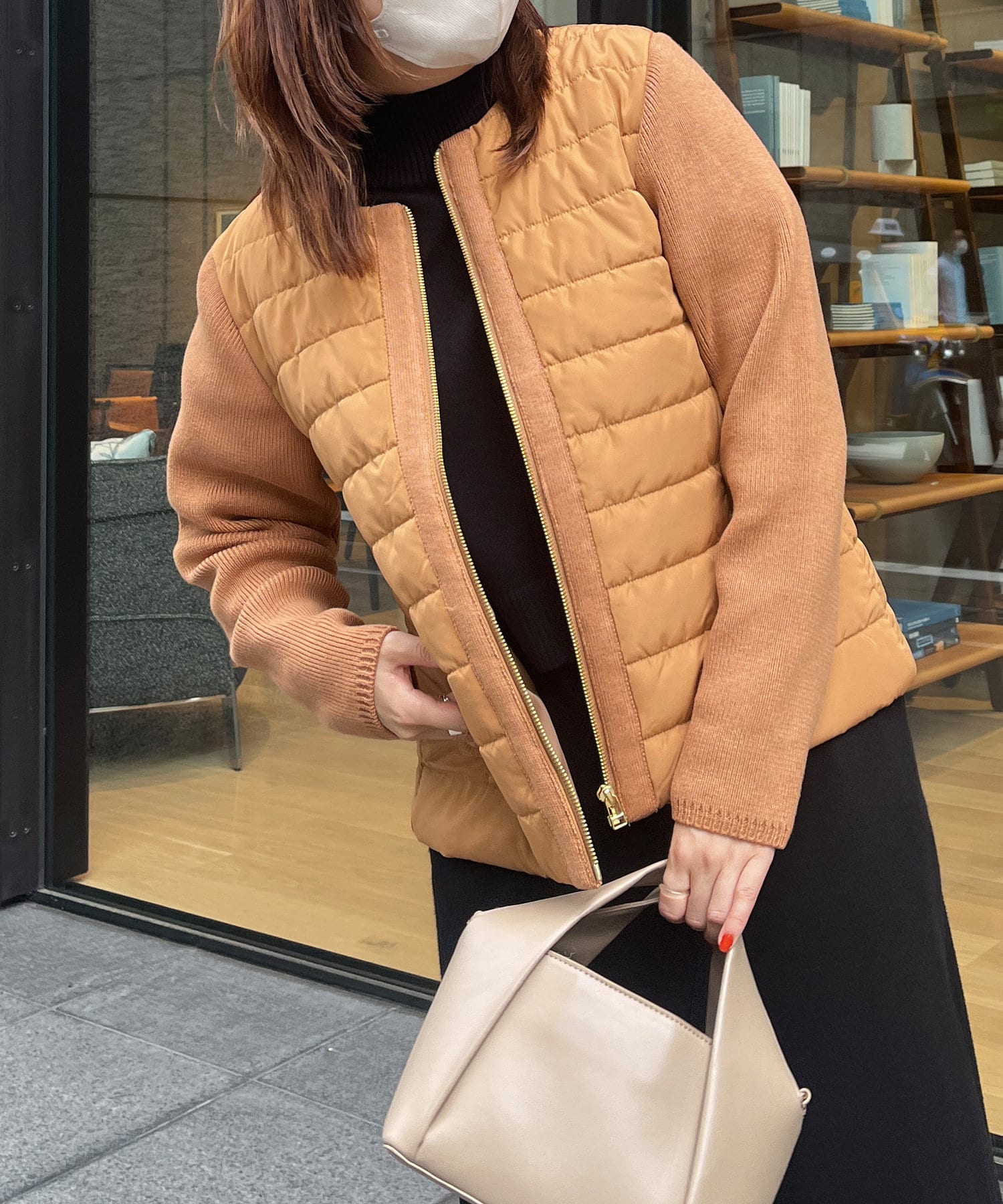 中わたのキルティングとニットの異素材ドッキングジャケットです。