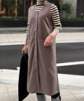 ・フロントのジップを閉めるとワンピースに、開けるとロングジレとして着用できるので、