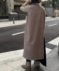 ・フロントジップを閉めたワンピーススタイルにロングブーツも今年らしい着こなしに。