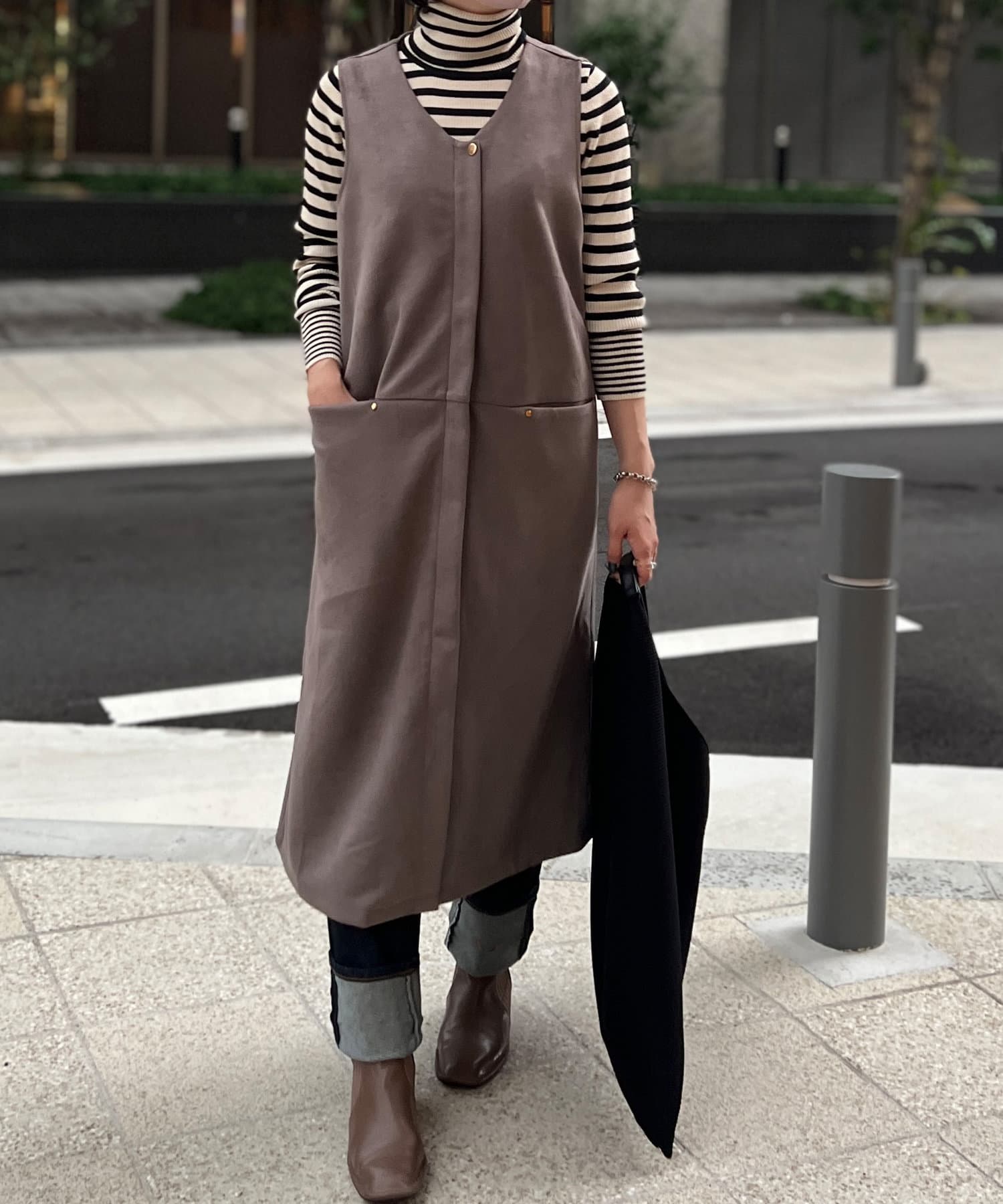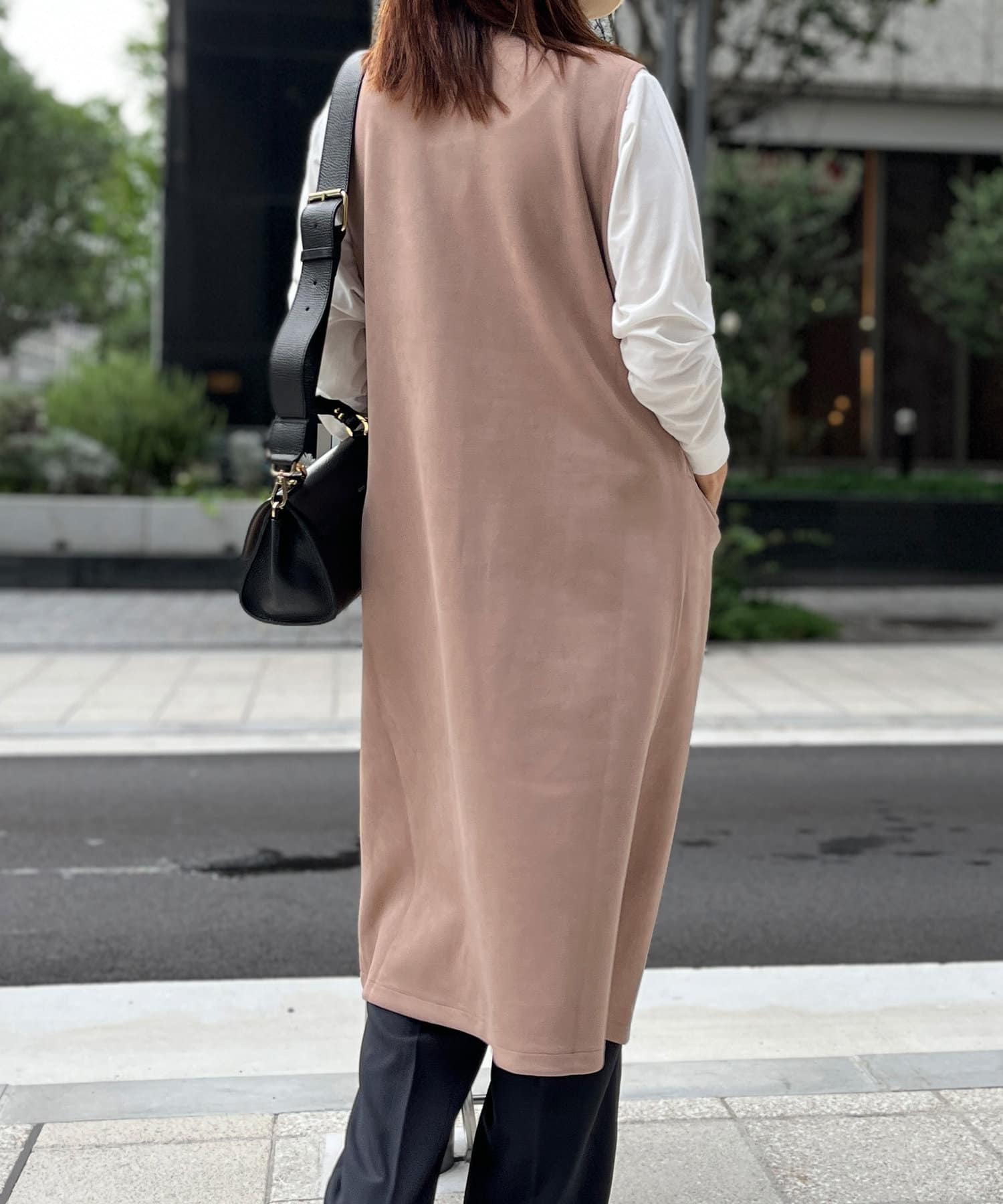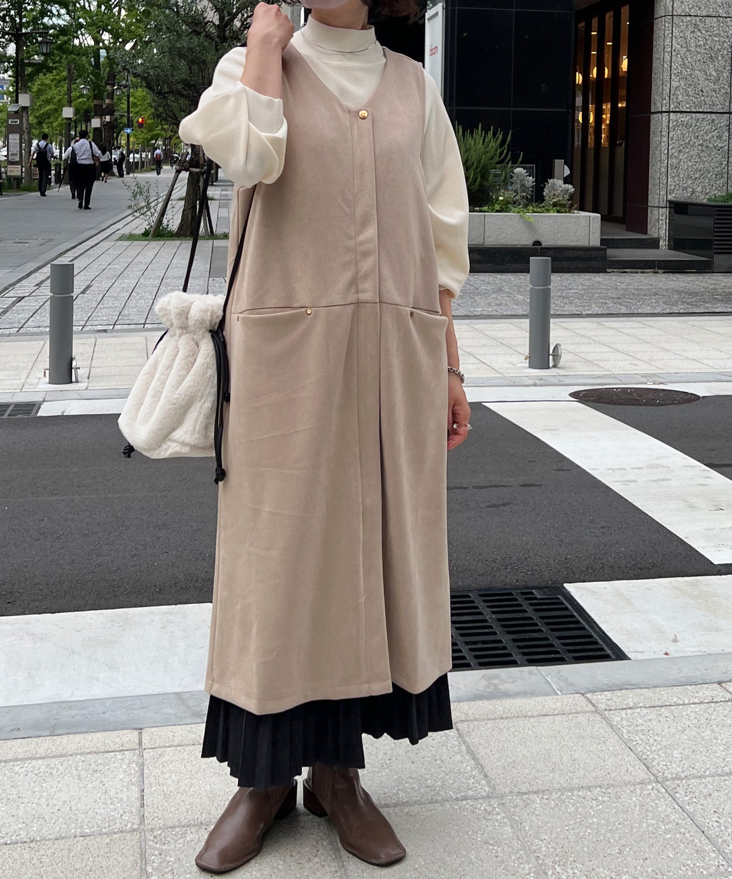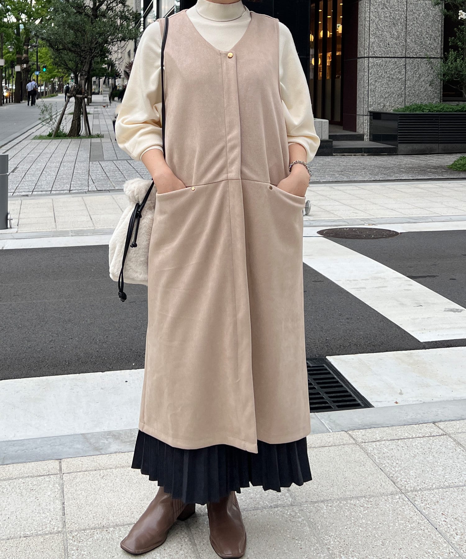お洒落の幅が広がる フェイクスエードの高見えジレワンピース