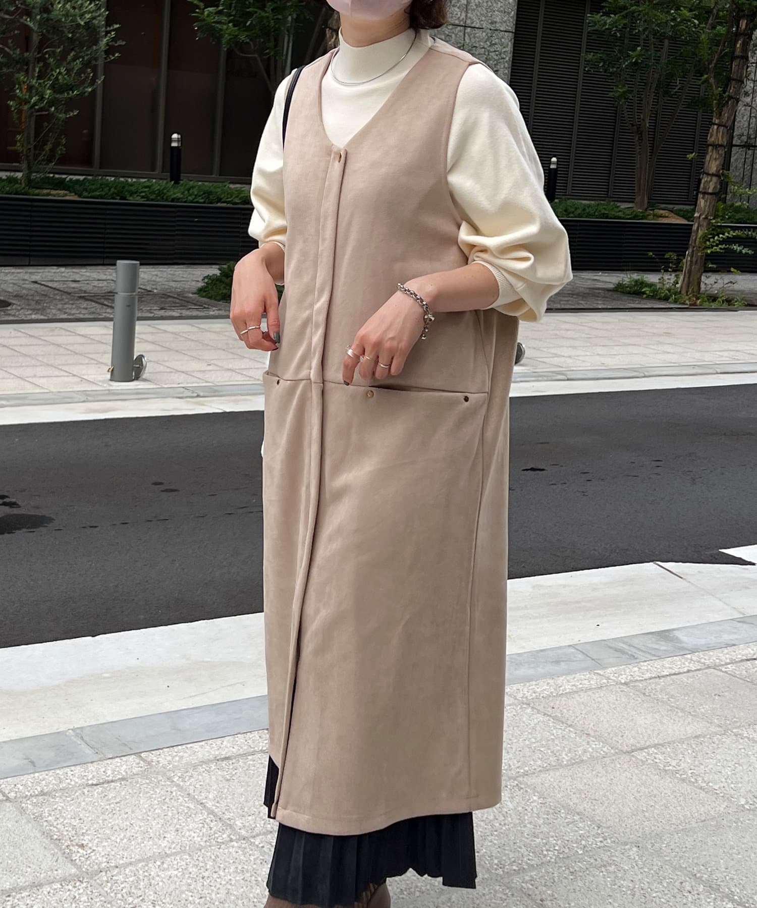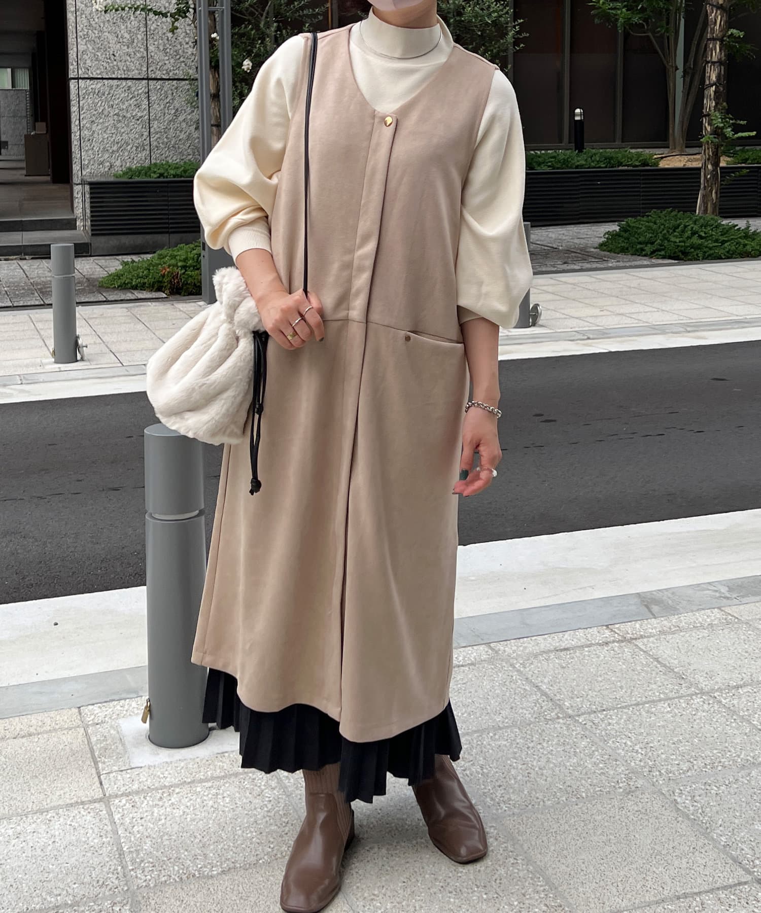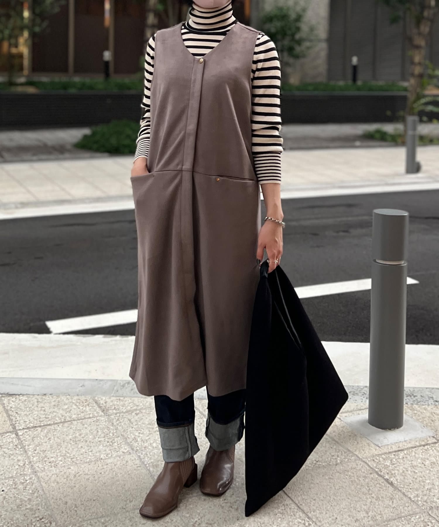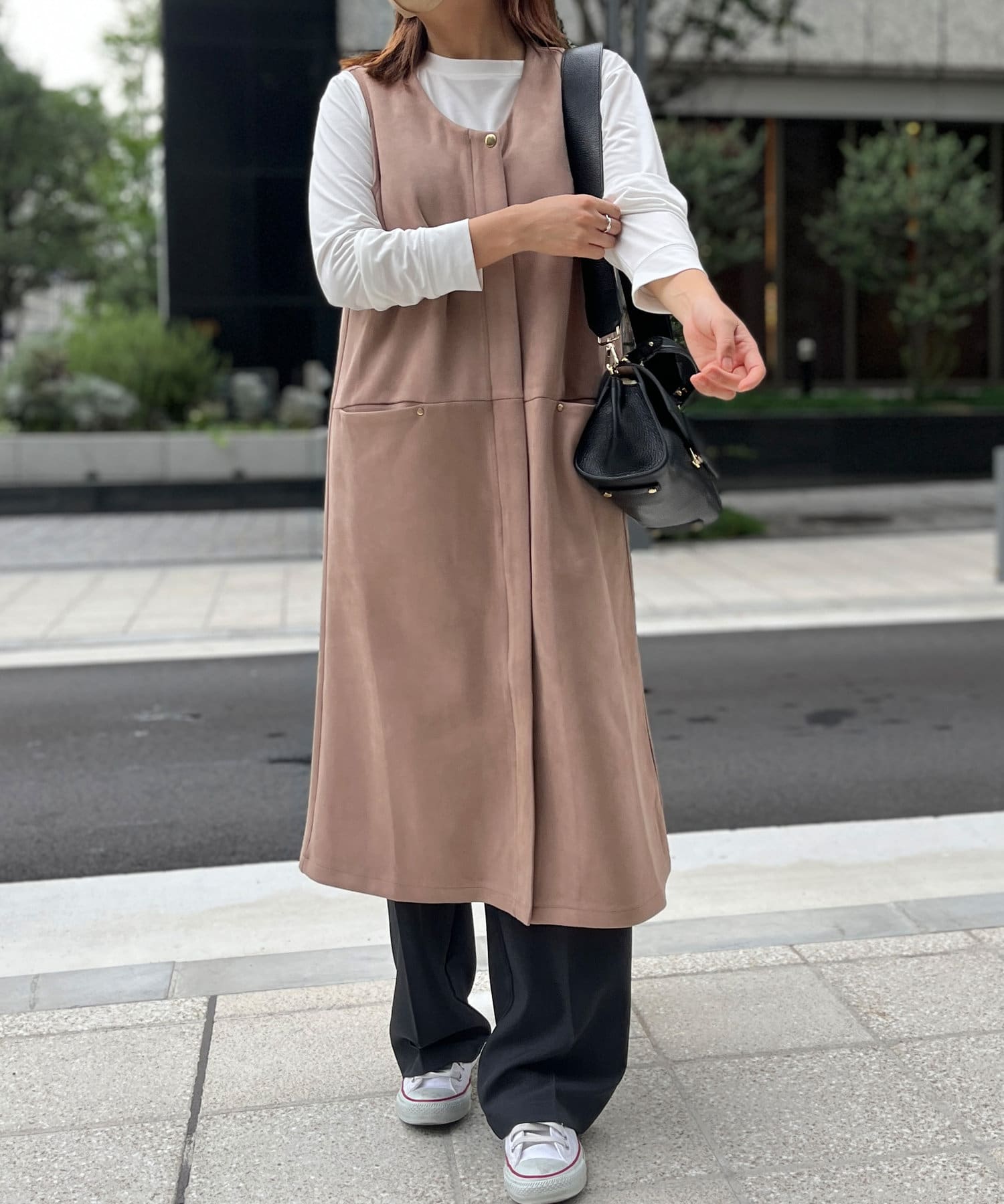 お洒落の幅が広がる フェイクスエードの高見えジレワンピース