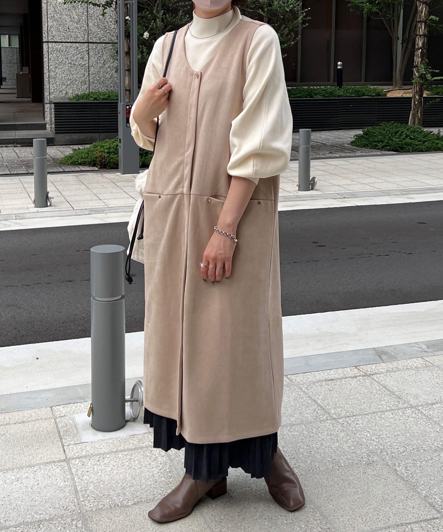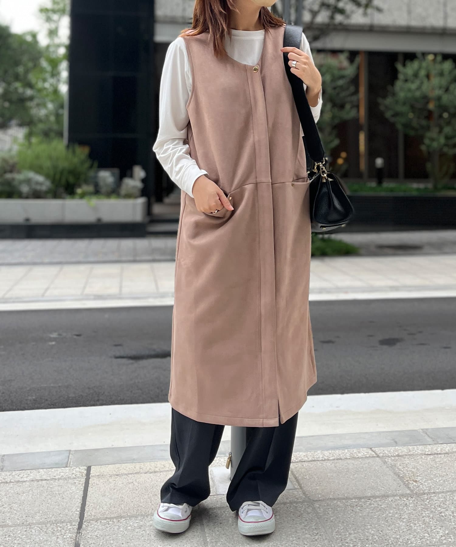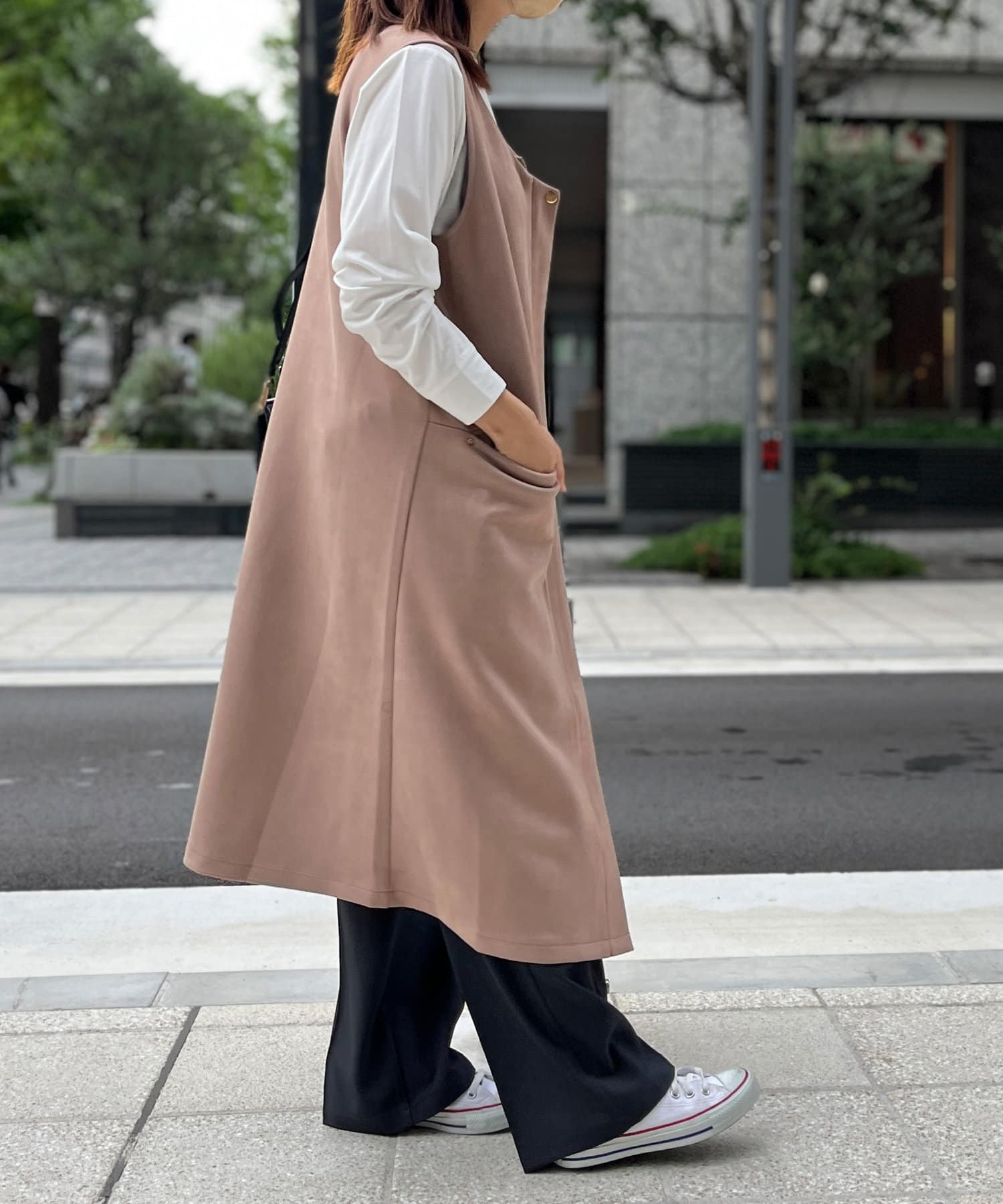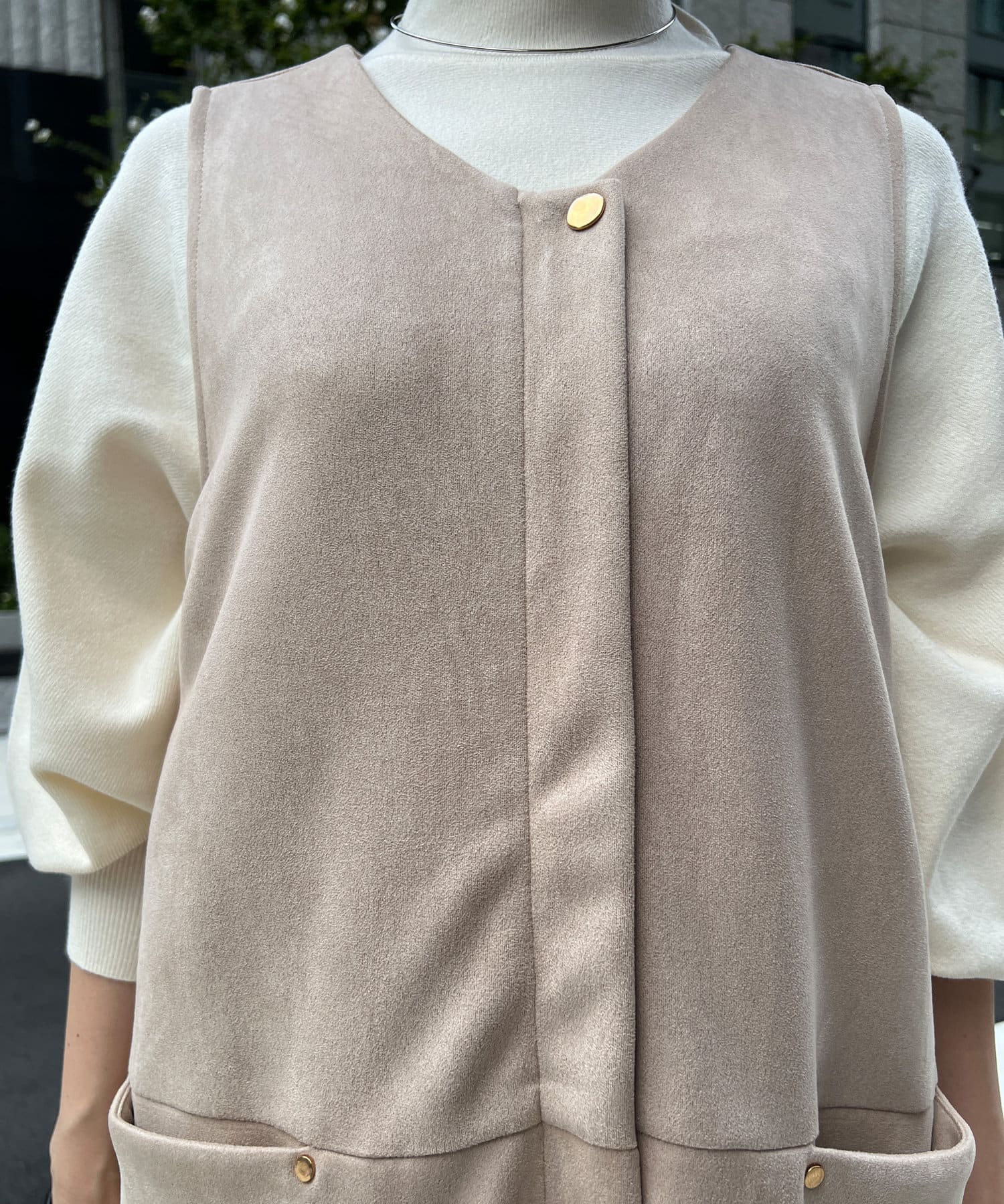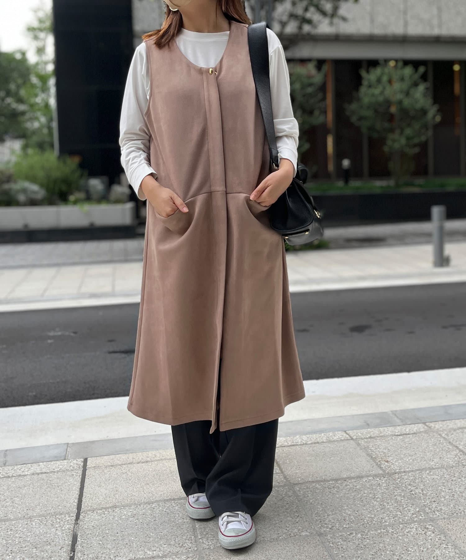 お洒落の幅が広がる フェイクスエードの高見えジレワンピース