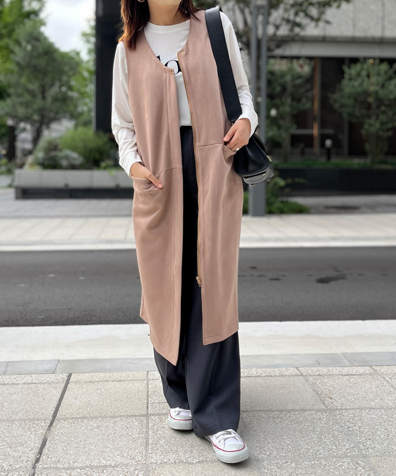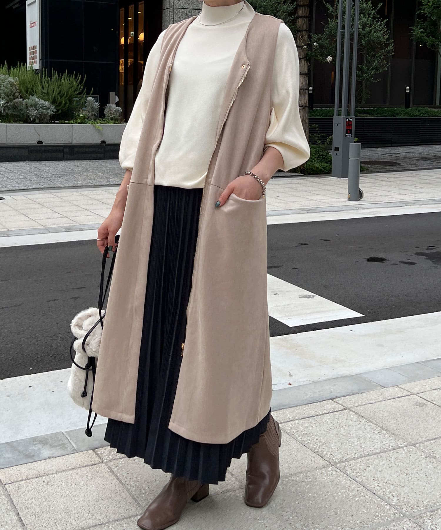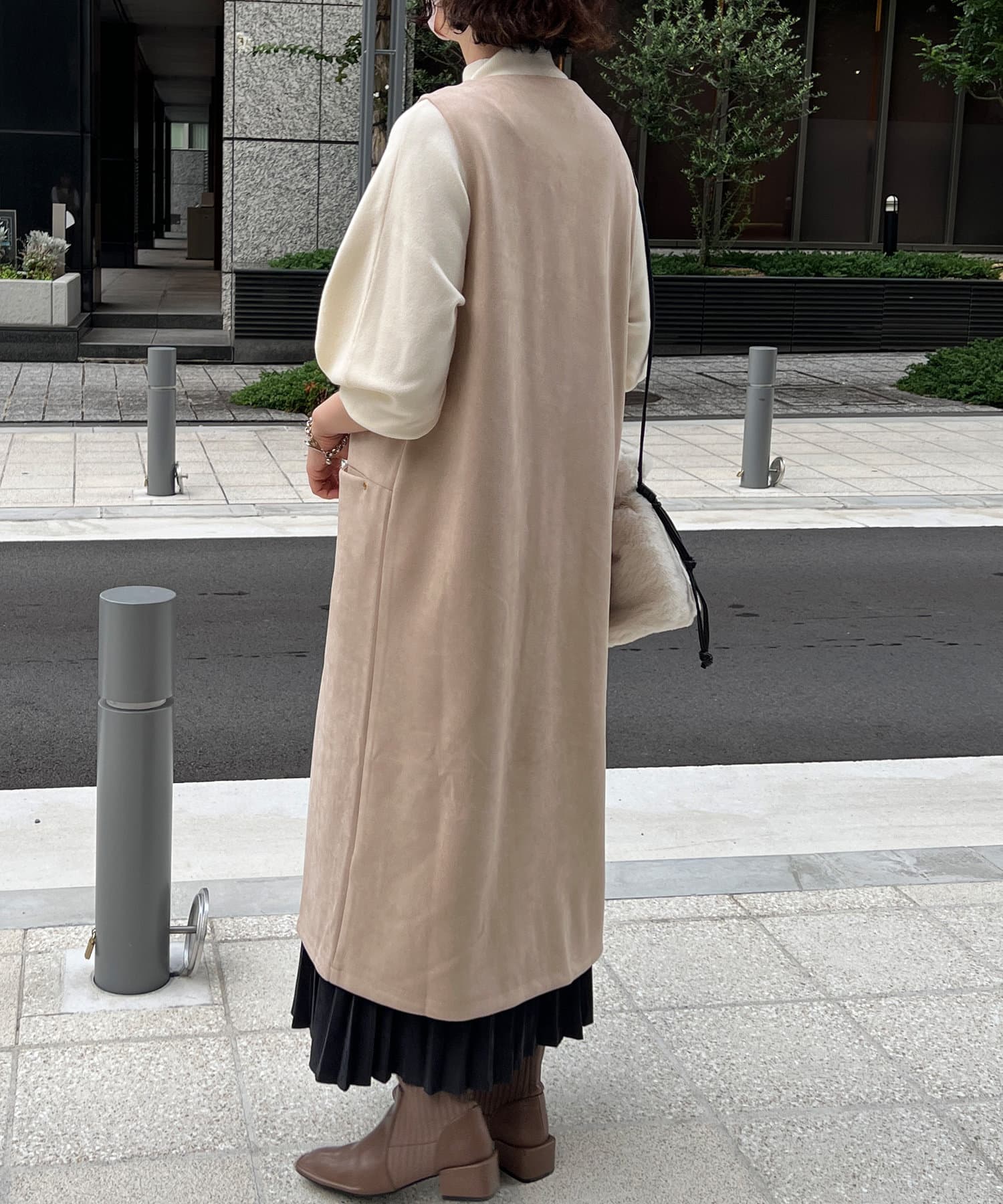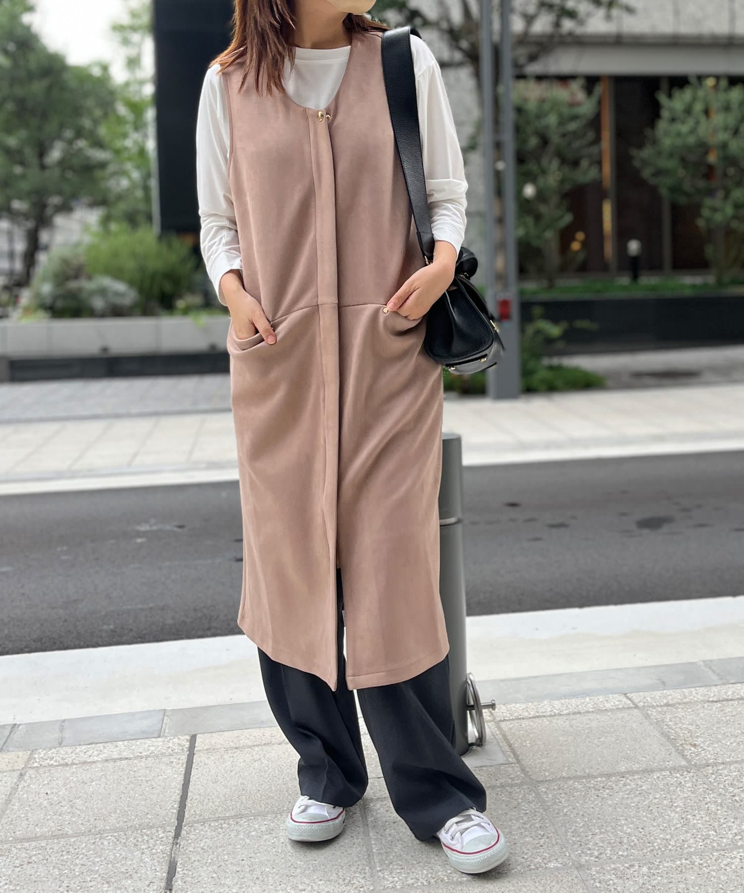 お洒落の幅が広がる フェイクスエードの高見えジレワンピース