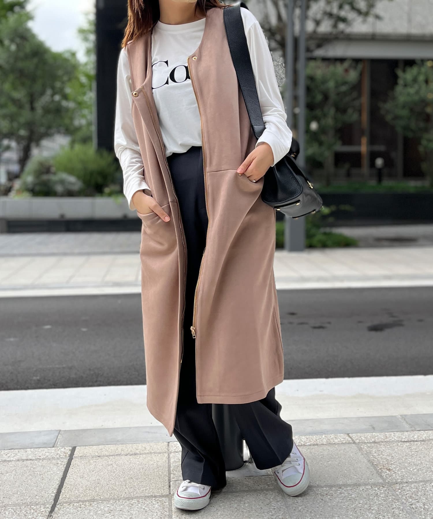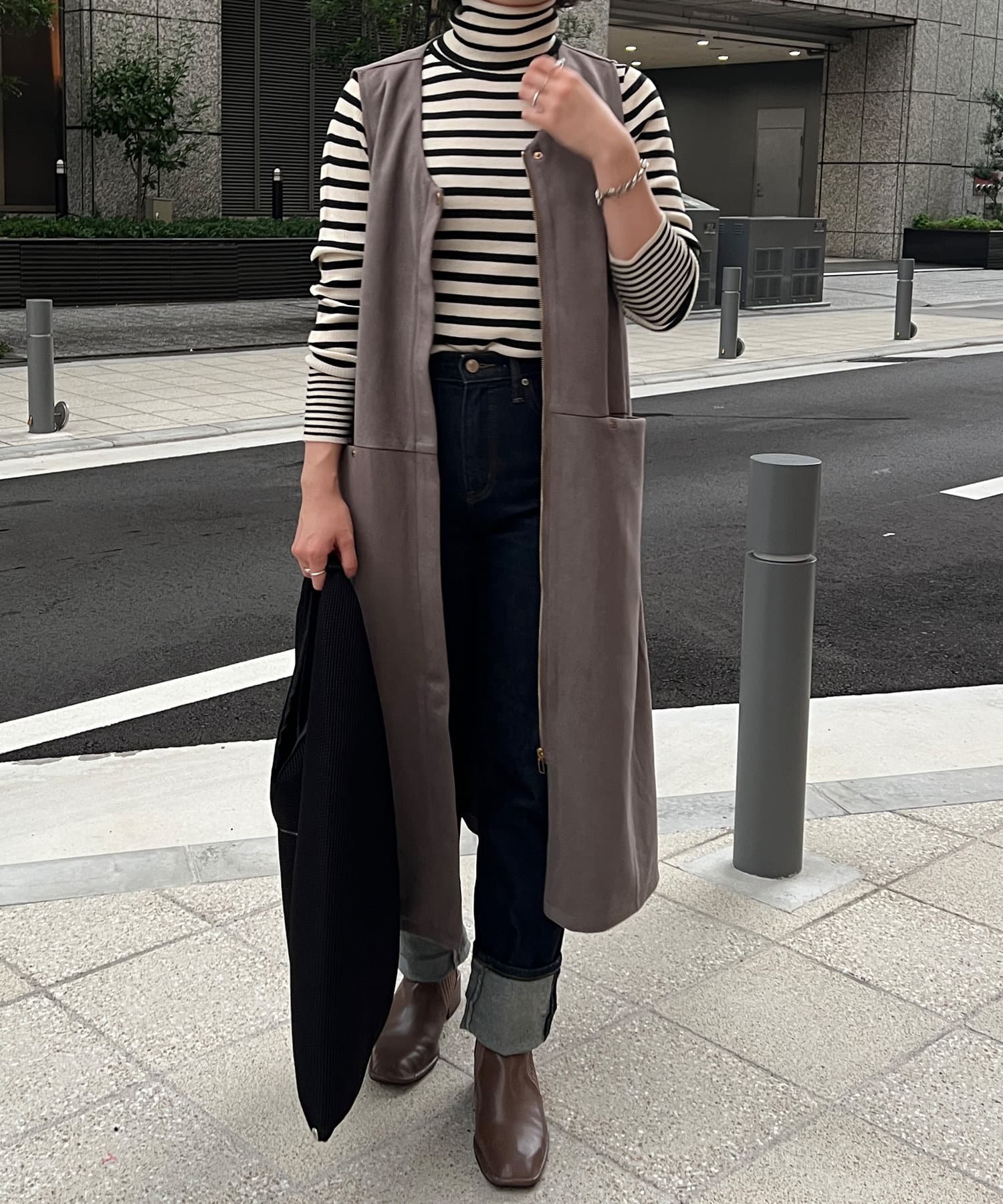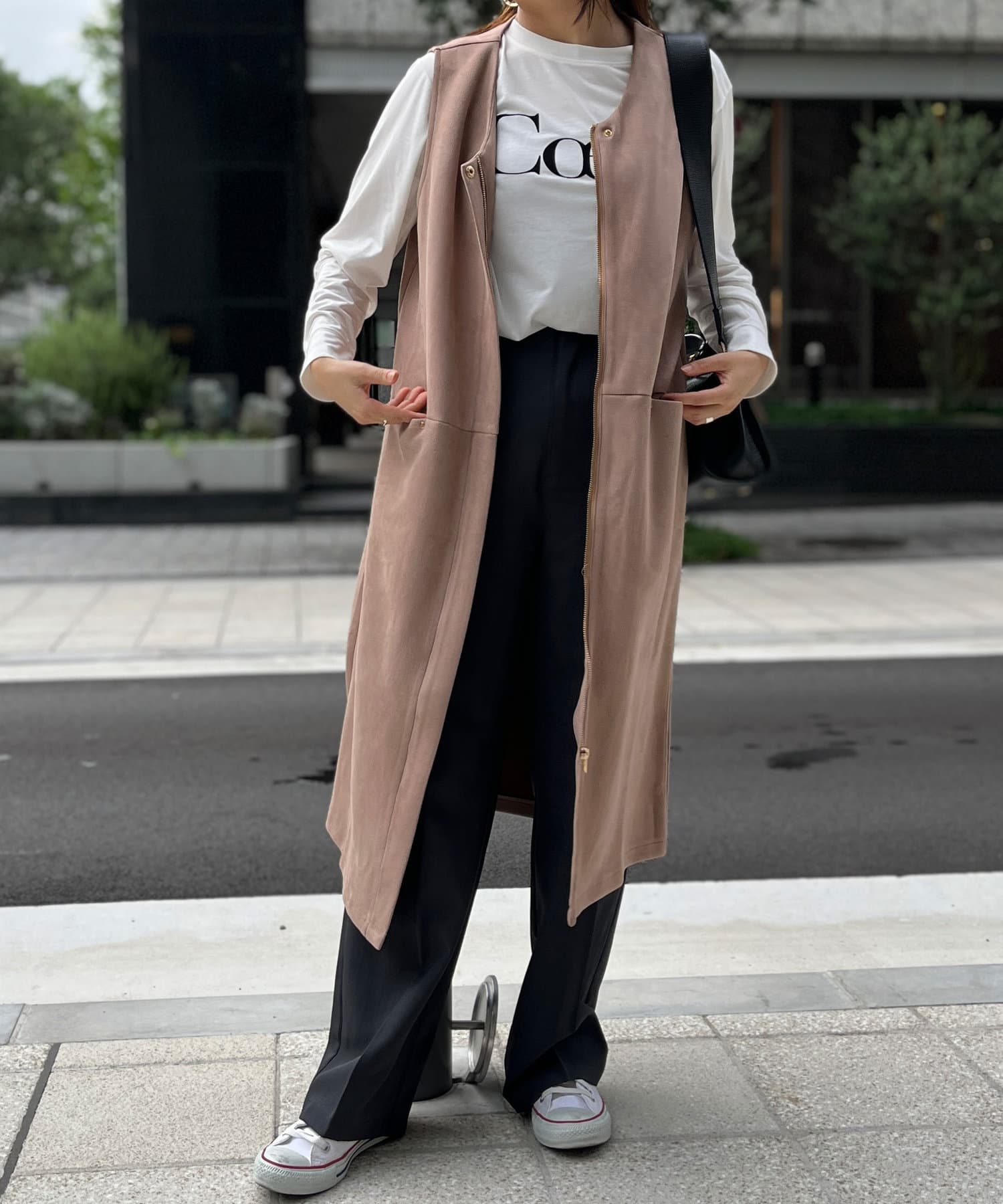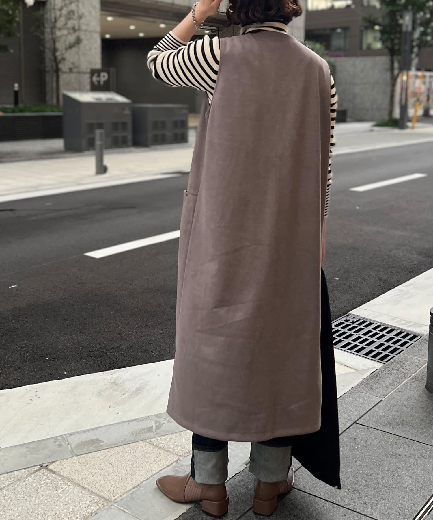 お洒落の幅が広がる フェイクスエードの高見えジレワンピース