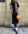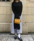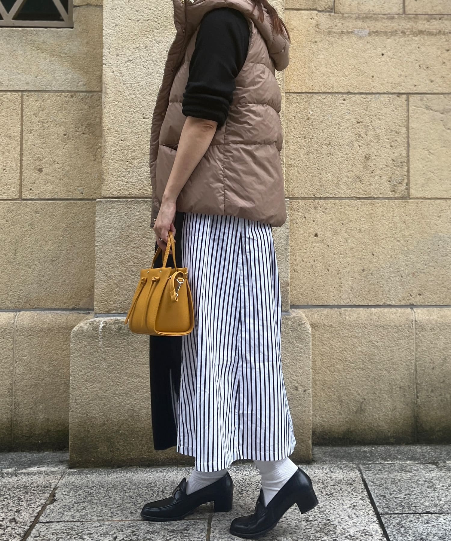 ショートブーツやフラットシューズを合わせてシンプルな着こなしがオススメです。