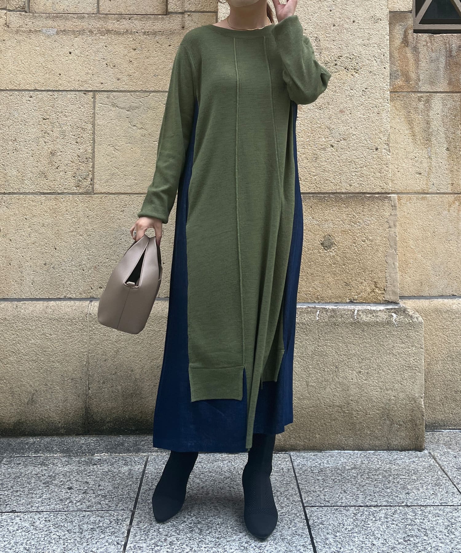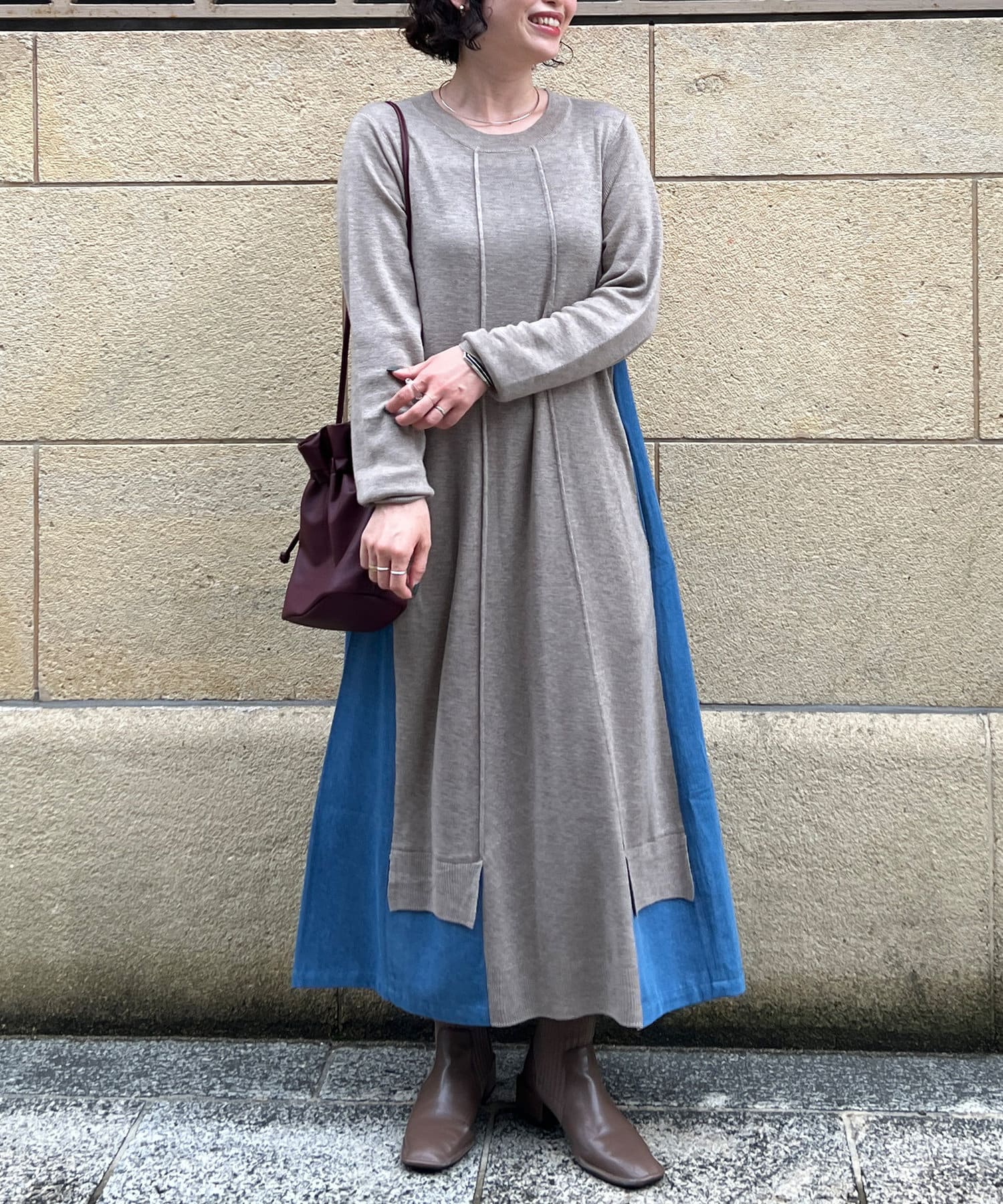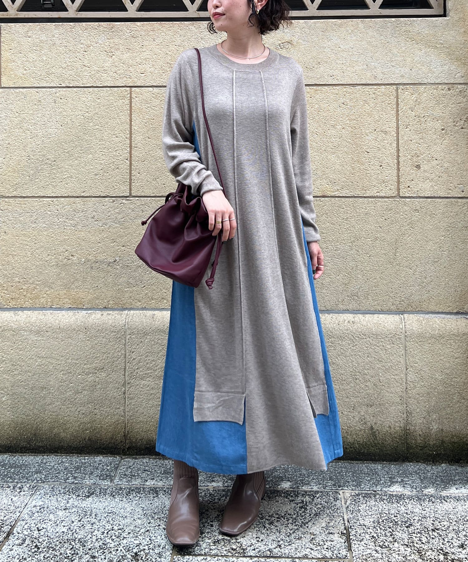 Chez toi(シェトワ) ニット×布帛切替2WAYワンピース