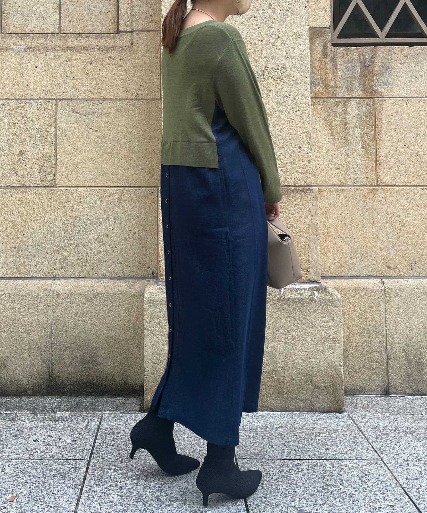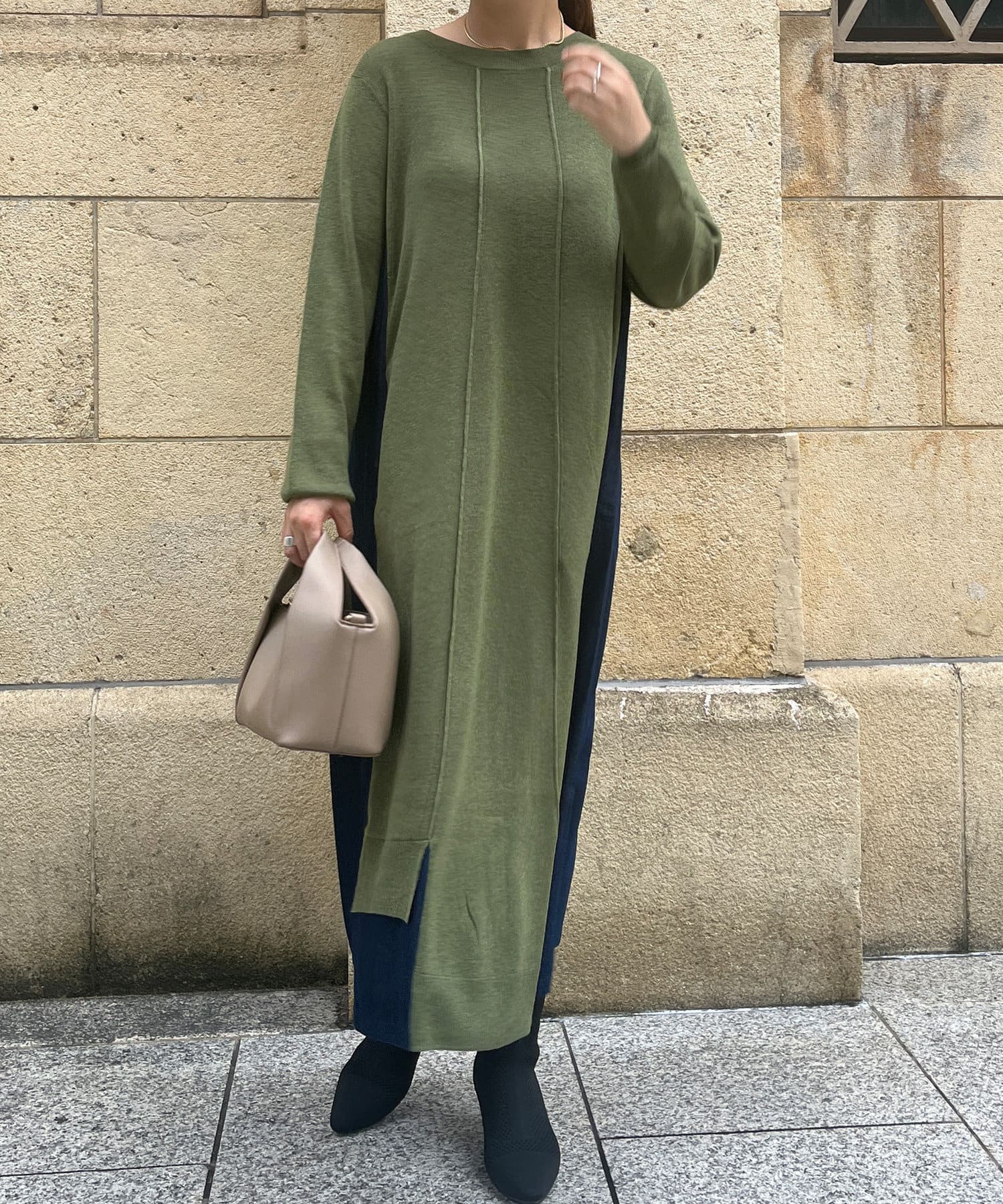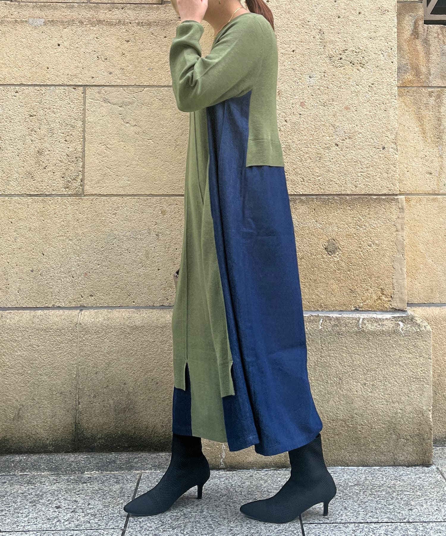 Chez toi(シェトワ) ニット×布帛切替2WAYワンピース