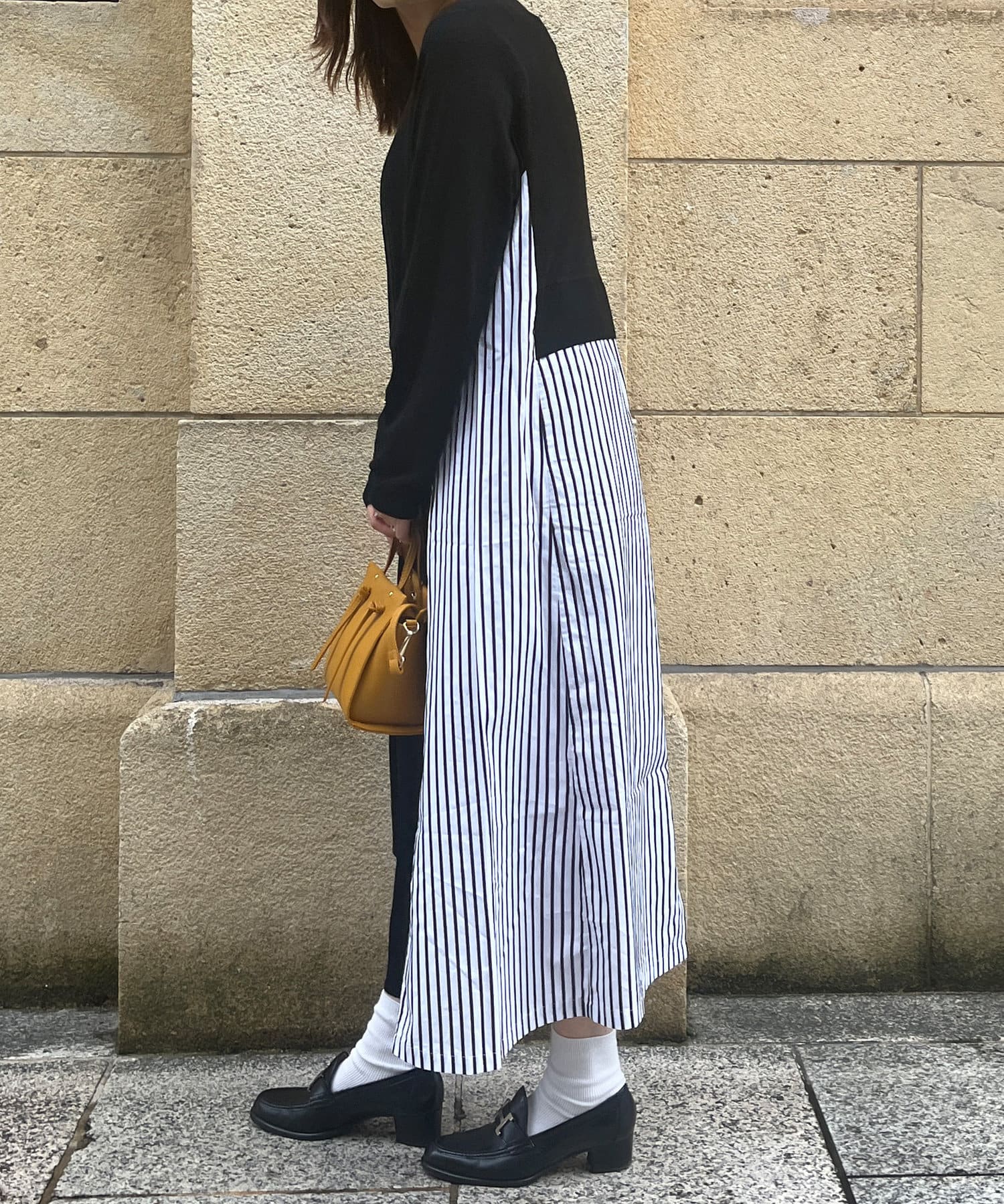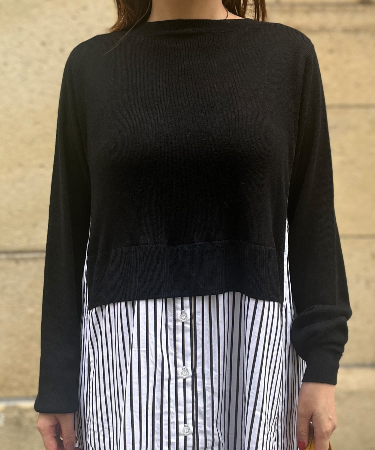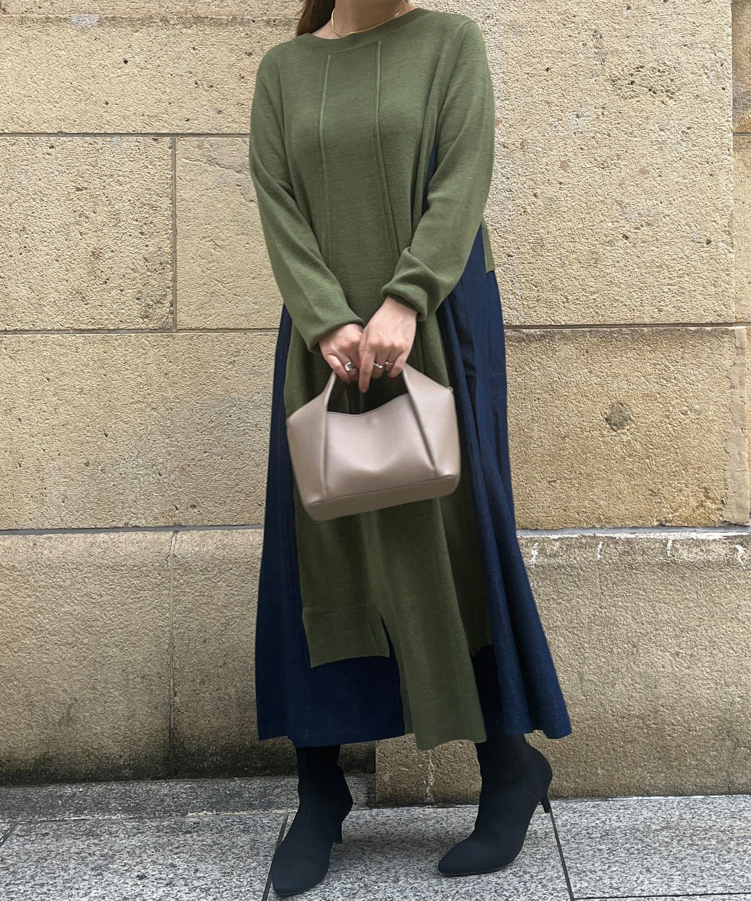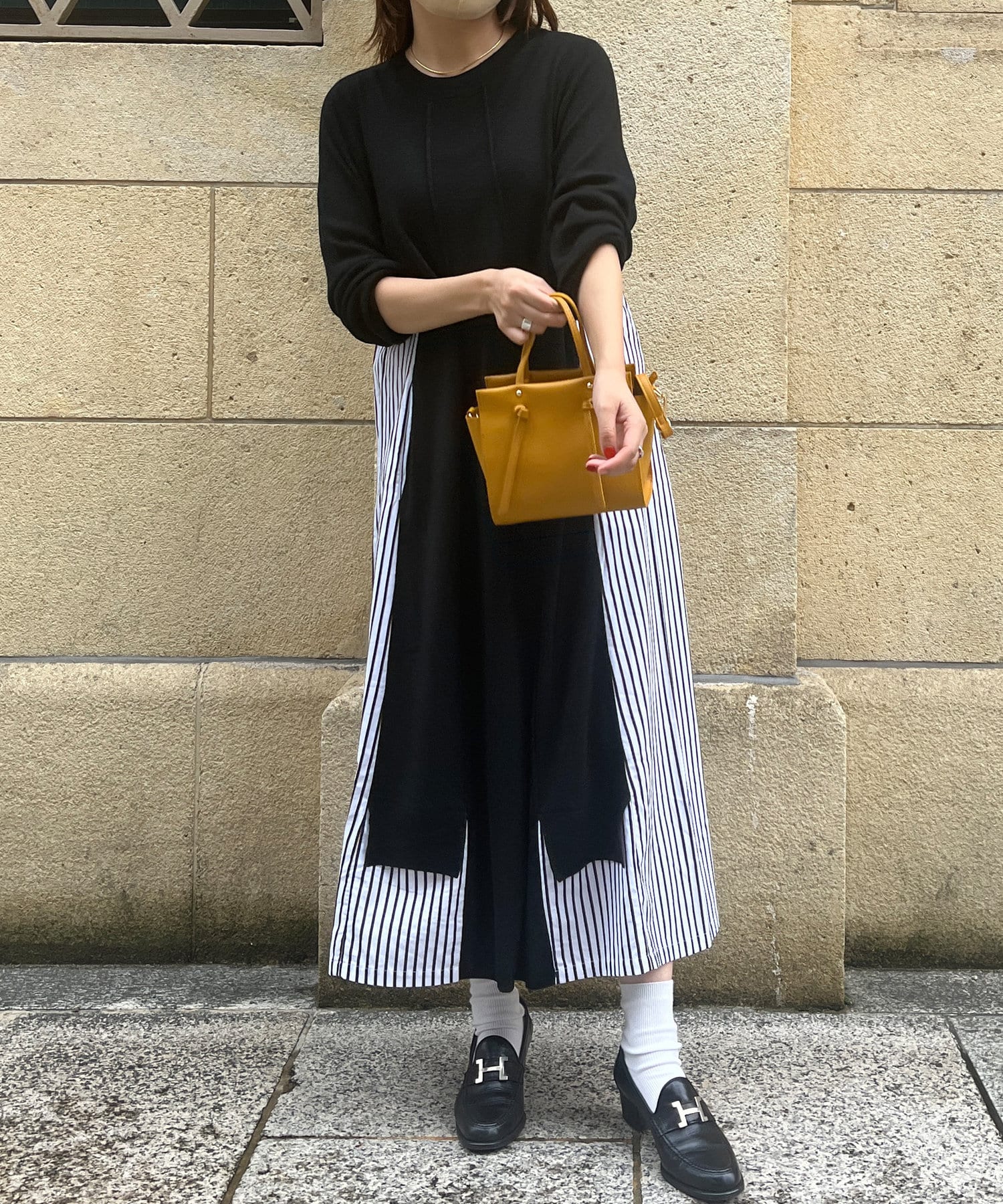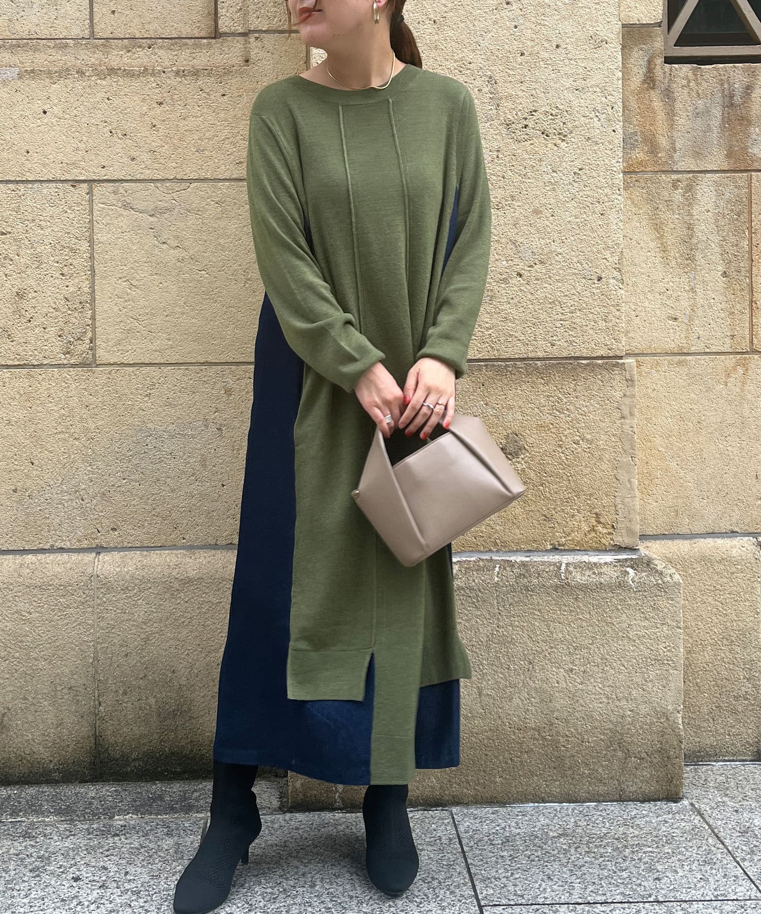 • Chez toi(シェトワ) ニット×布帛切替2WAYワンピース