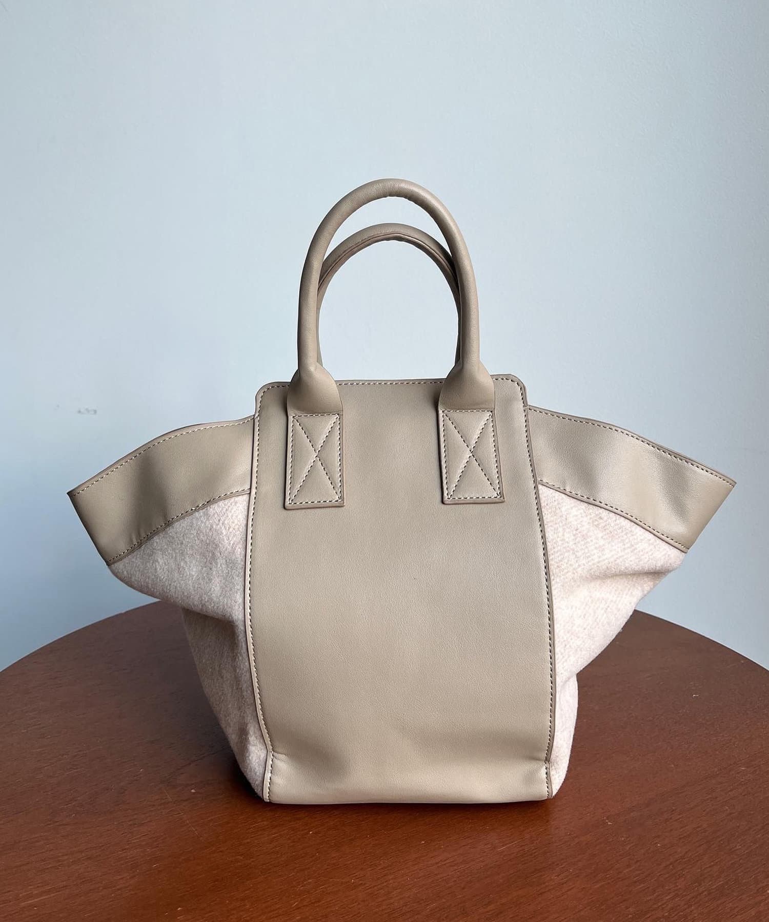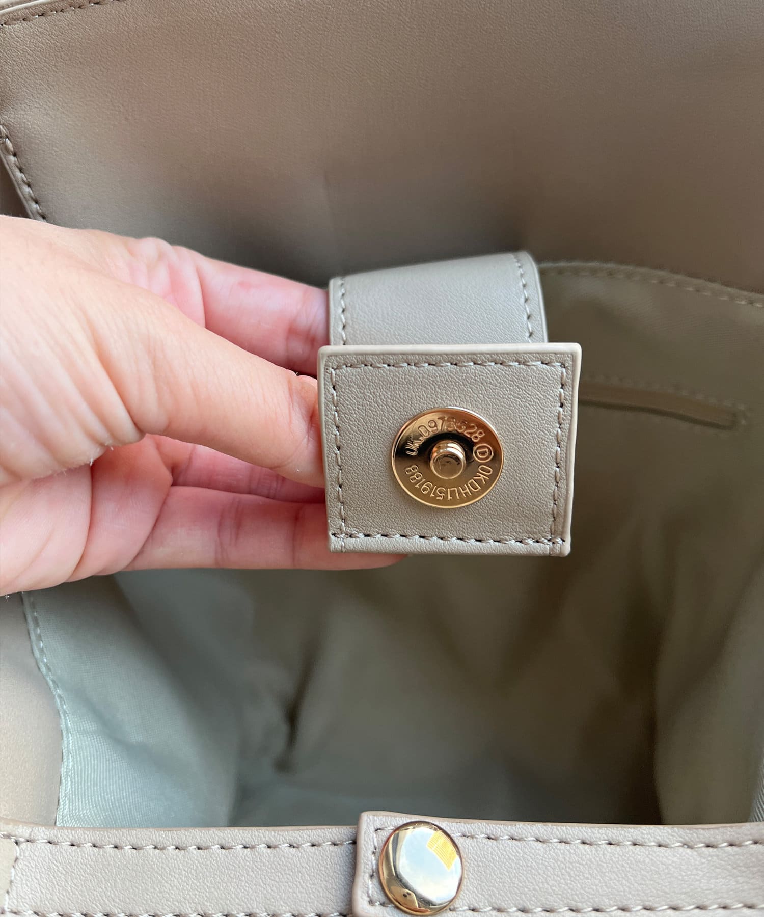 春の初めに持ちたいとおもって、合わせやすい色のバッグです。