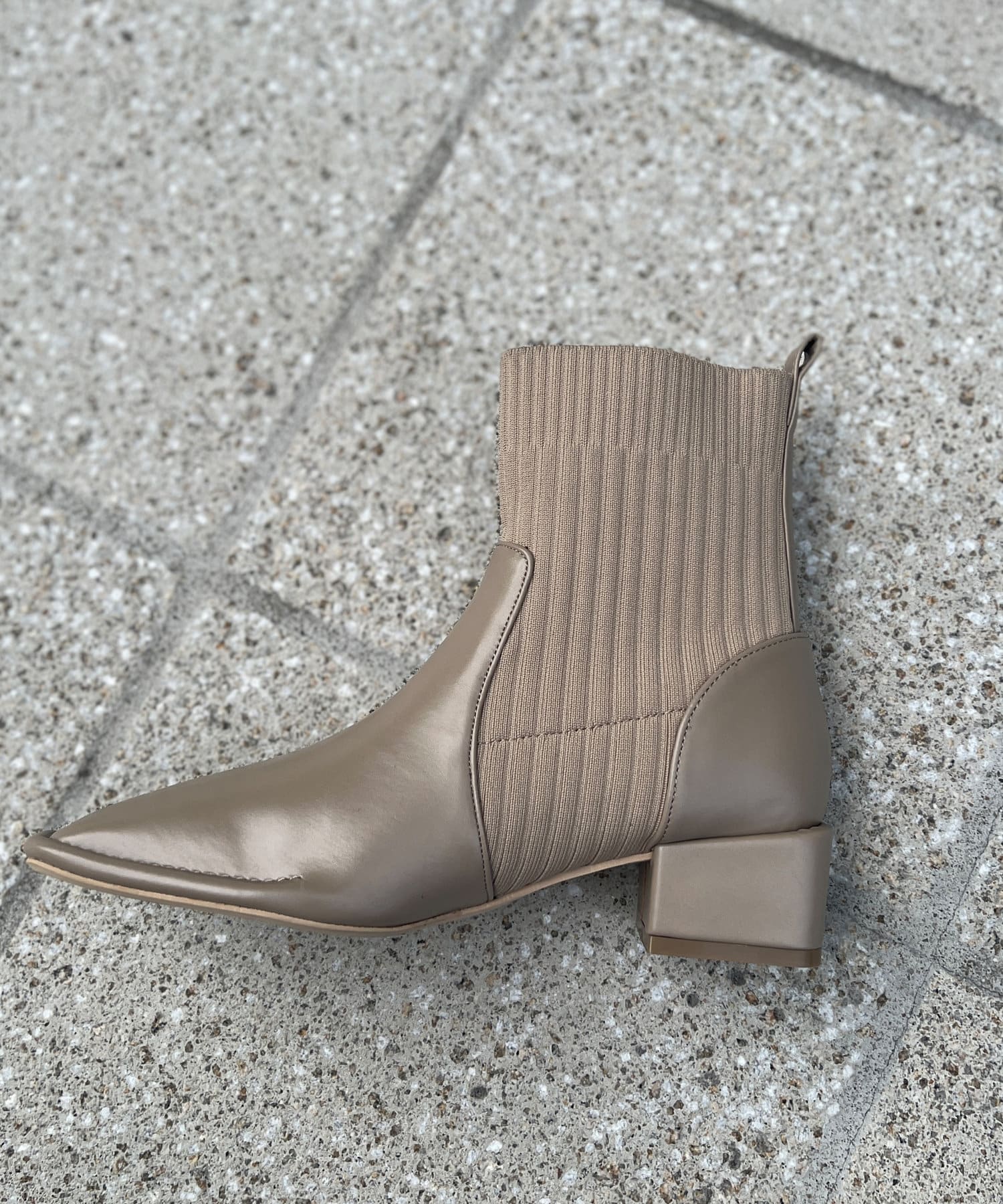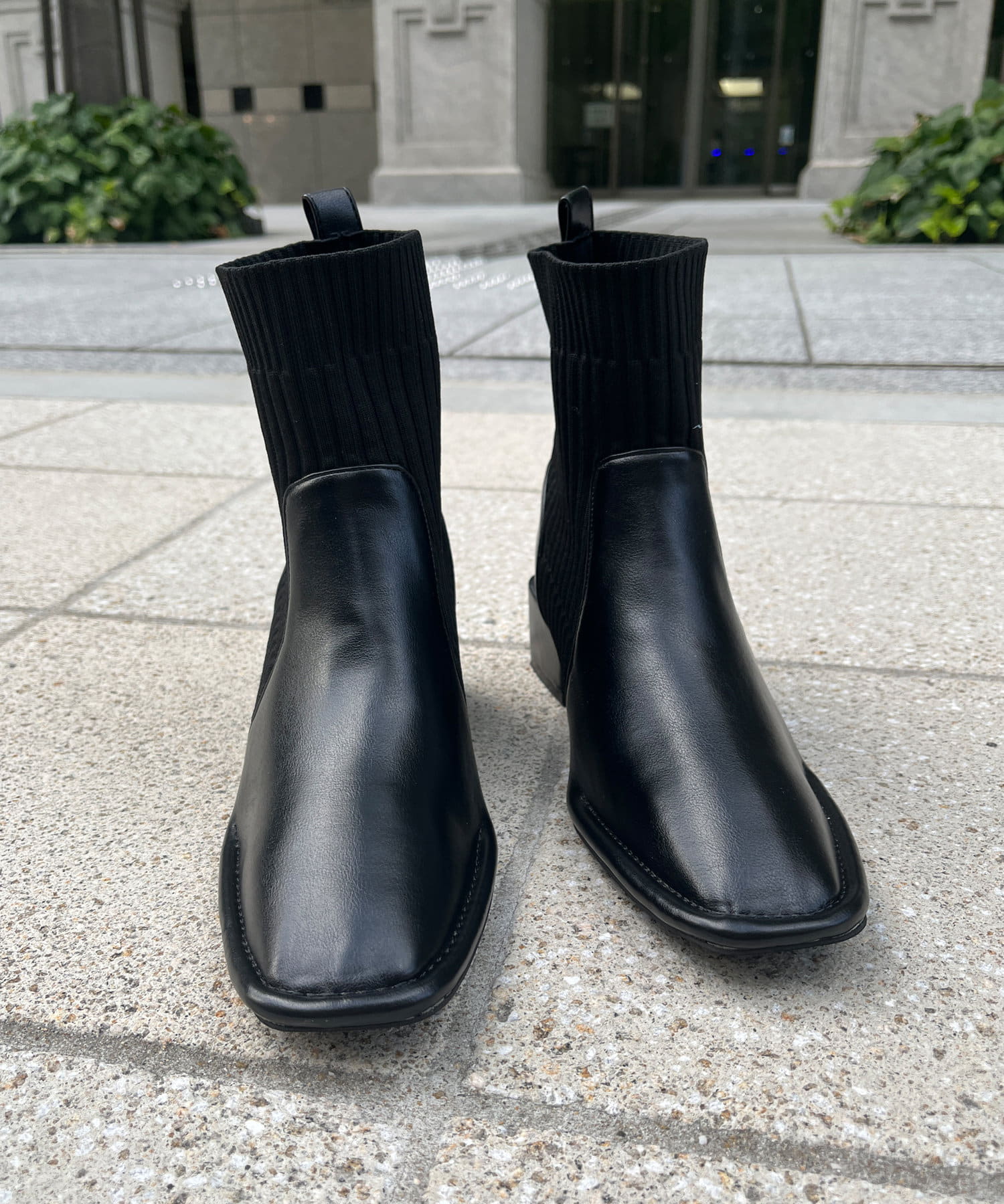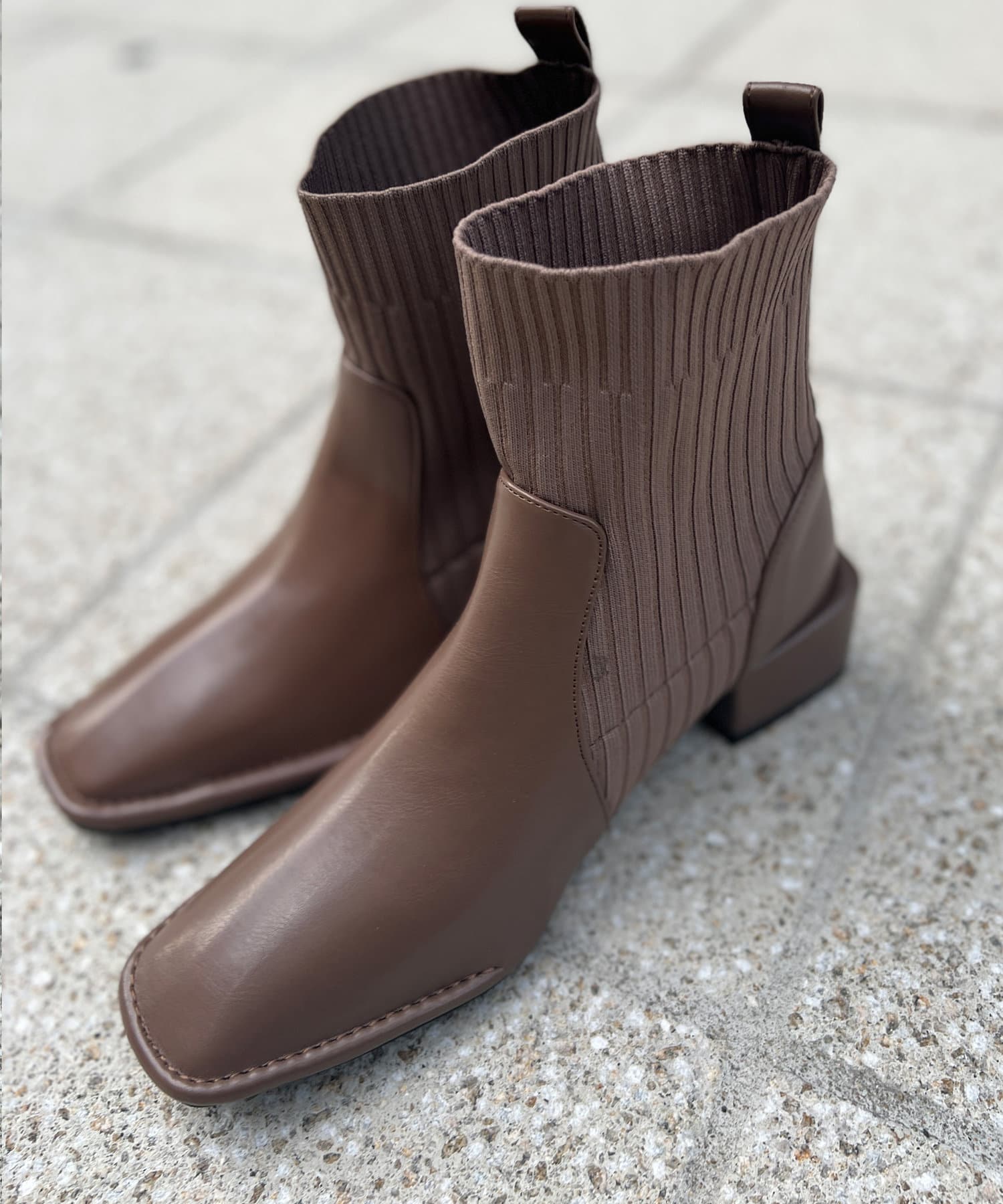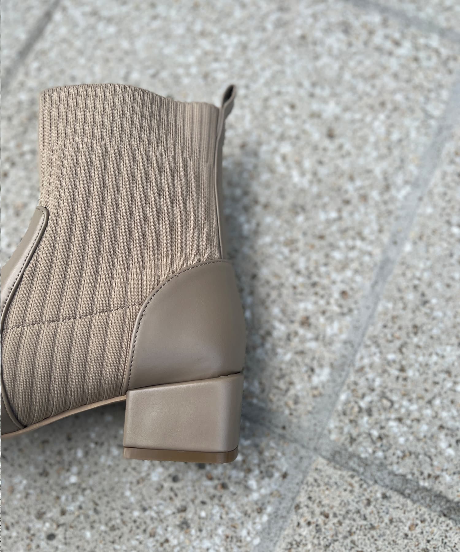 ・リブニットにチャンキーヒールとトレンドをギュッと詰め込んだ