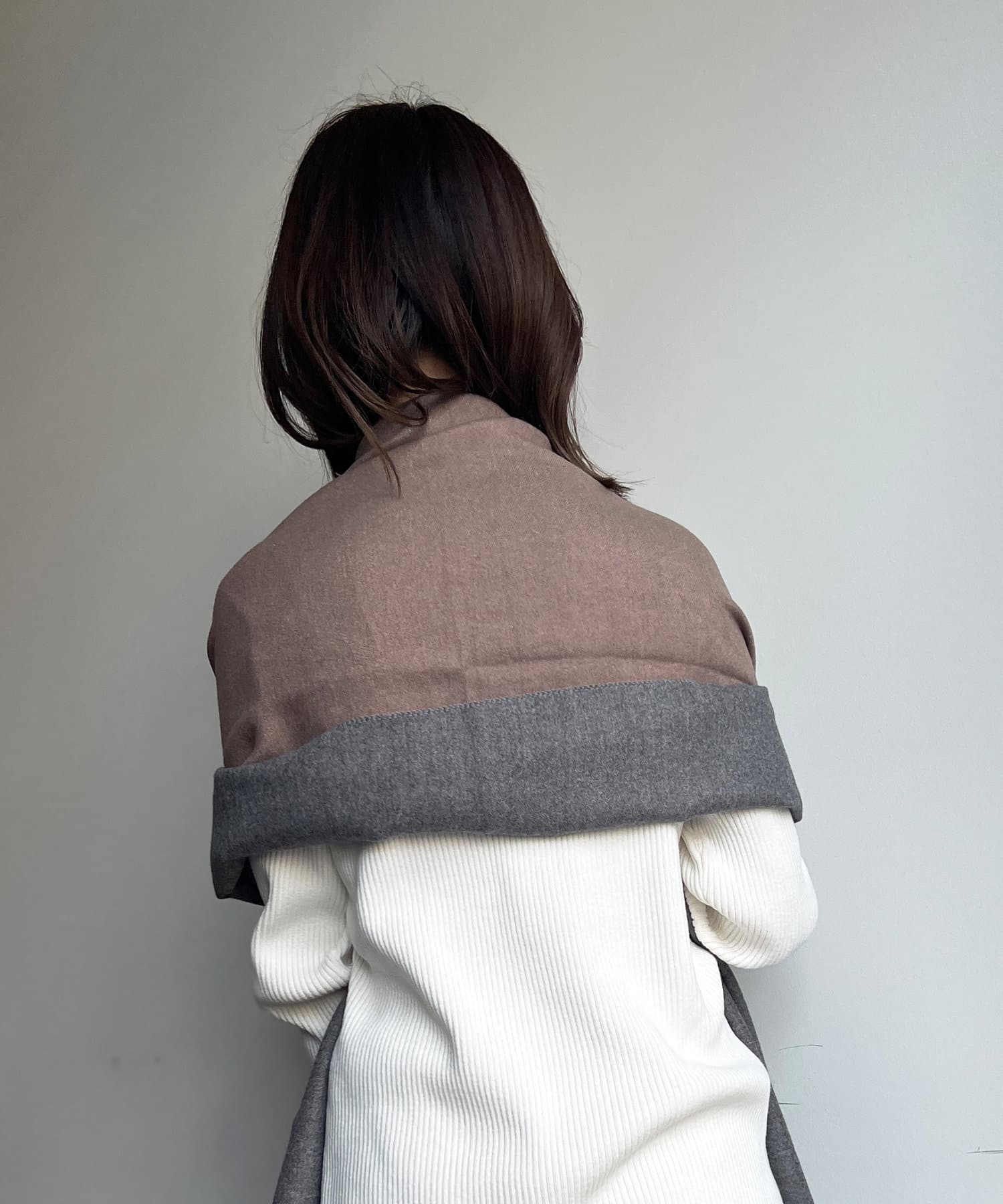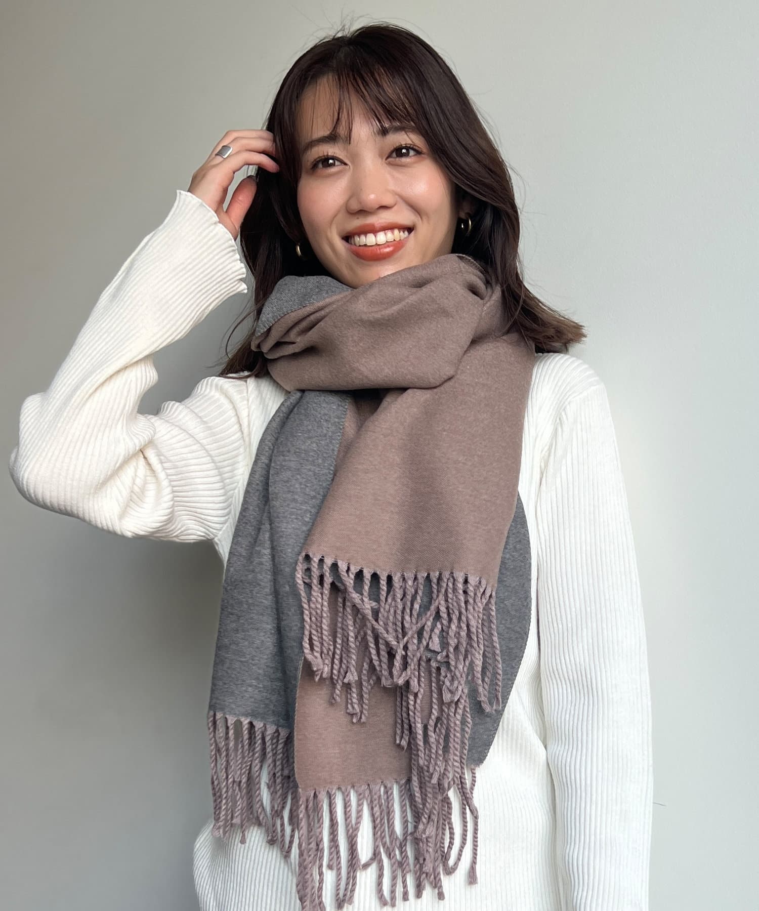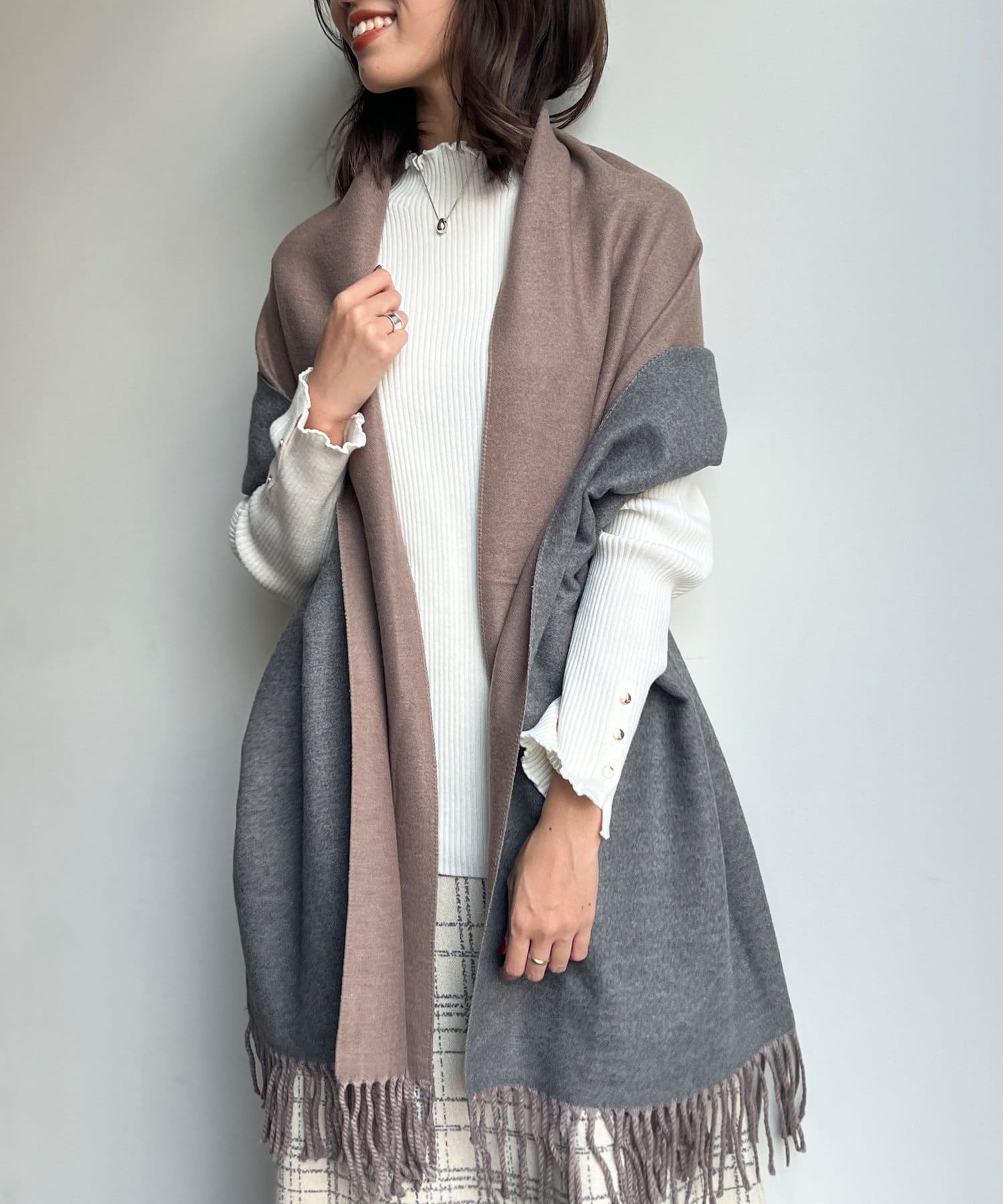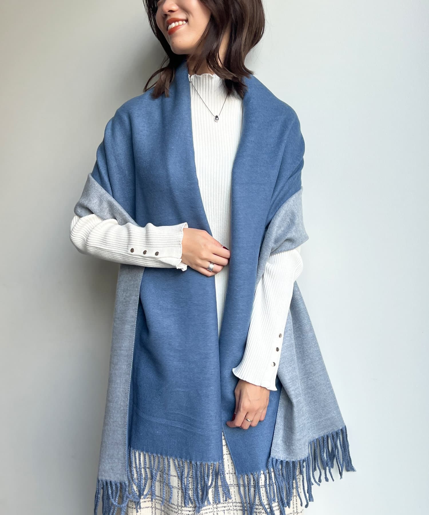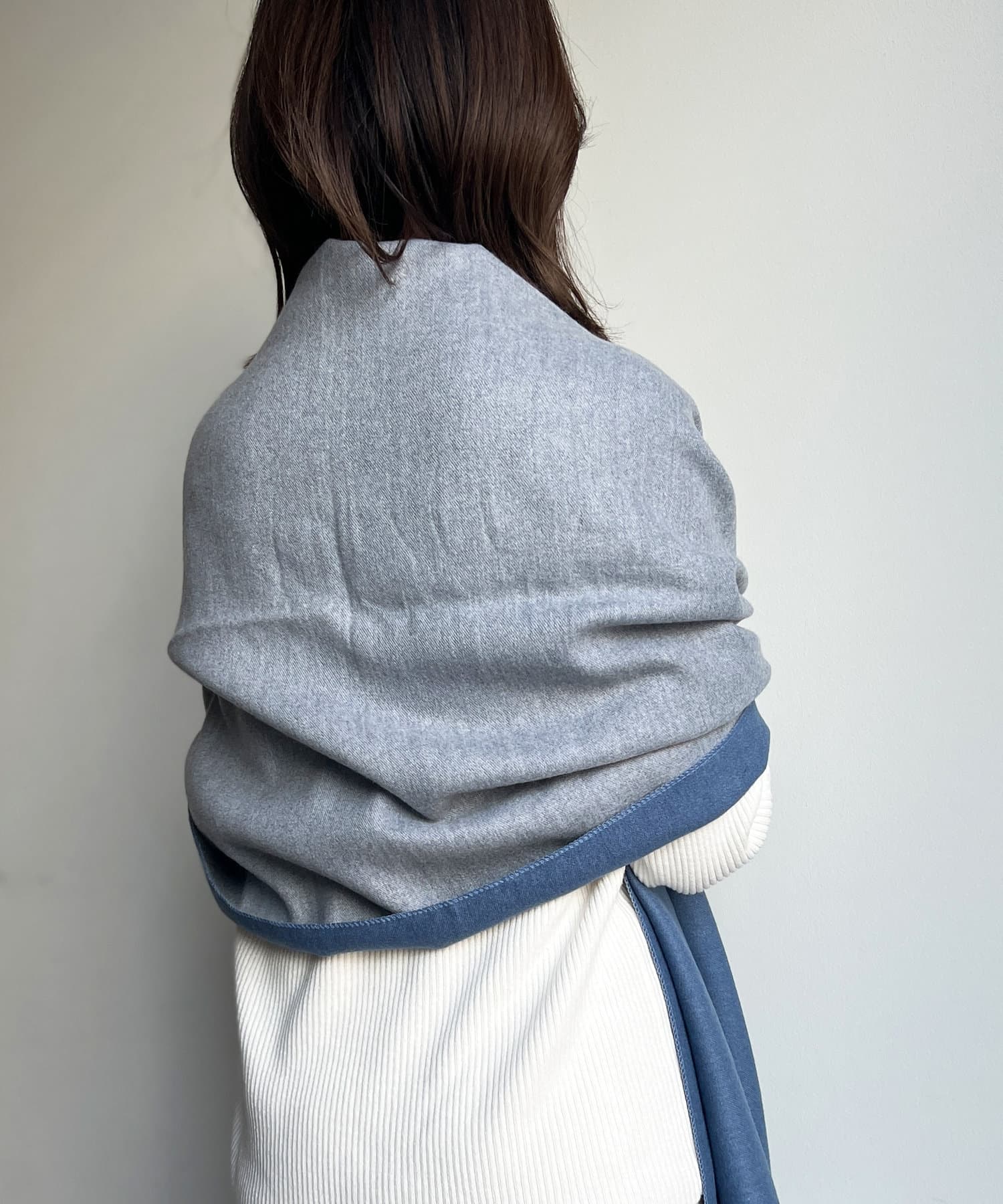 大きめサイズで程よくボリュームがありスタイリングのポイントにもひざ掛け代わりにもしやすい万能アイテムです。