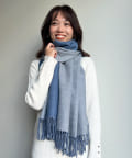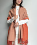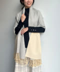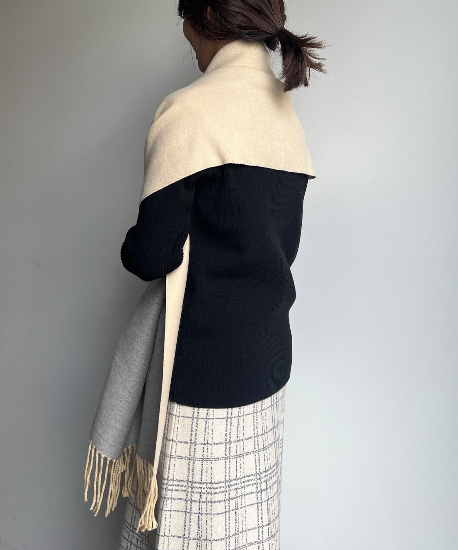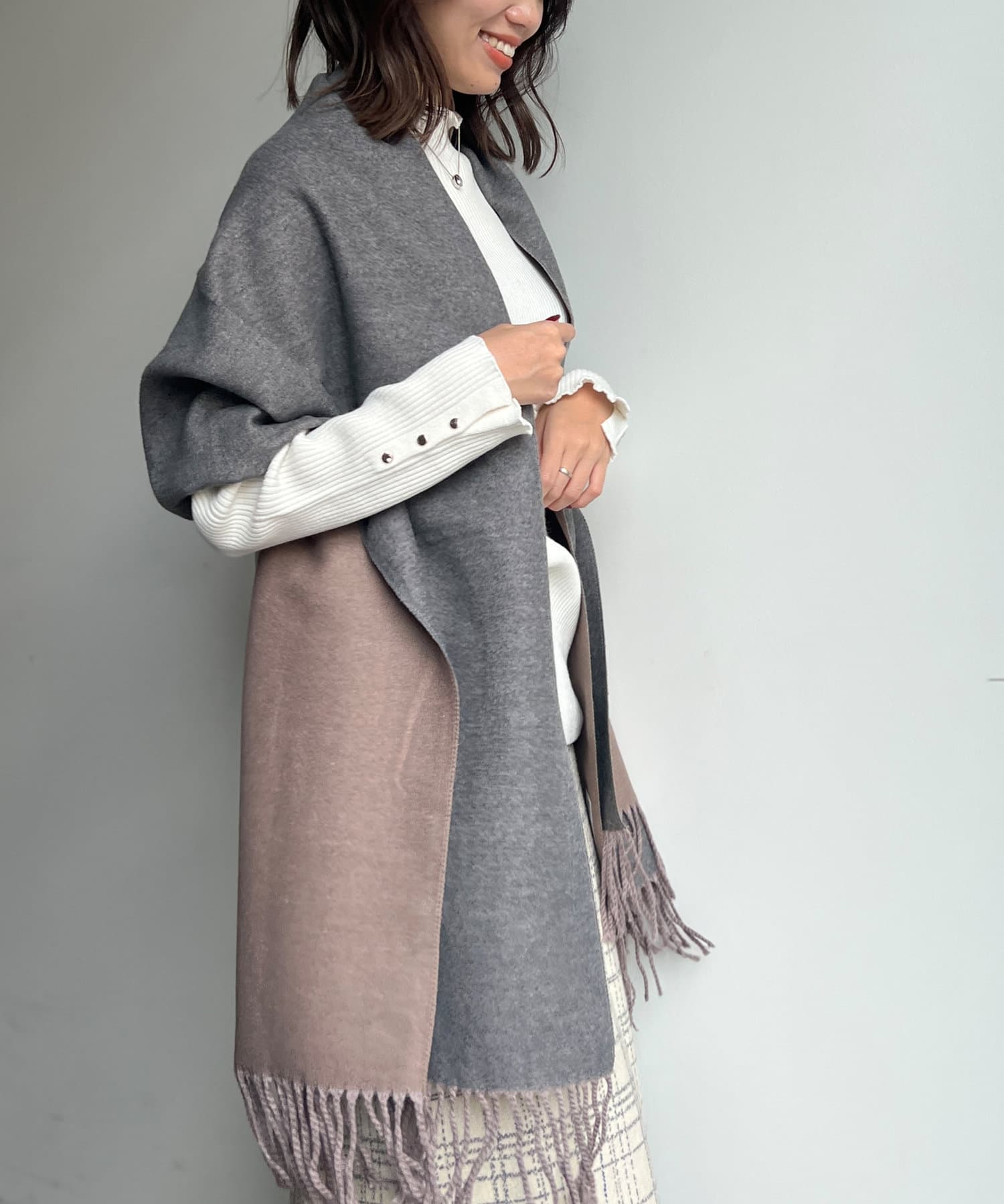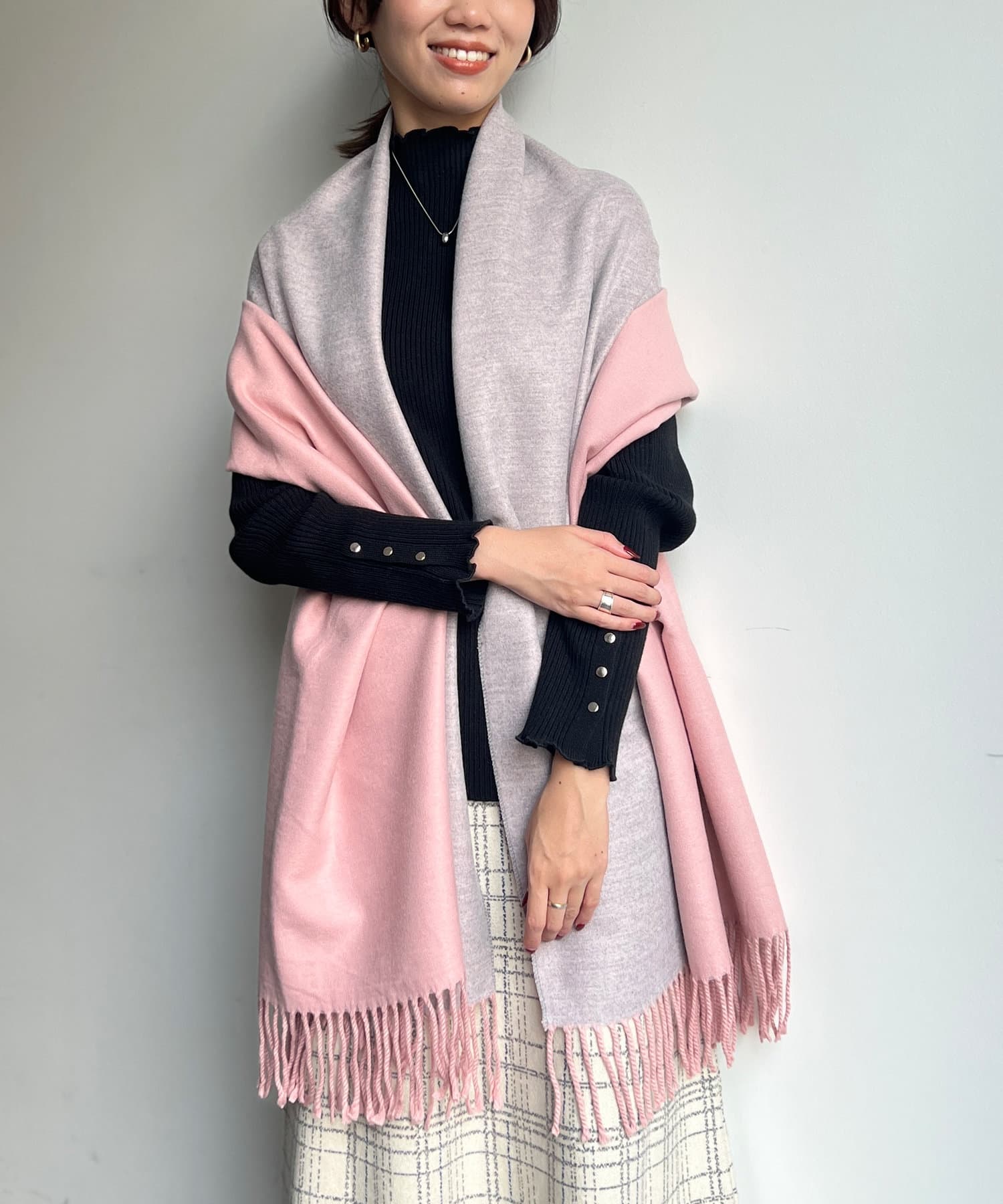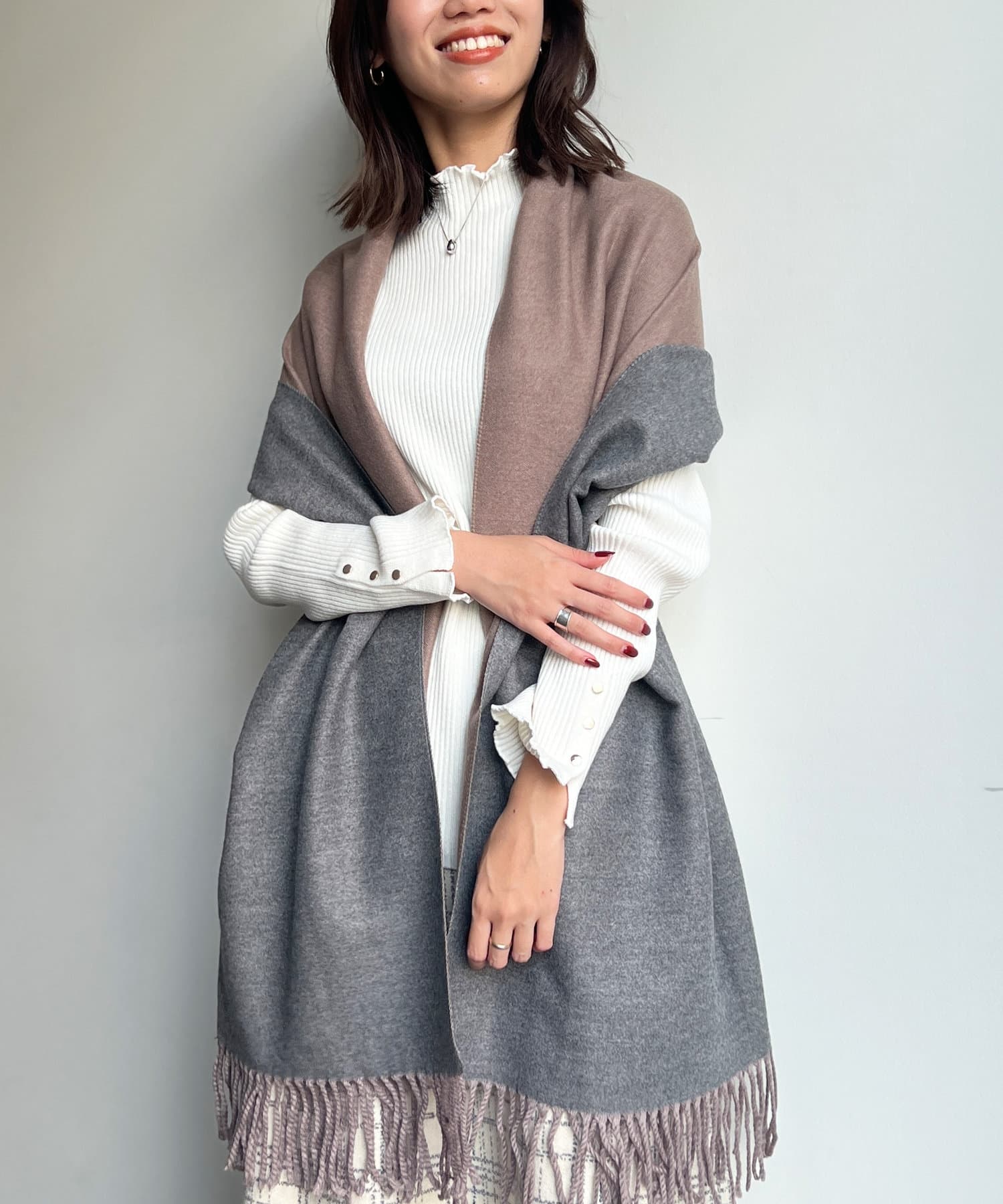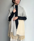 大きめサイズで程よくボリュームがありスタイリングのポイントにもひざ掛け代わりにもしやすい万能アイテムです。