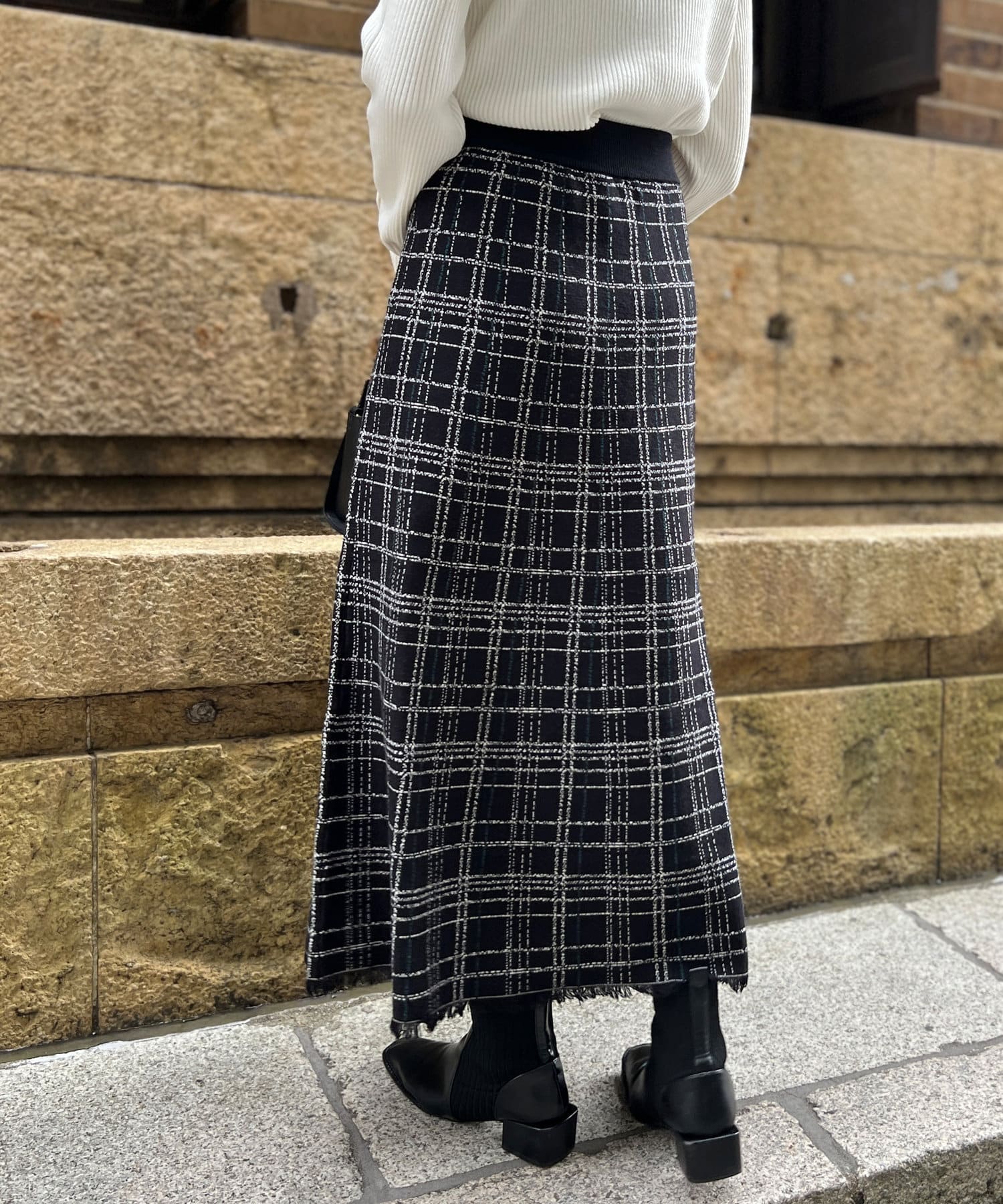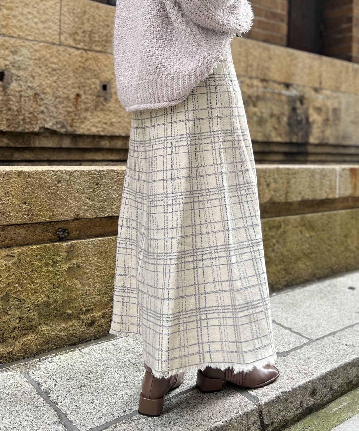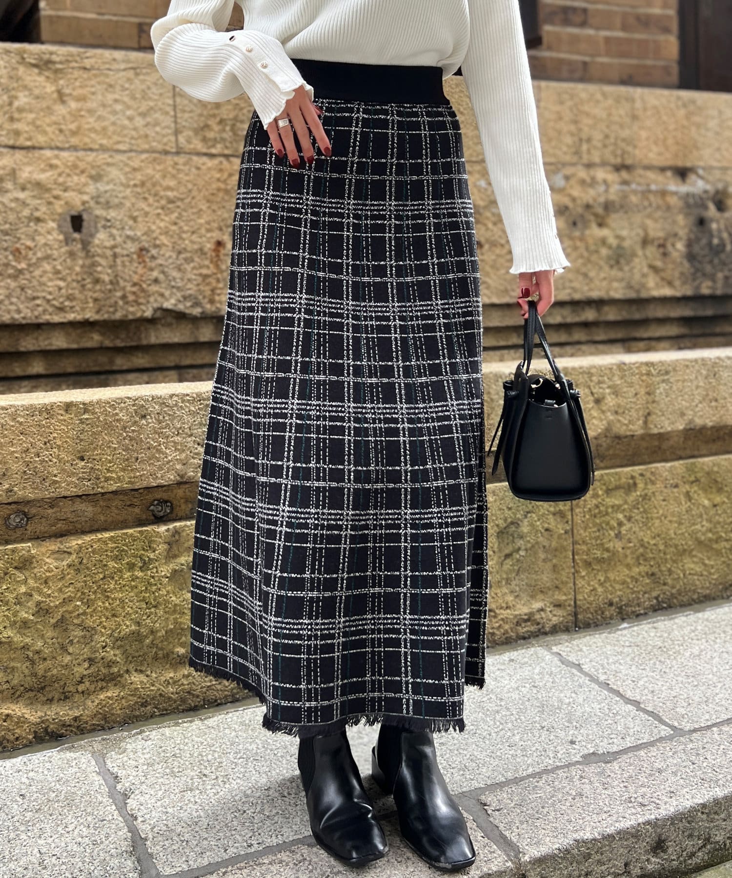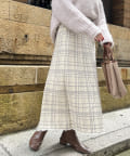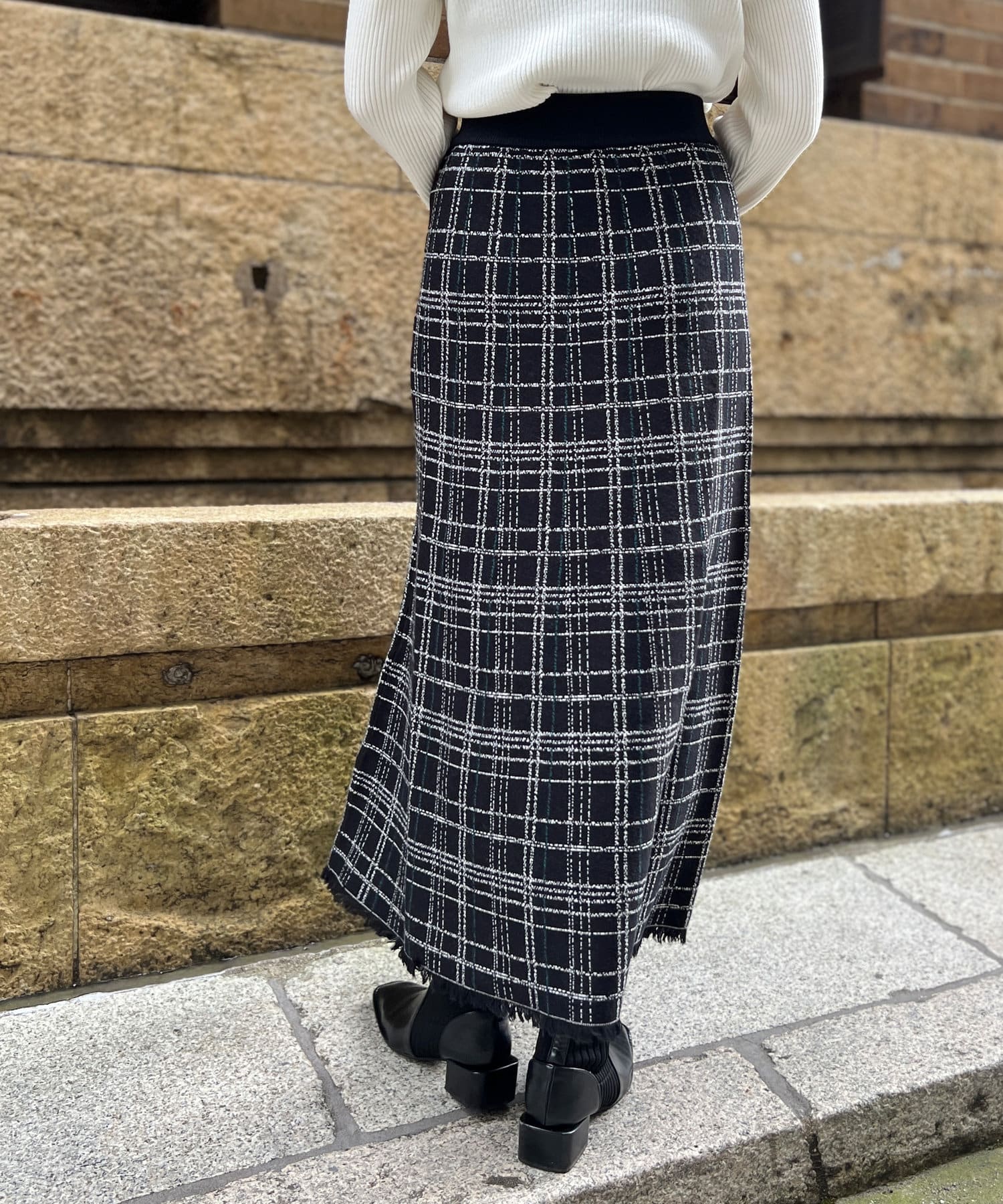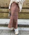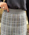 裾フリンジチェックニットスカート