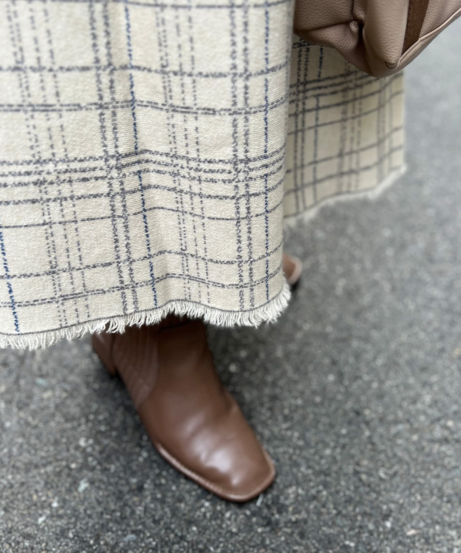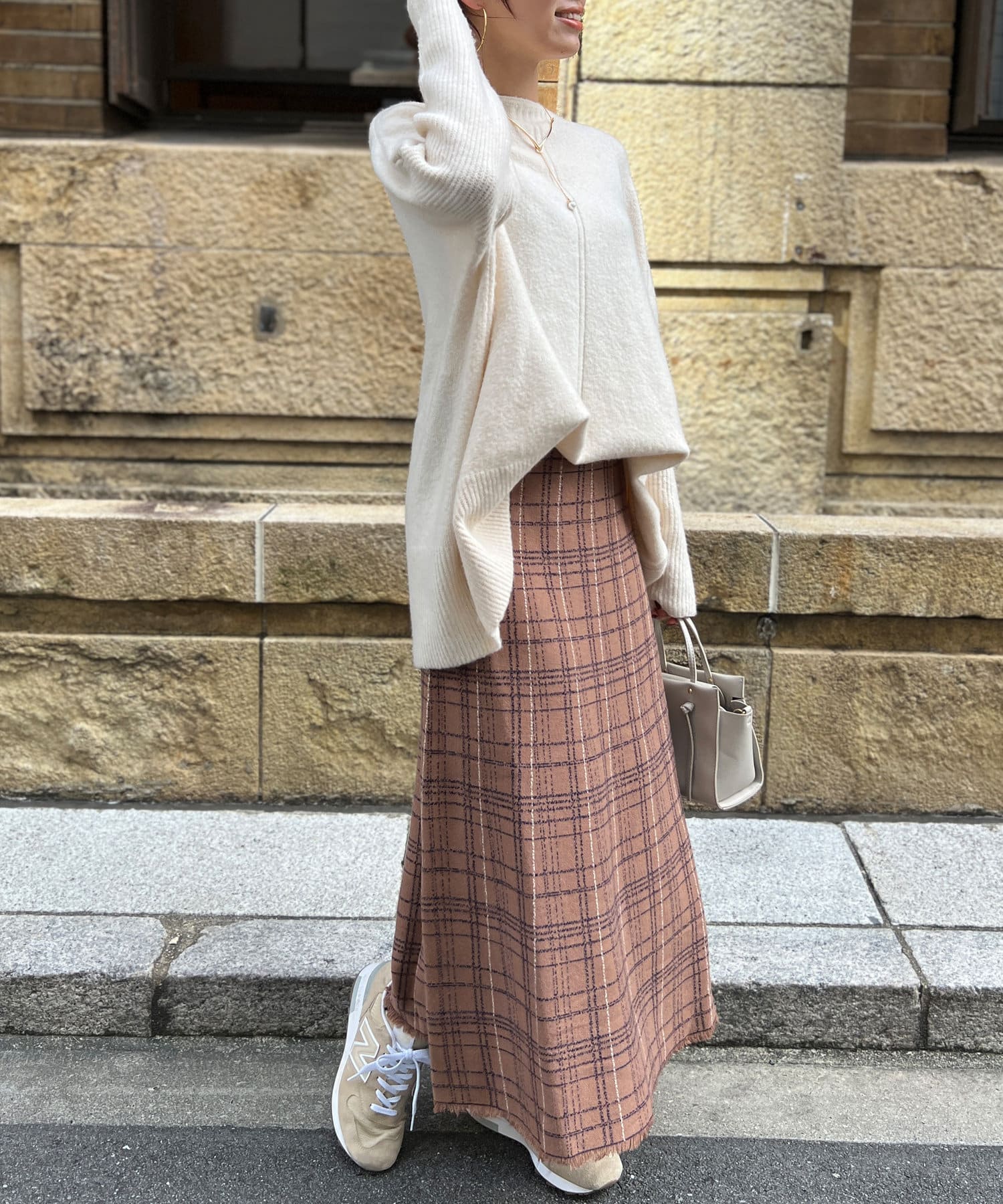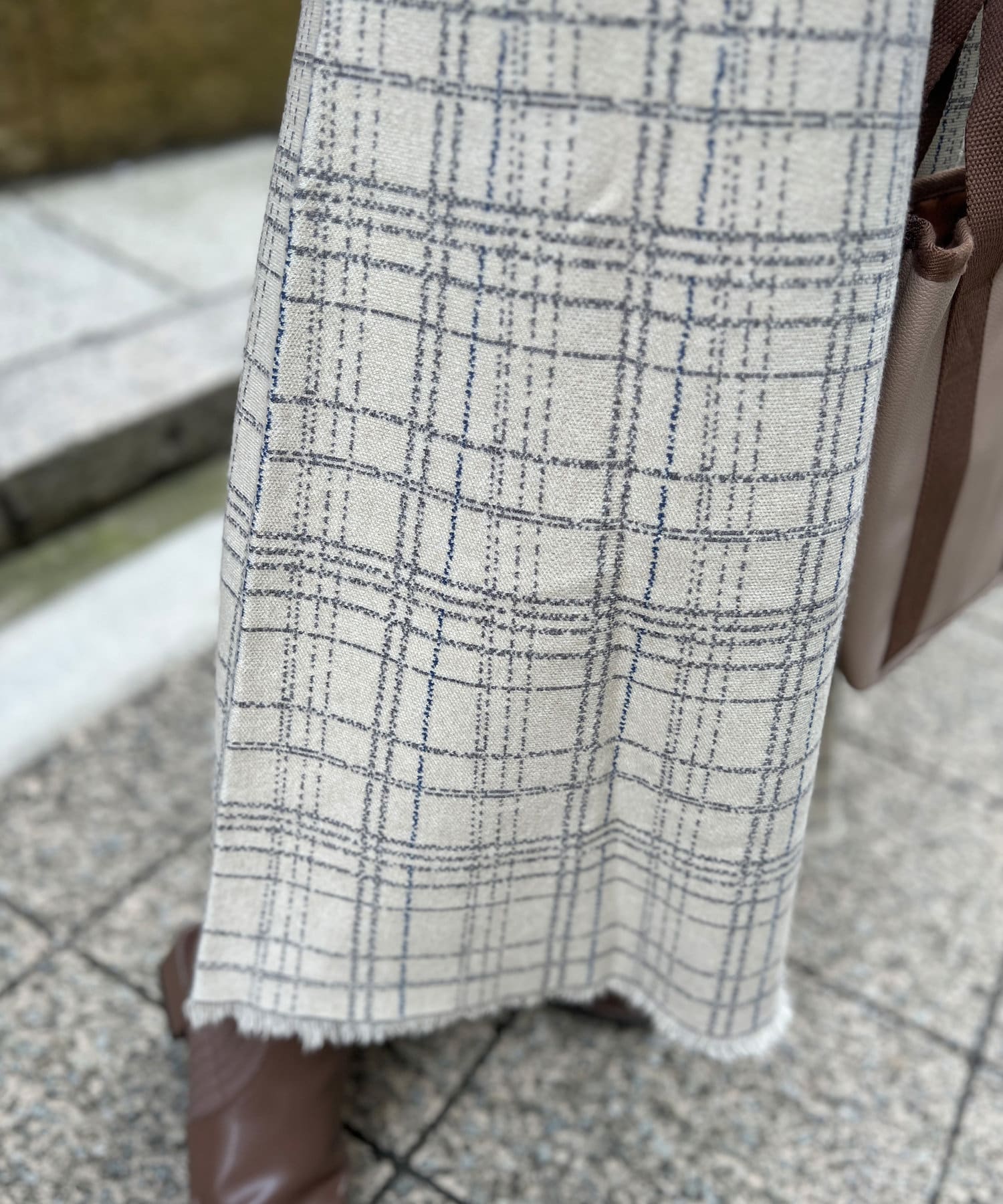 ・チェック柄に繊細なかすれ加工を施すことで、カジュアルになり過ぎない大人フェミニンな印象に。