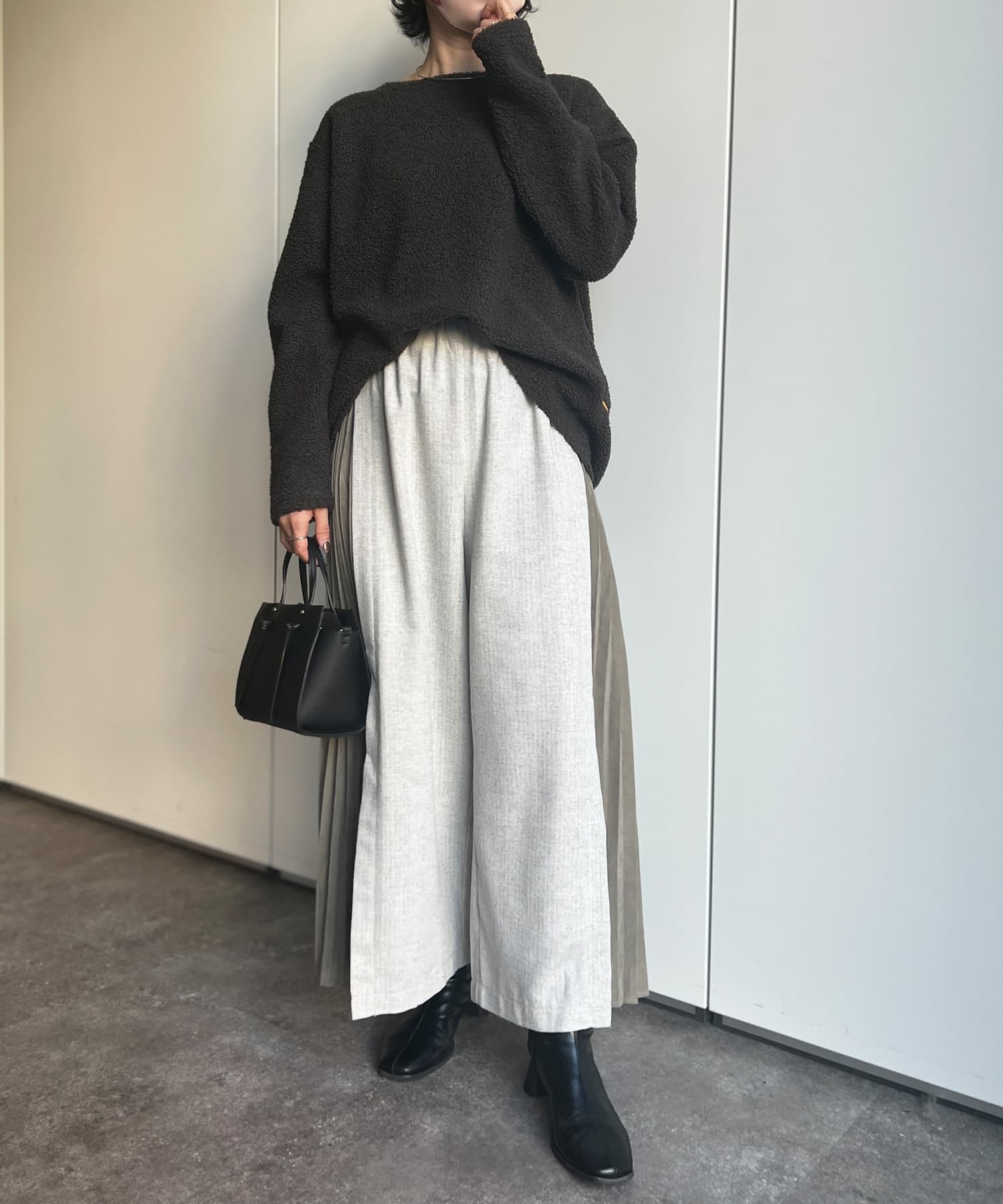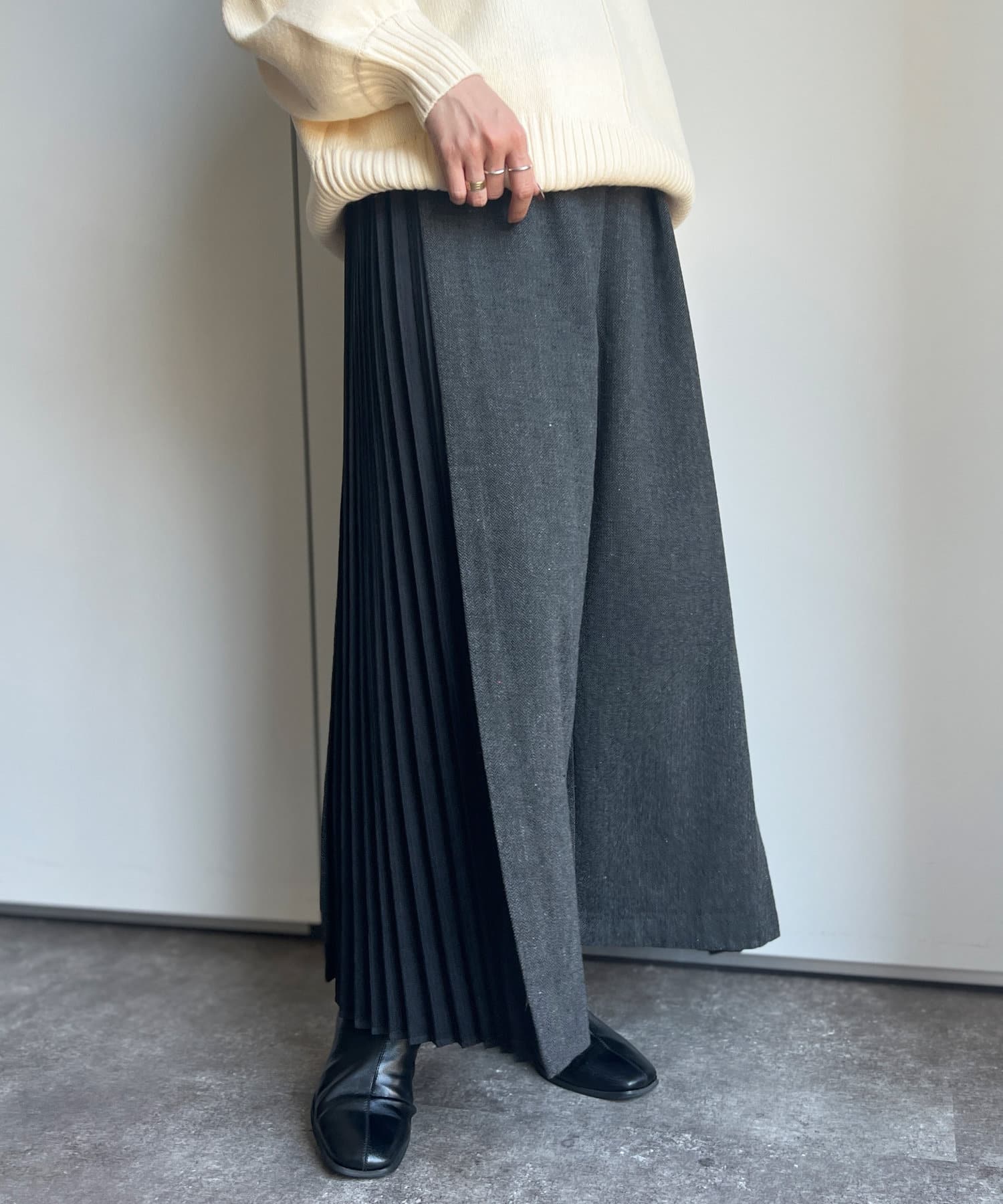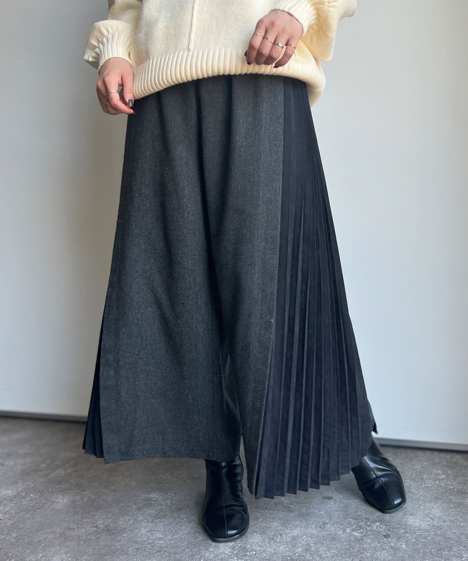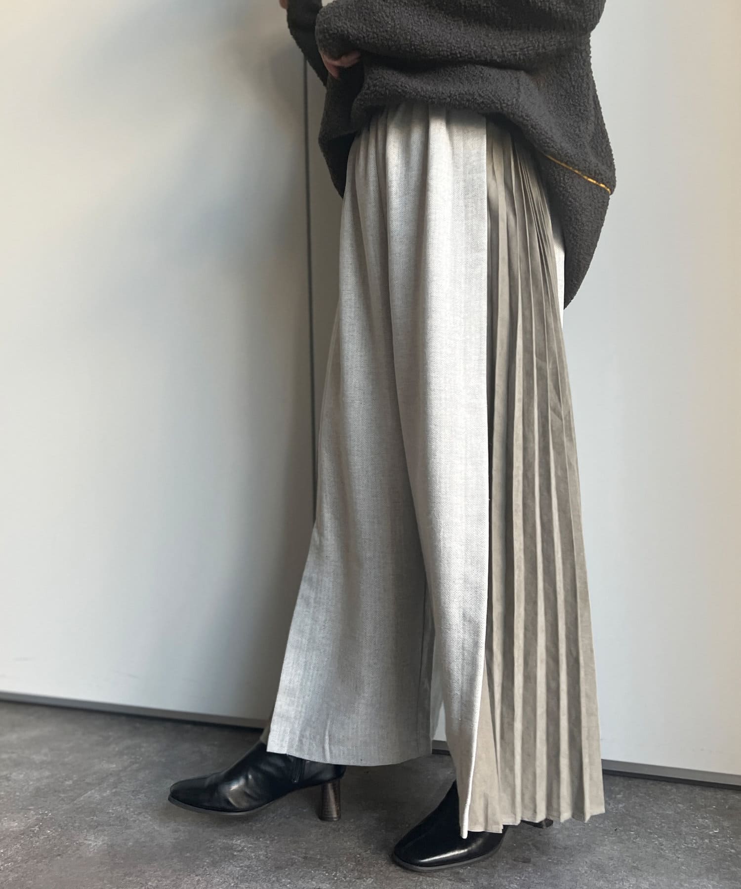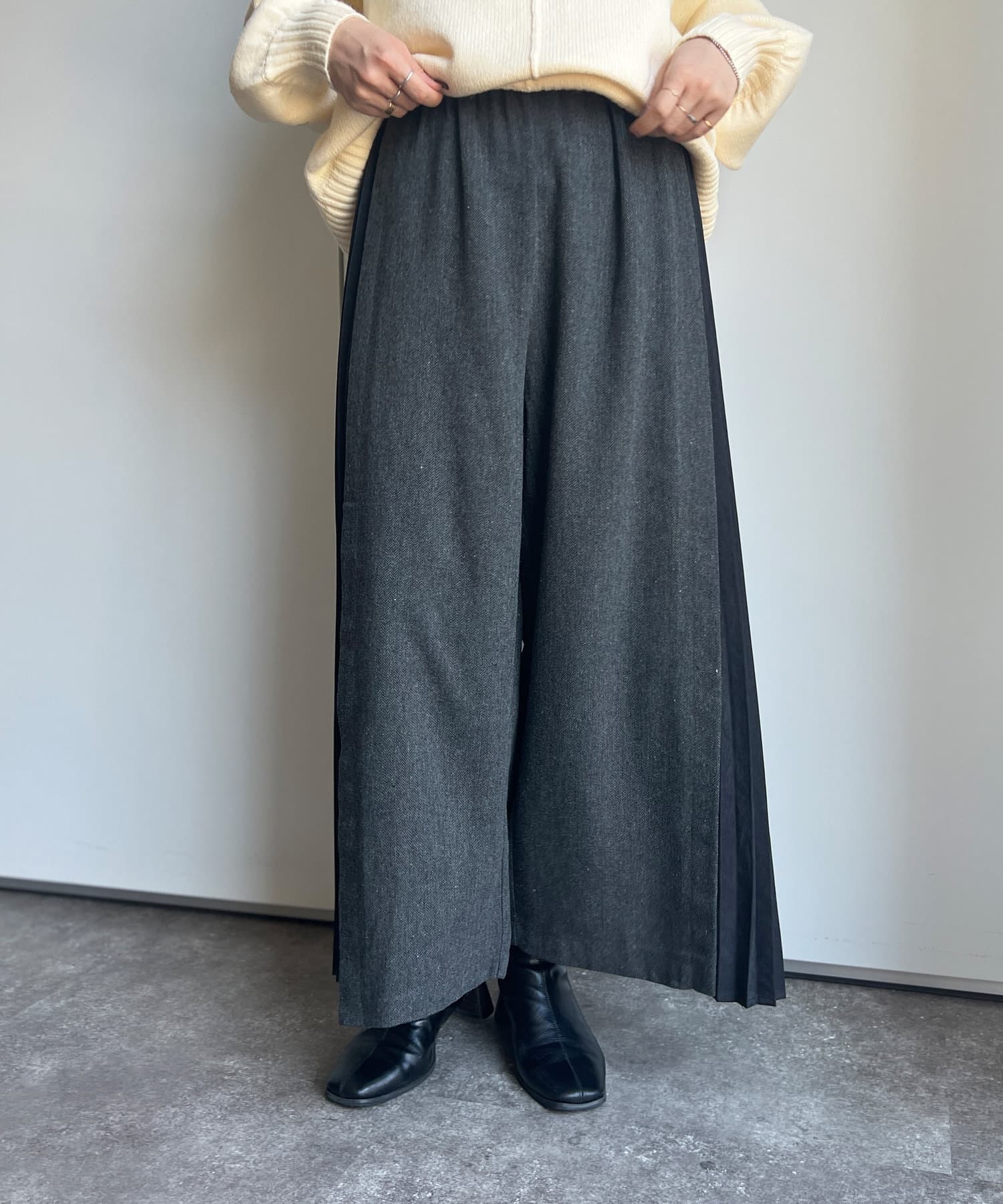 ヘリンボーンサイドプリーツワイドパンツ
