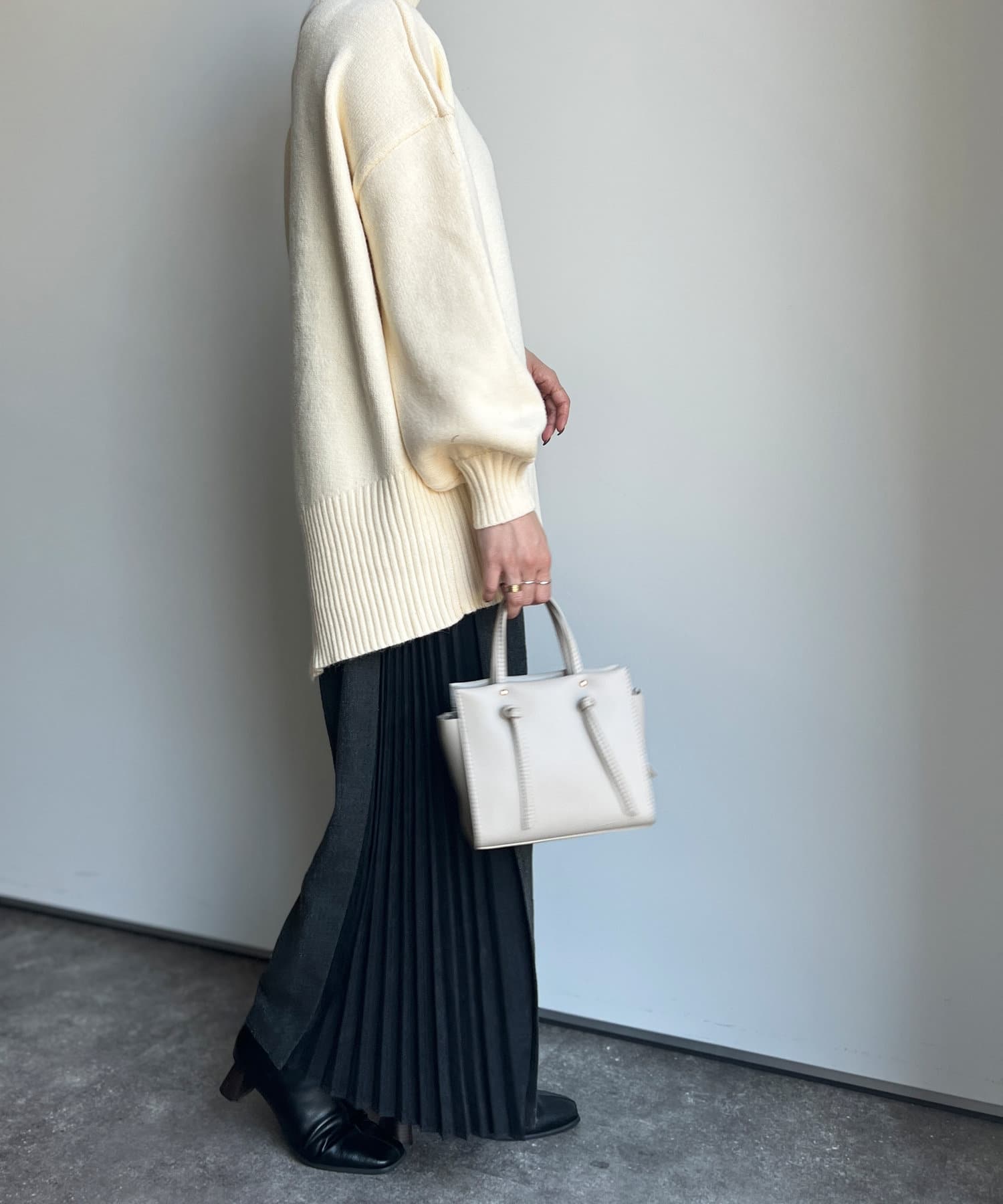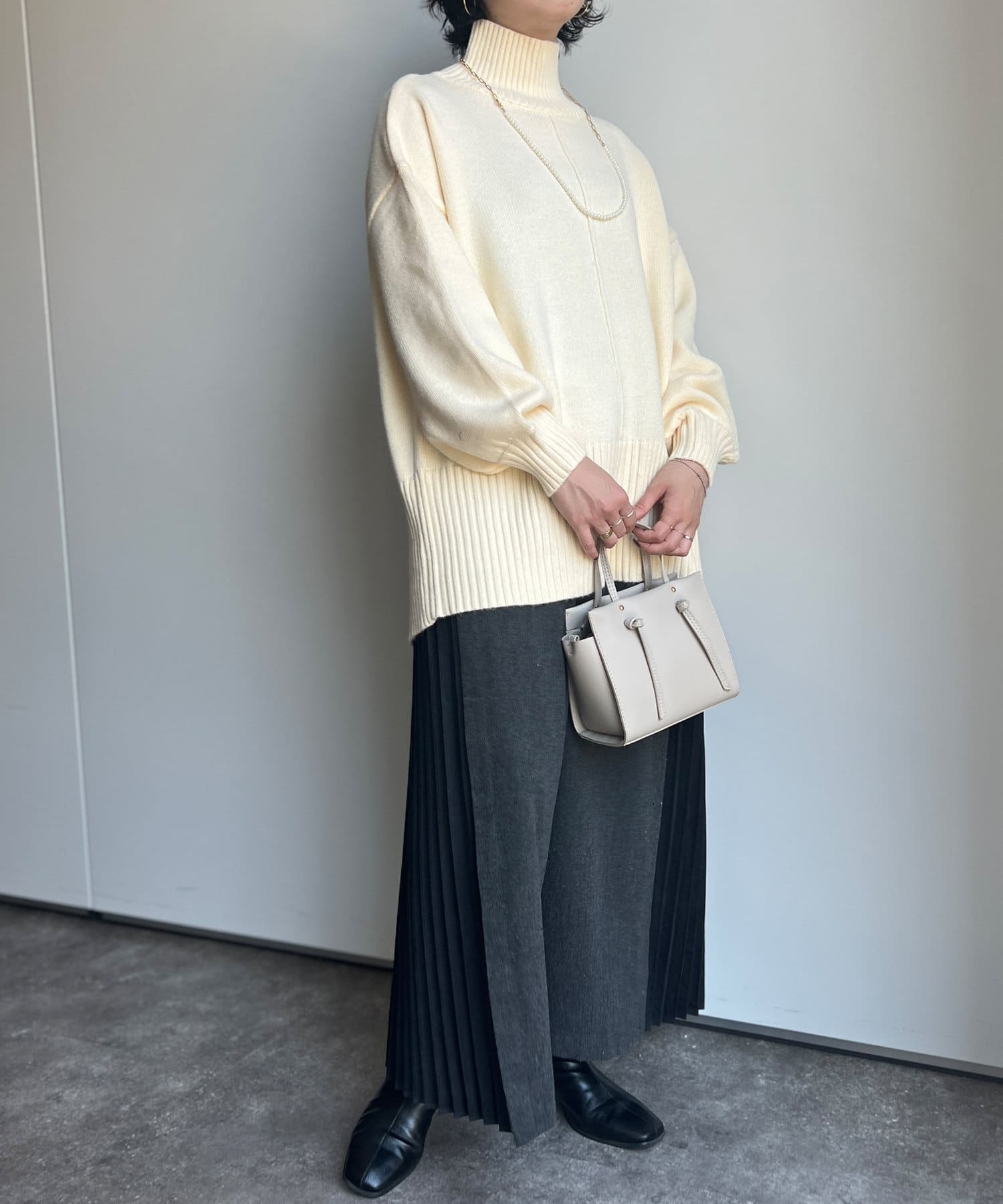 ニットやスウェットなど幅広いテイストで合わせていただけます。