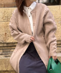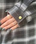 1枚でパンツやスカートと合わせたベーシックスタイルでも、ゴールドのボタンがアクセントになります。