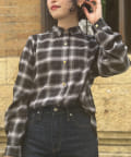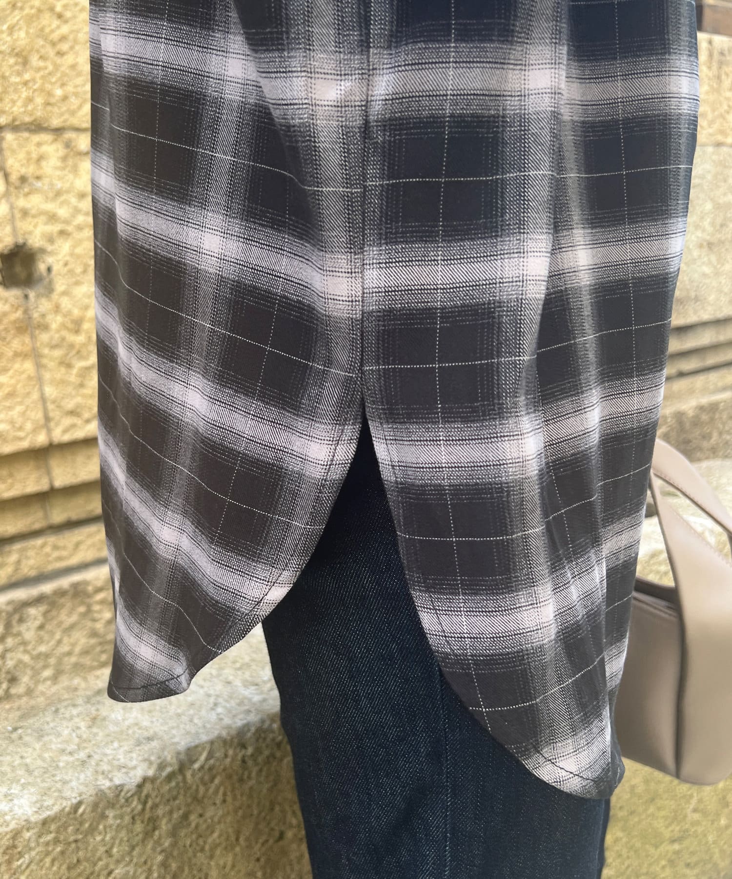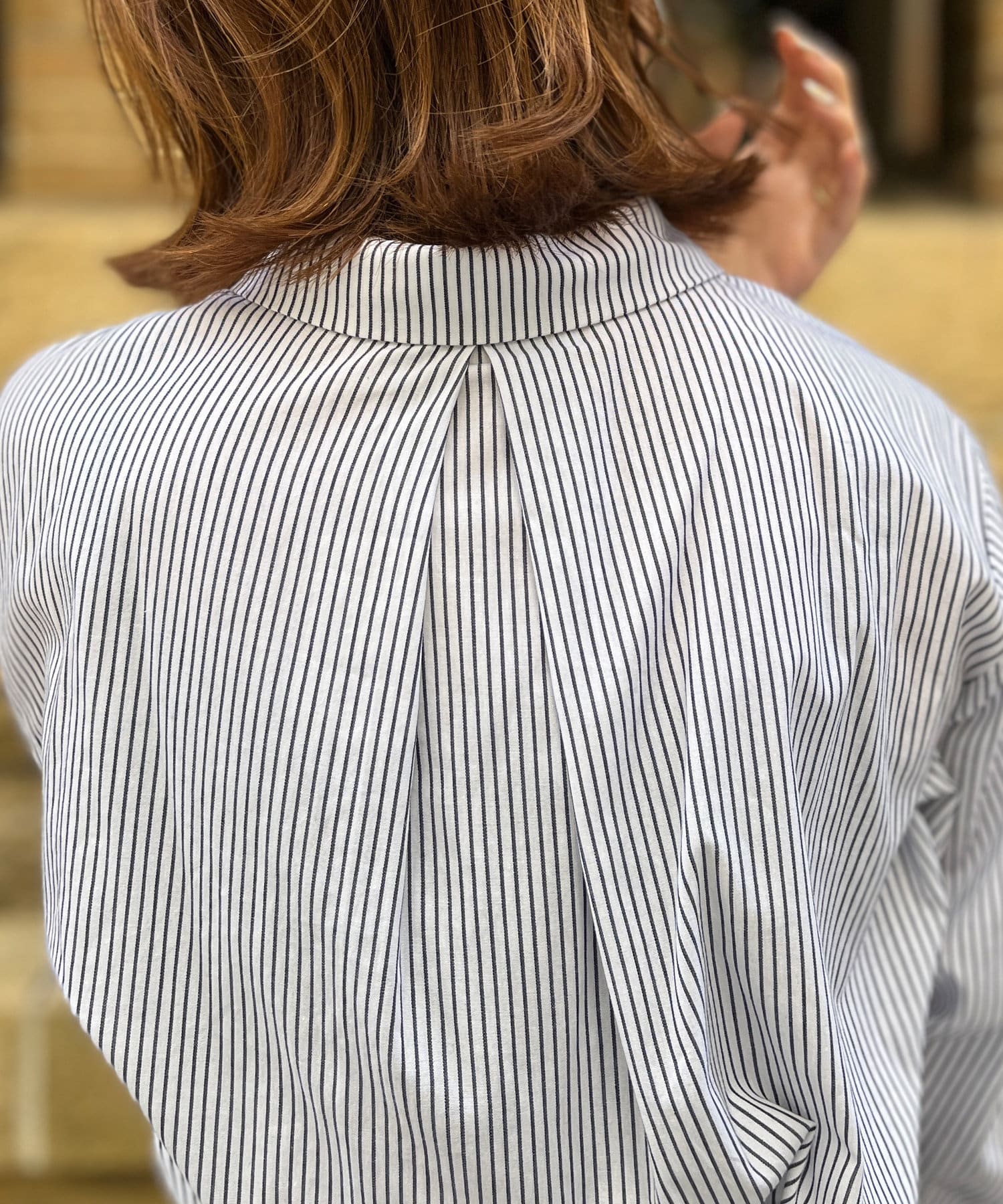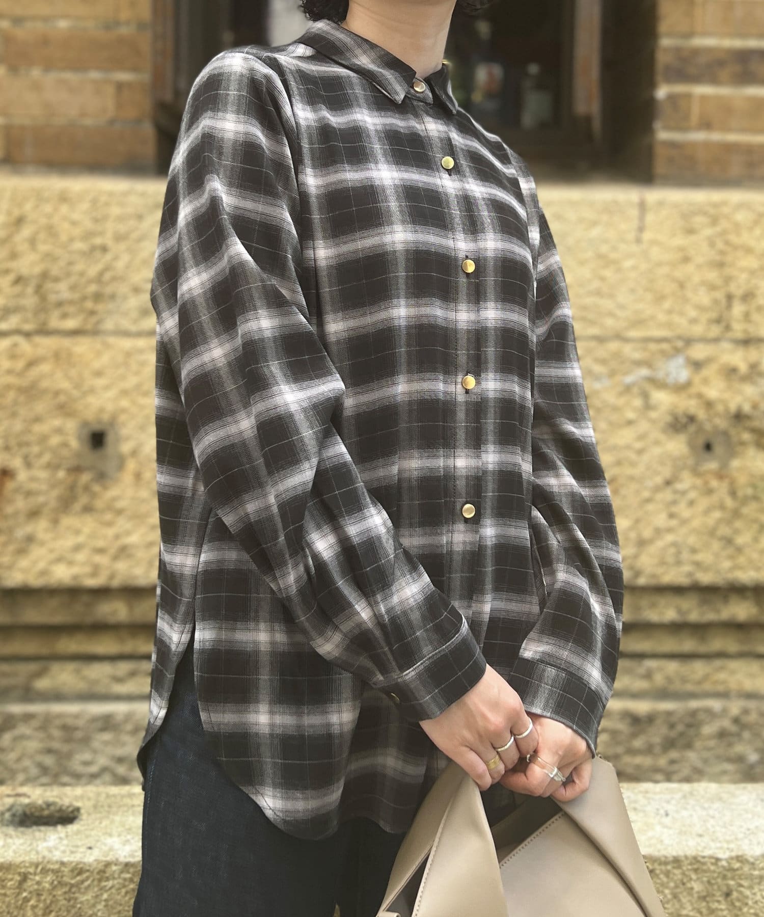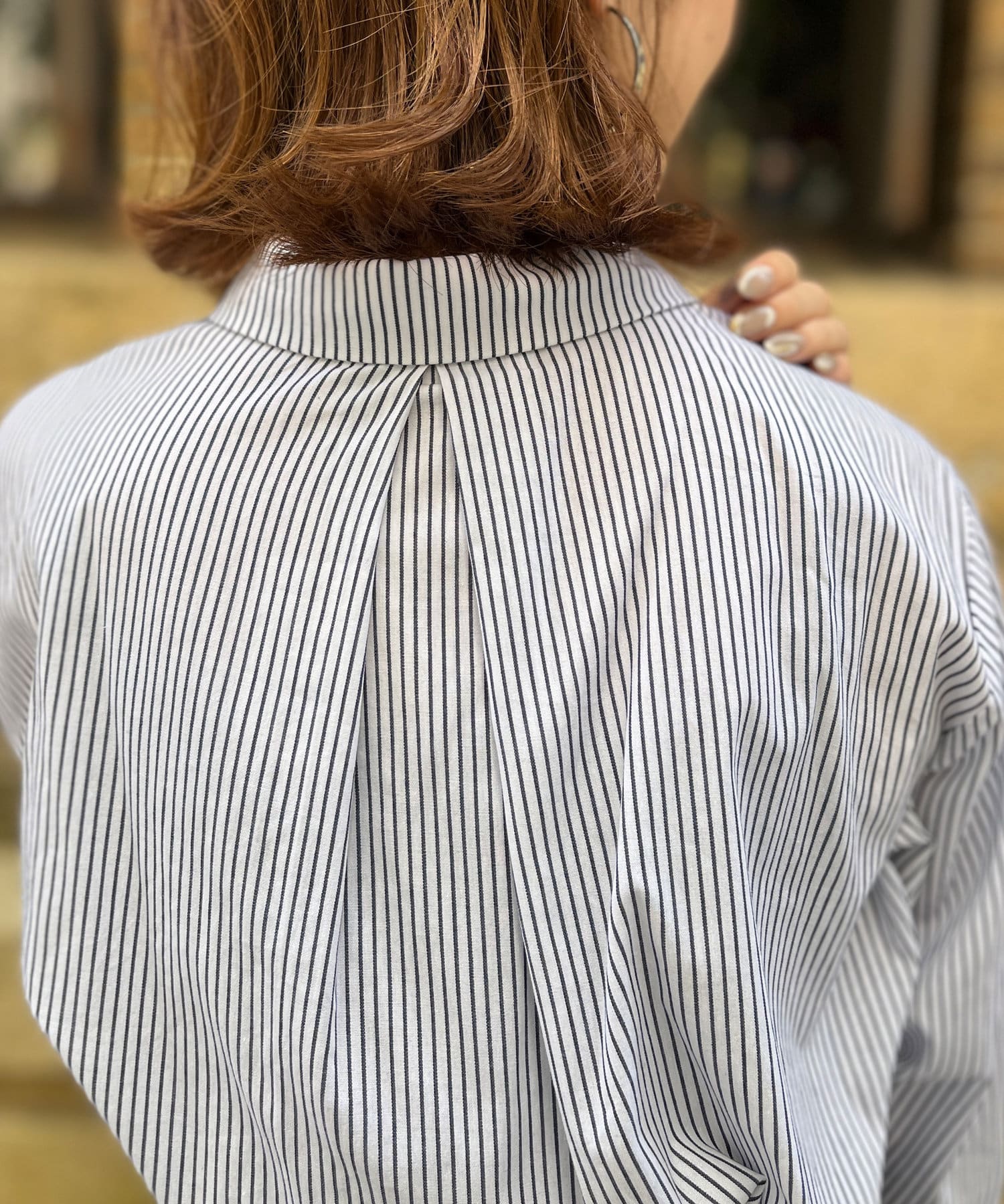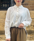 サイドのラウンドデザインが効いた大人シャツブラウス