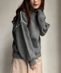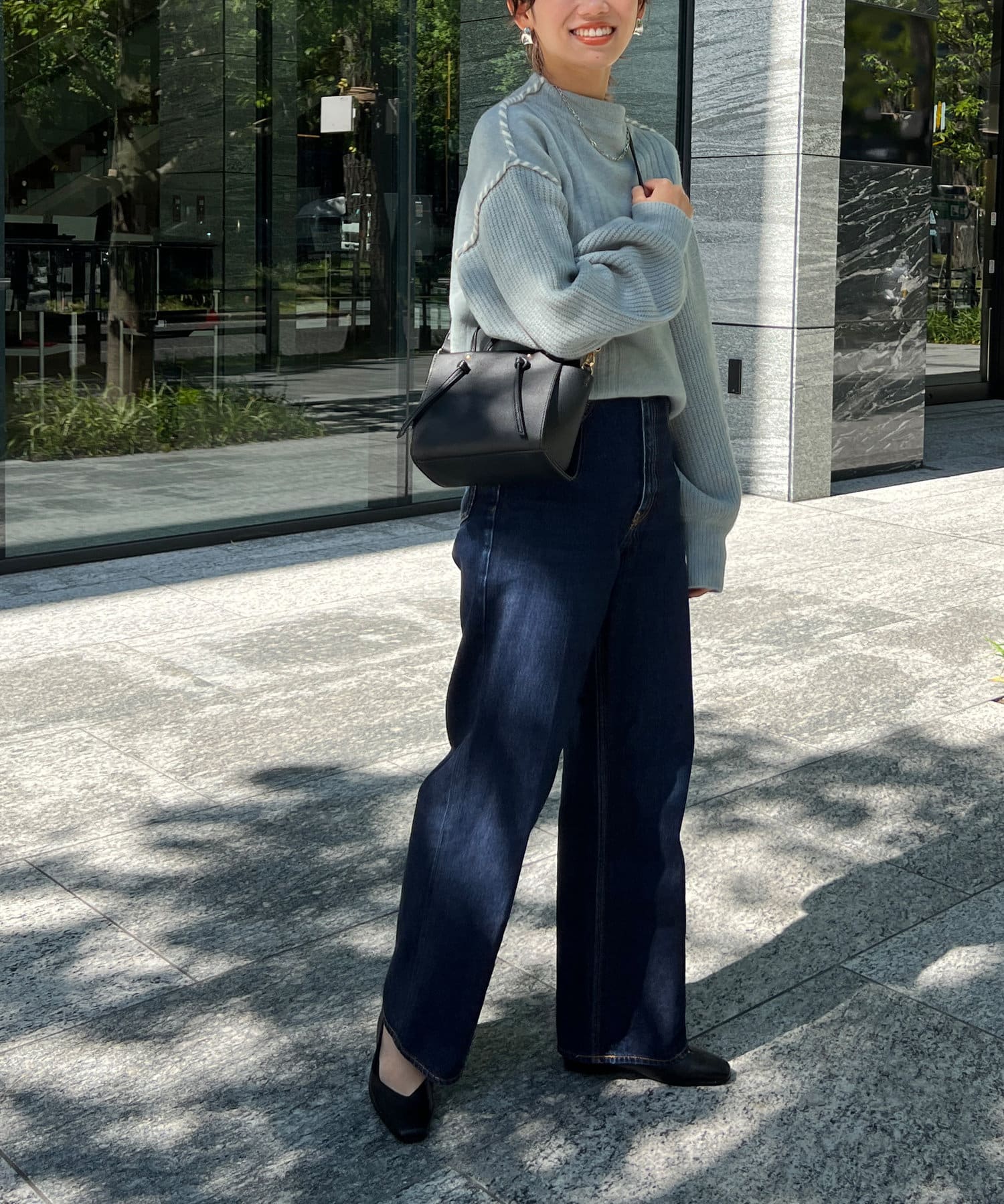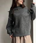 ・体のラインを拾わないゆったりとしたサイズ感が大人可愛いニットです。