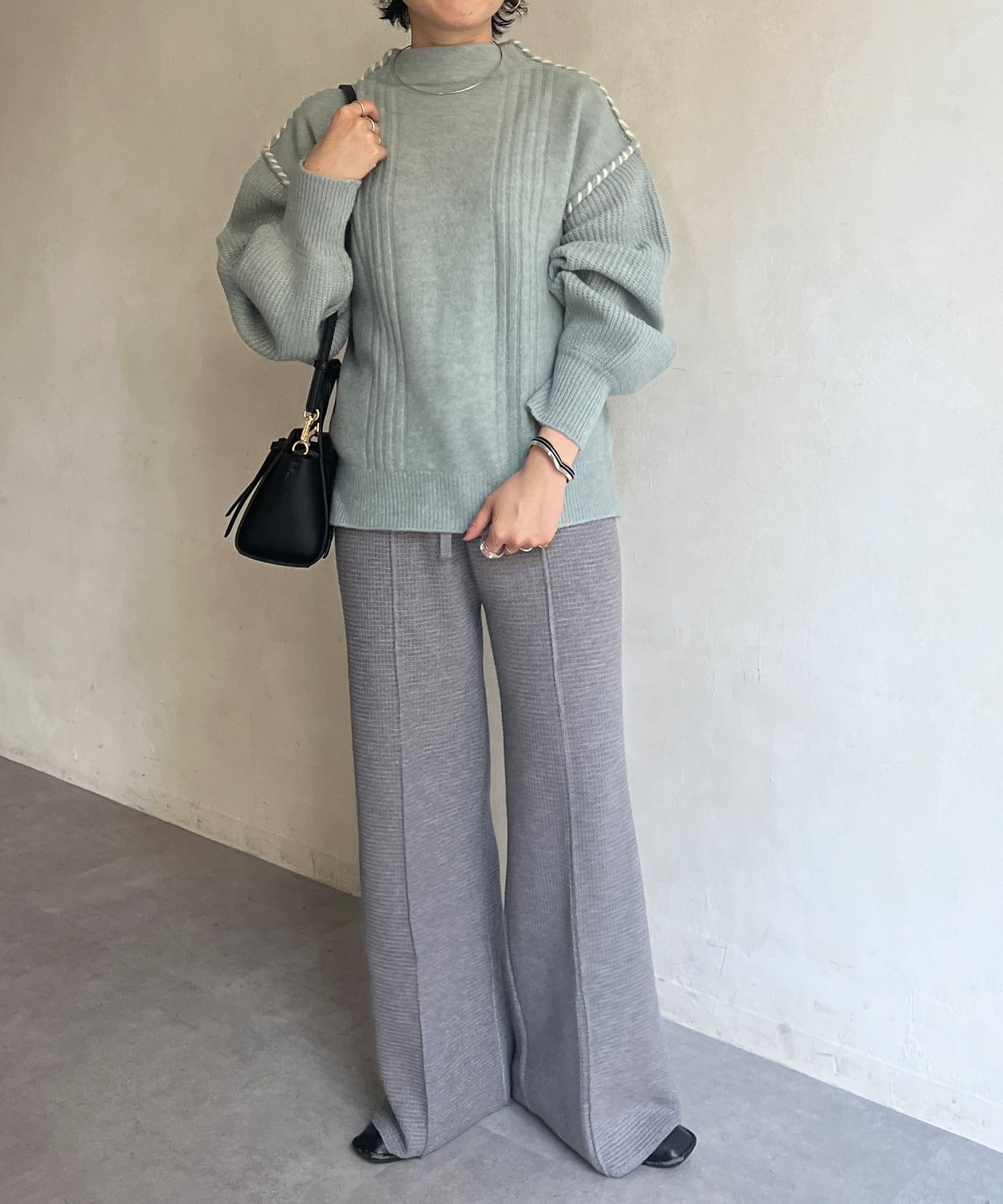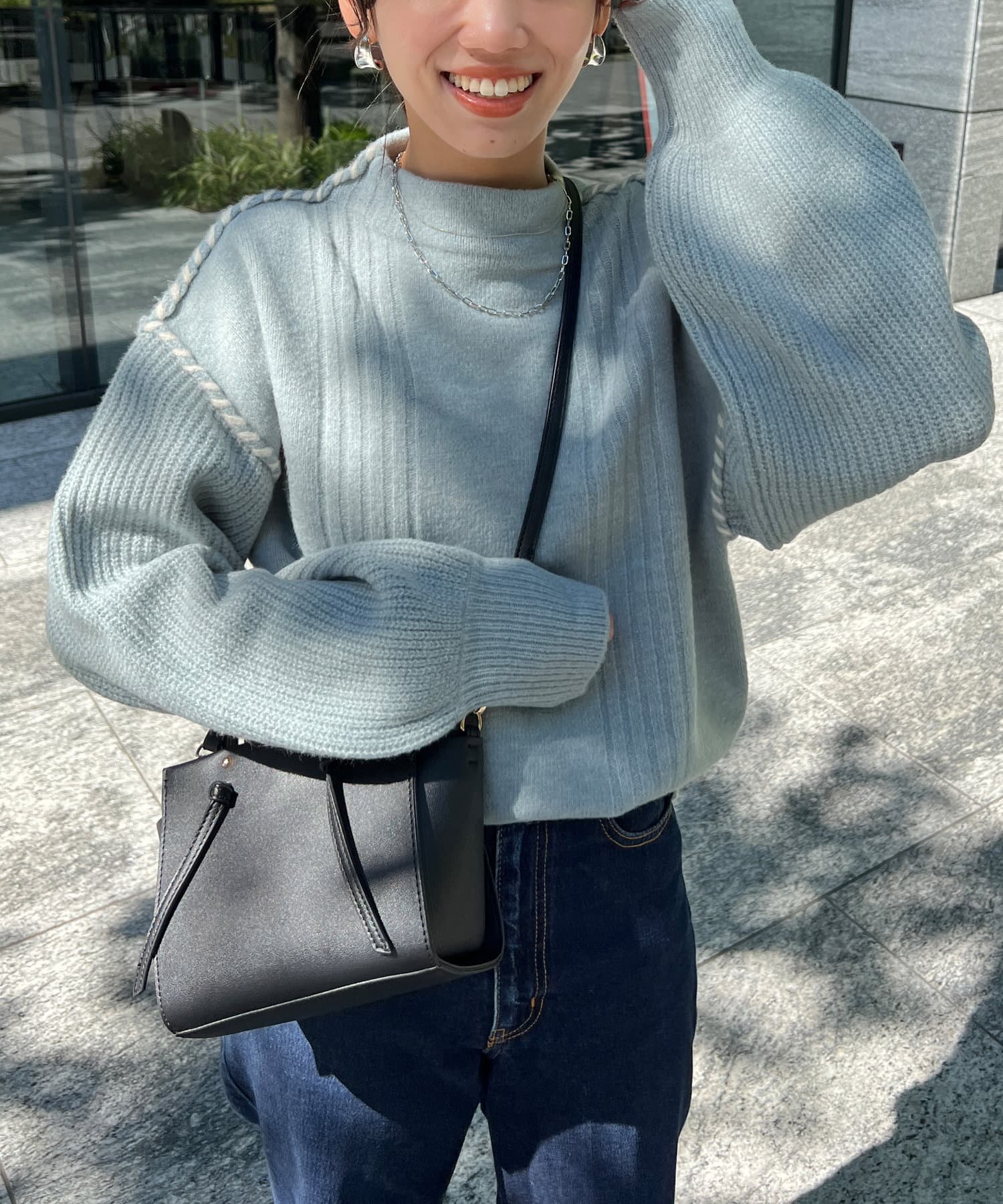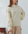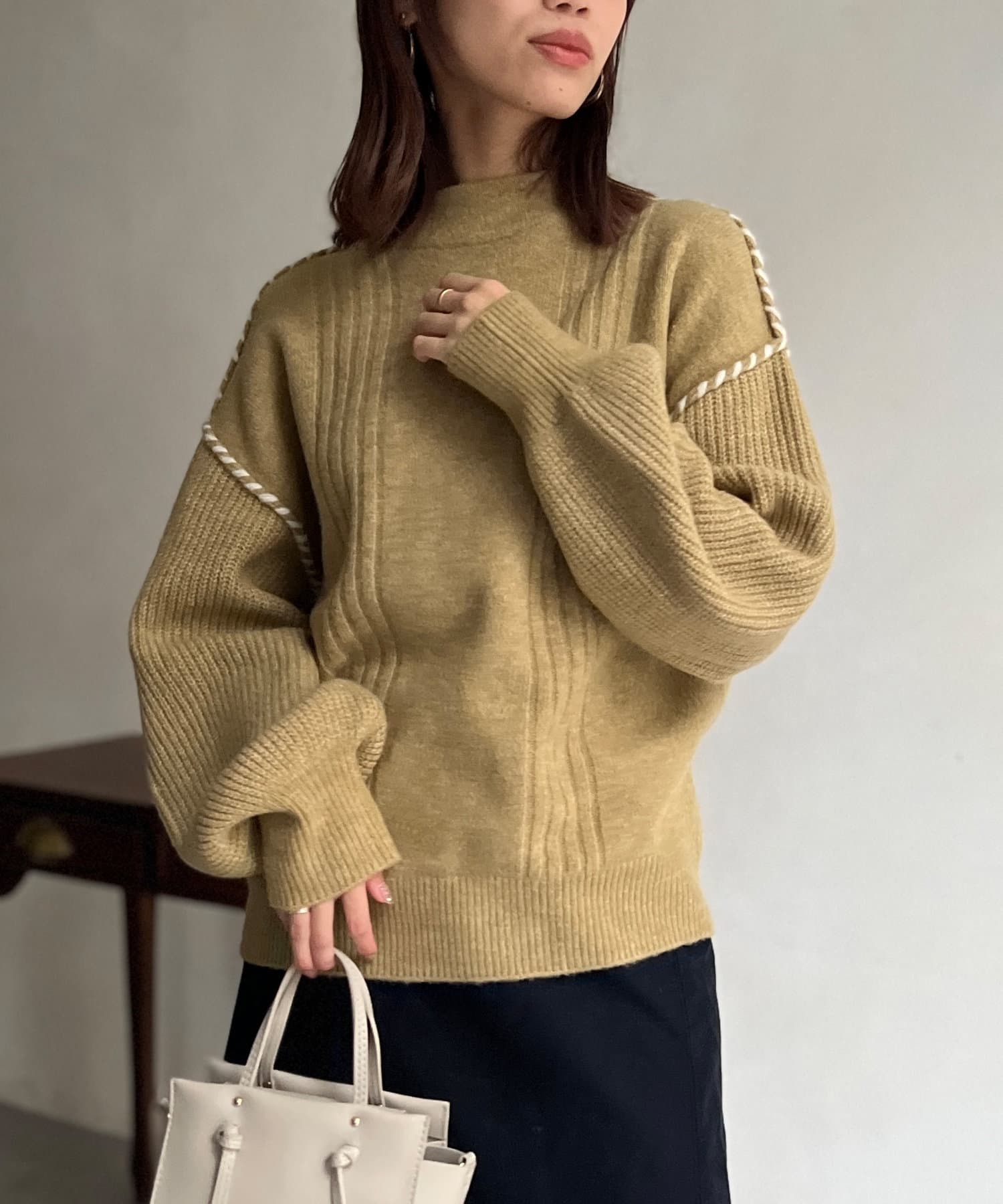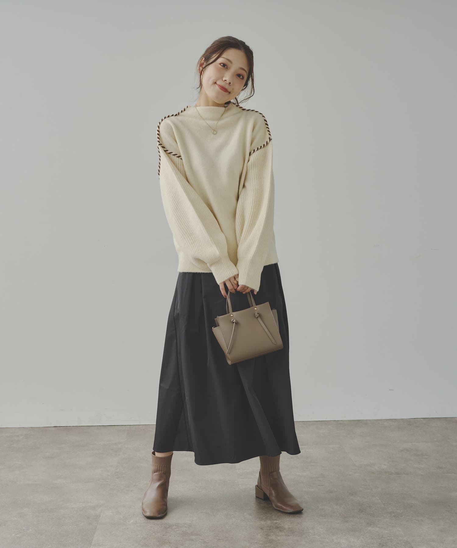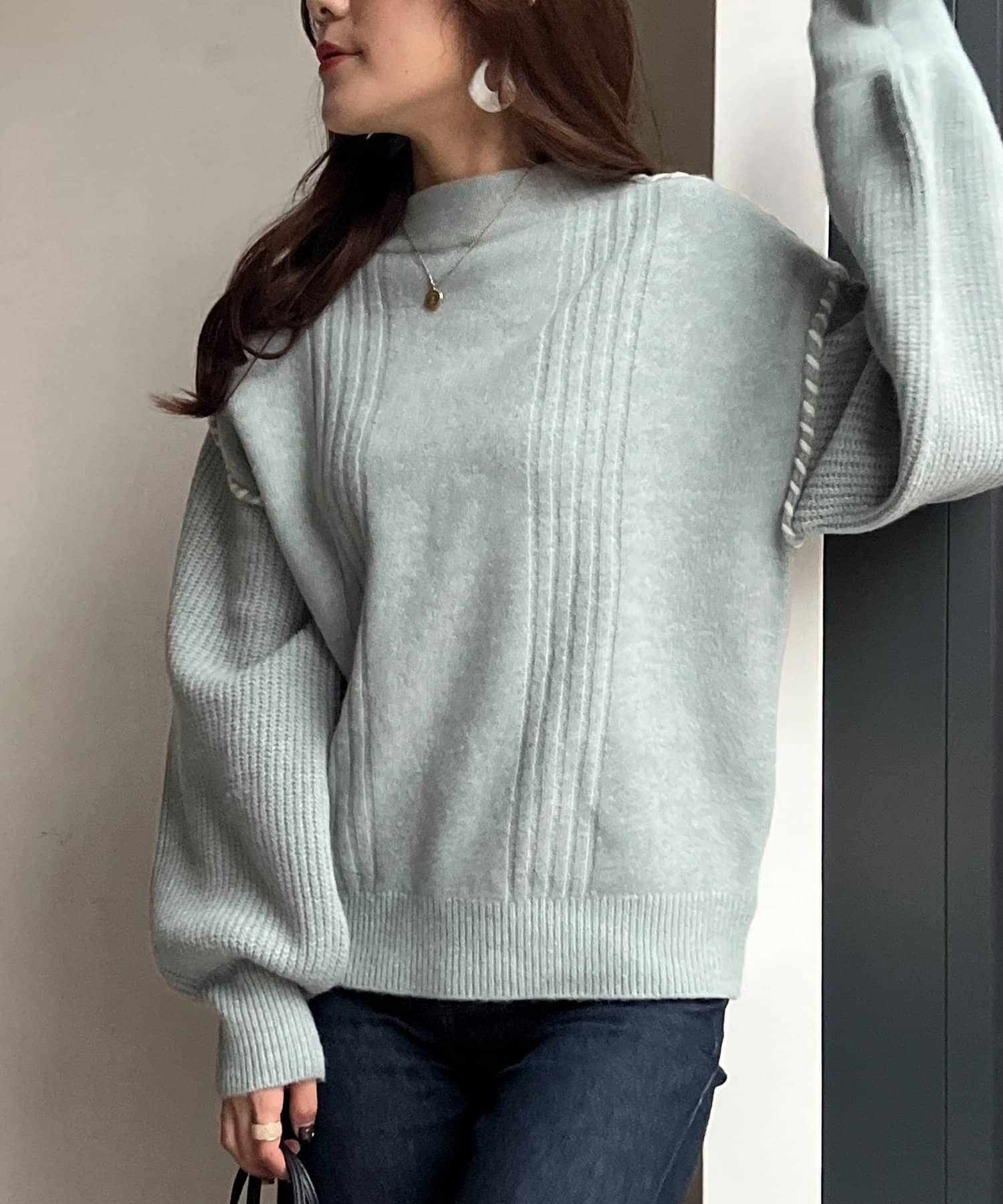 ・トレンドの配色ステッチが施されたざっくりシルエットのニット。