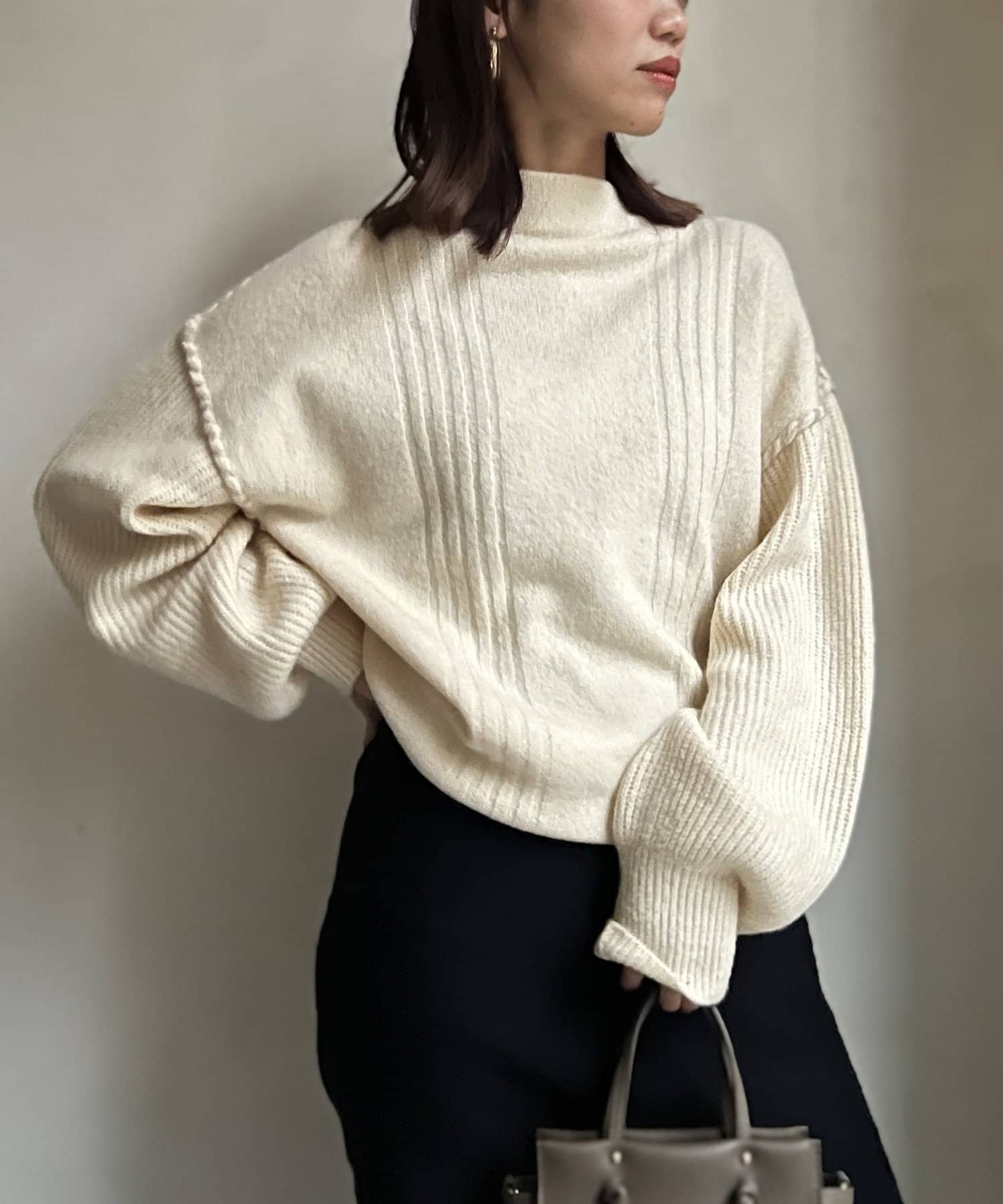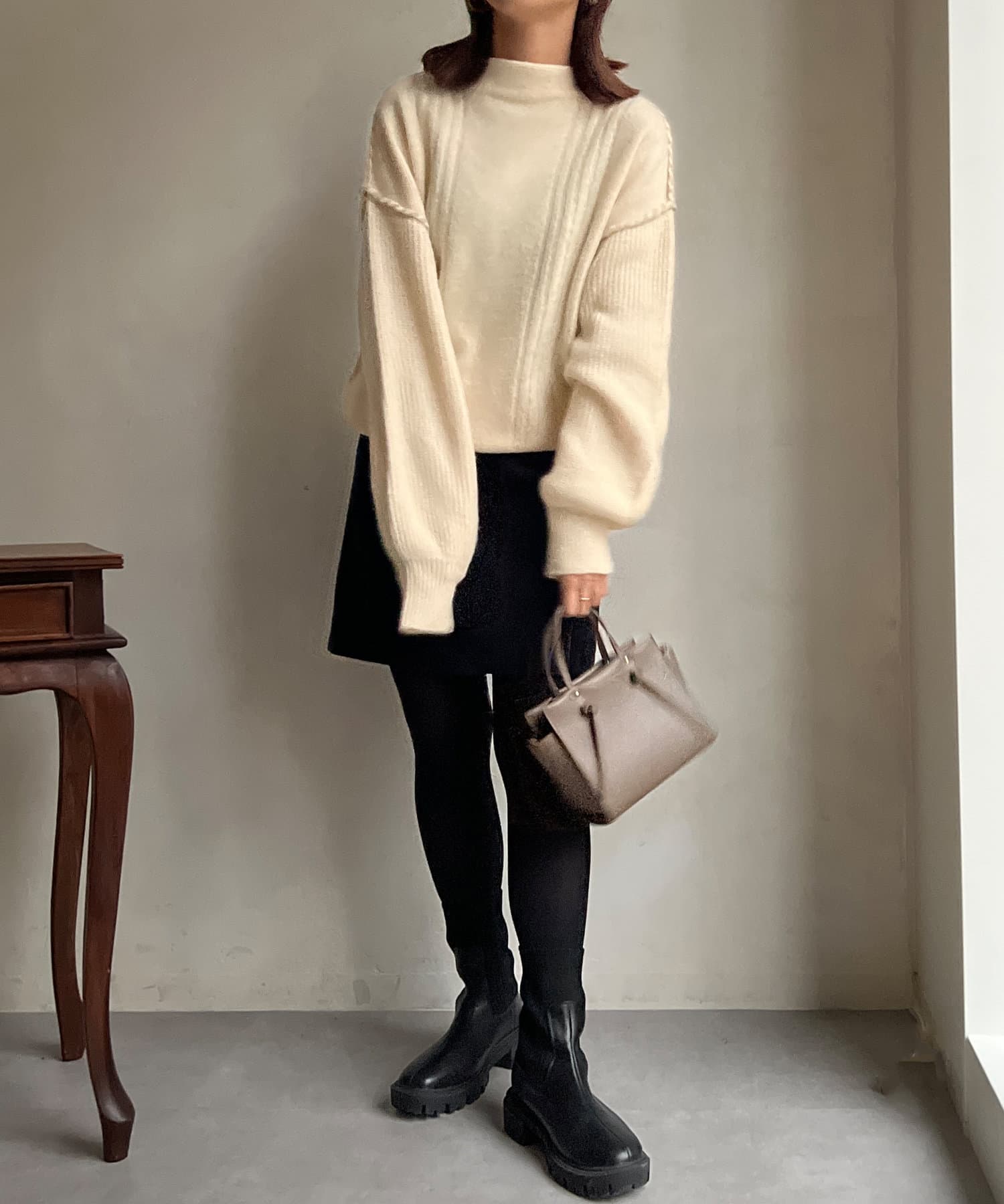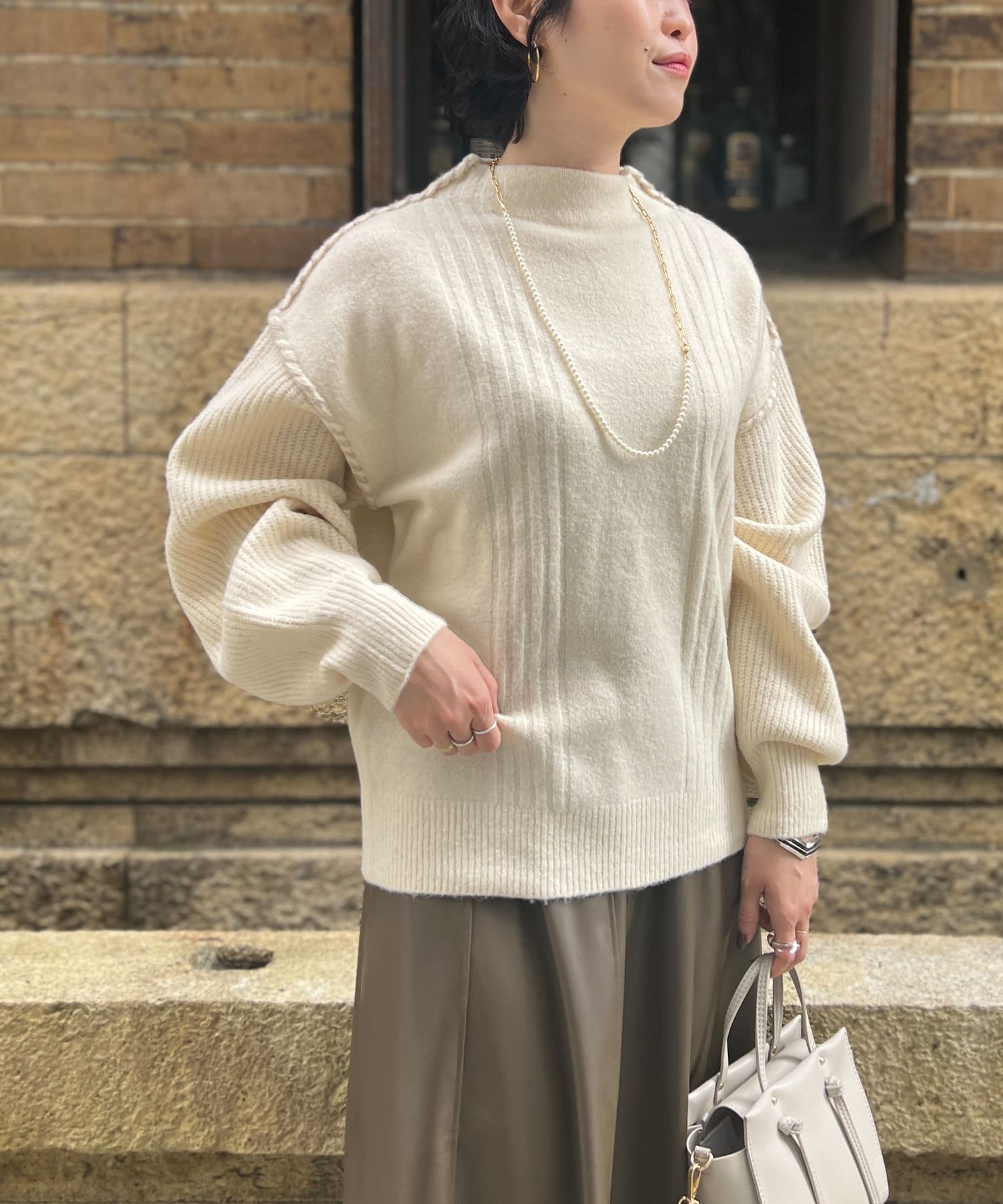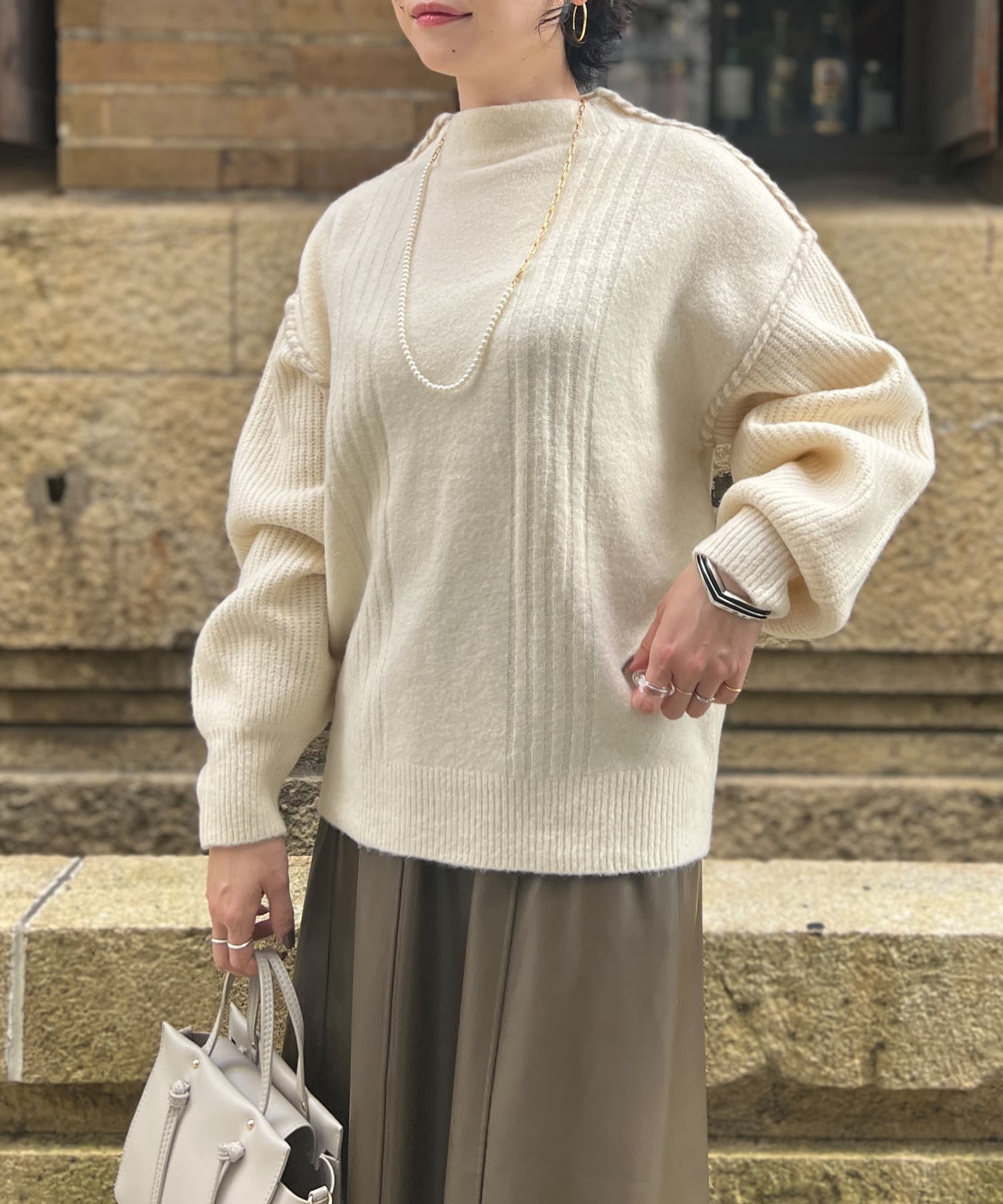 ・ゆったりとしたシルエットながら、ボトルネックで首を