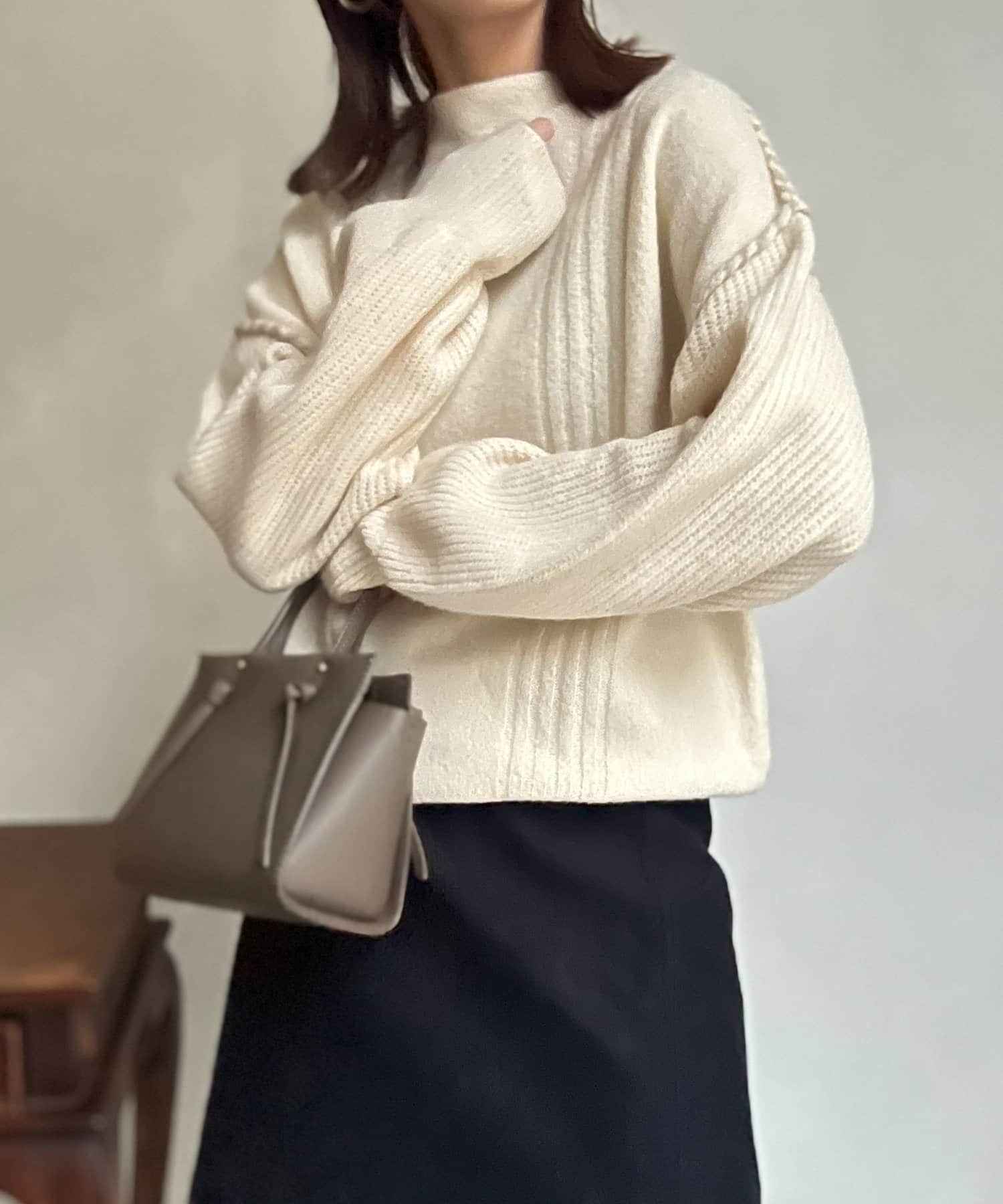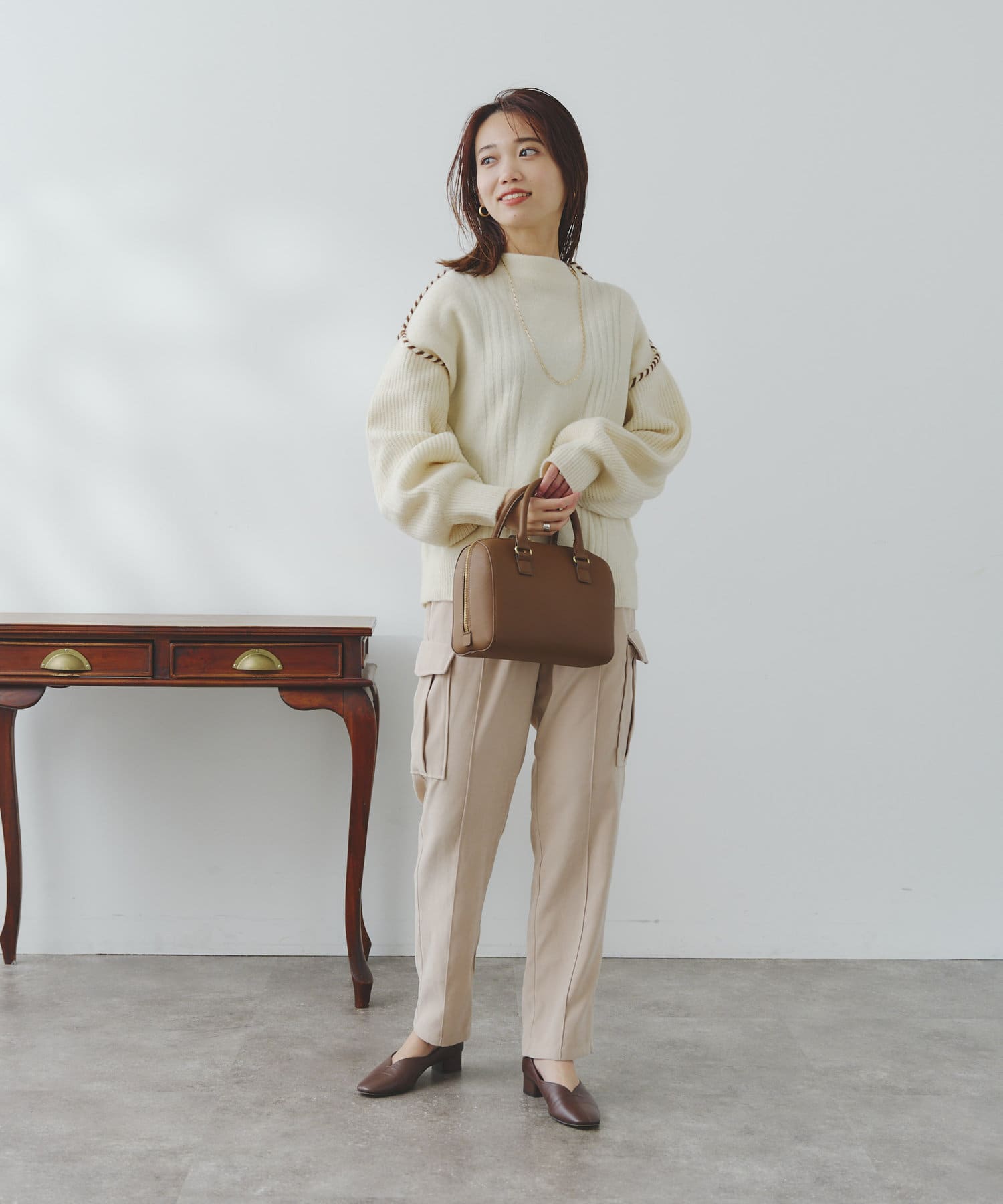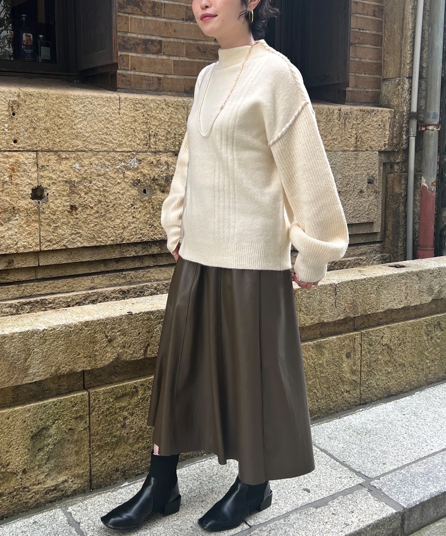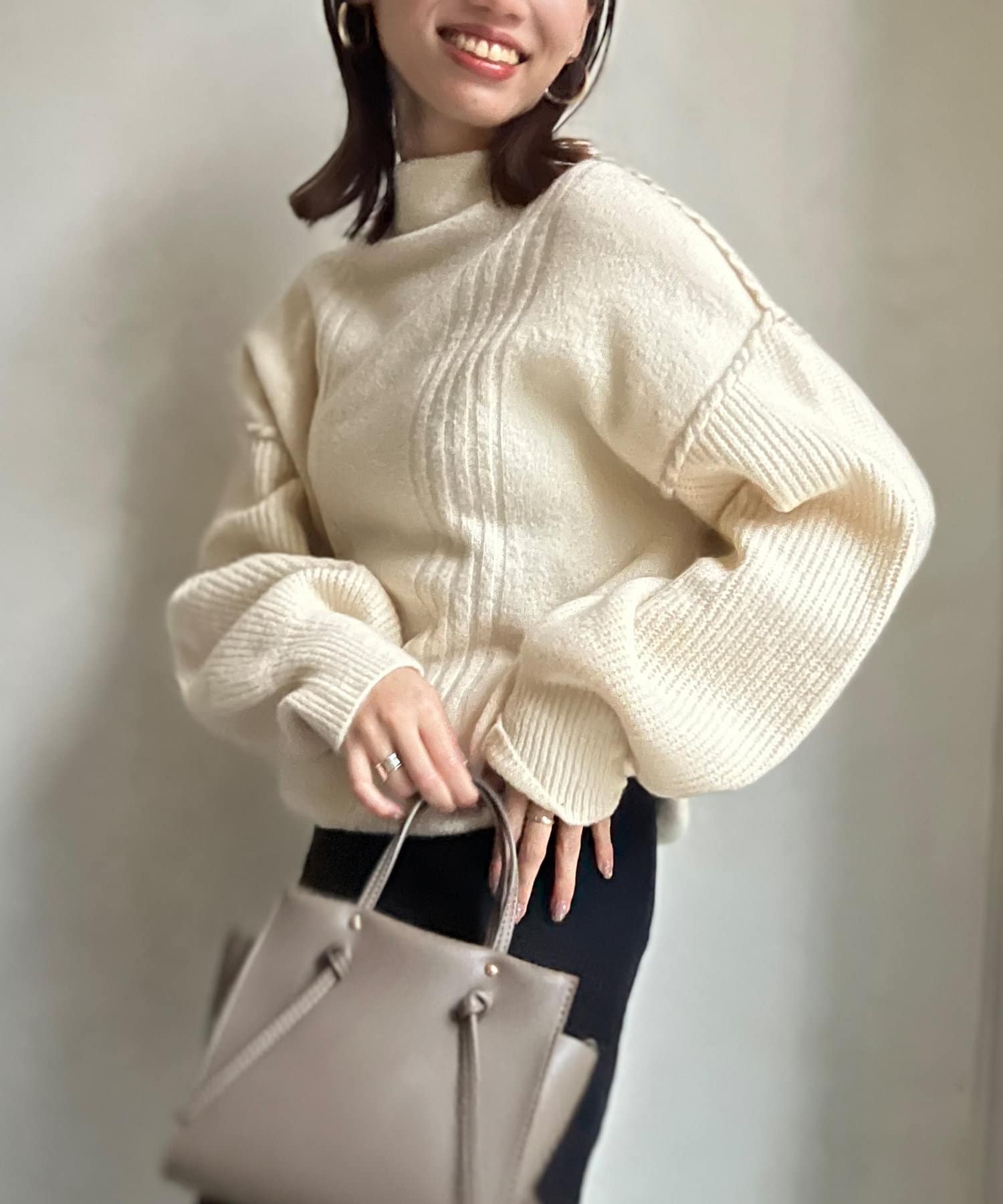 ・ゆったりとしたシルエットながら、ボトルネックで首を