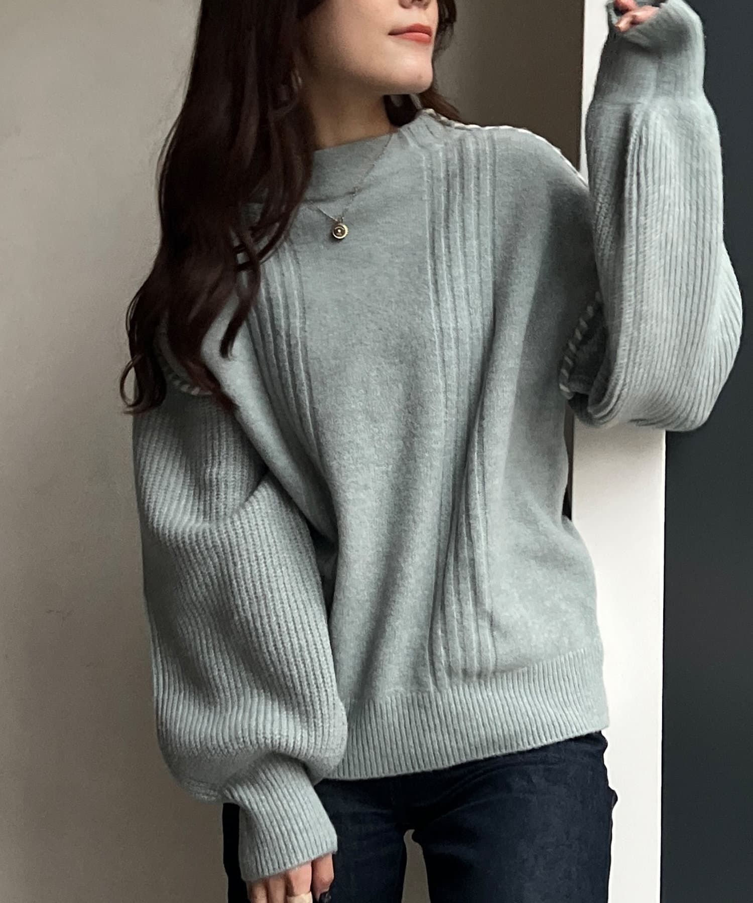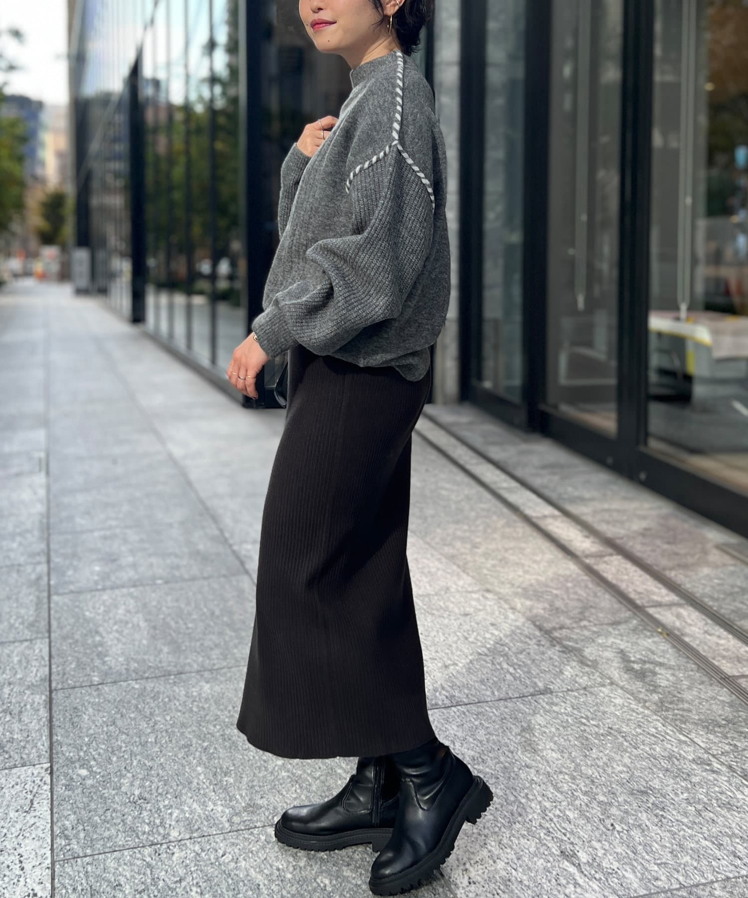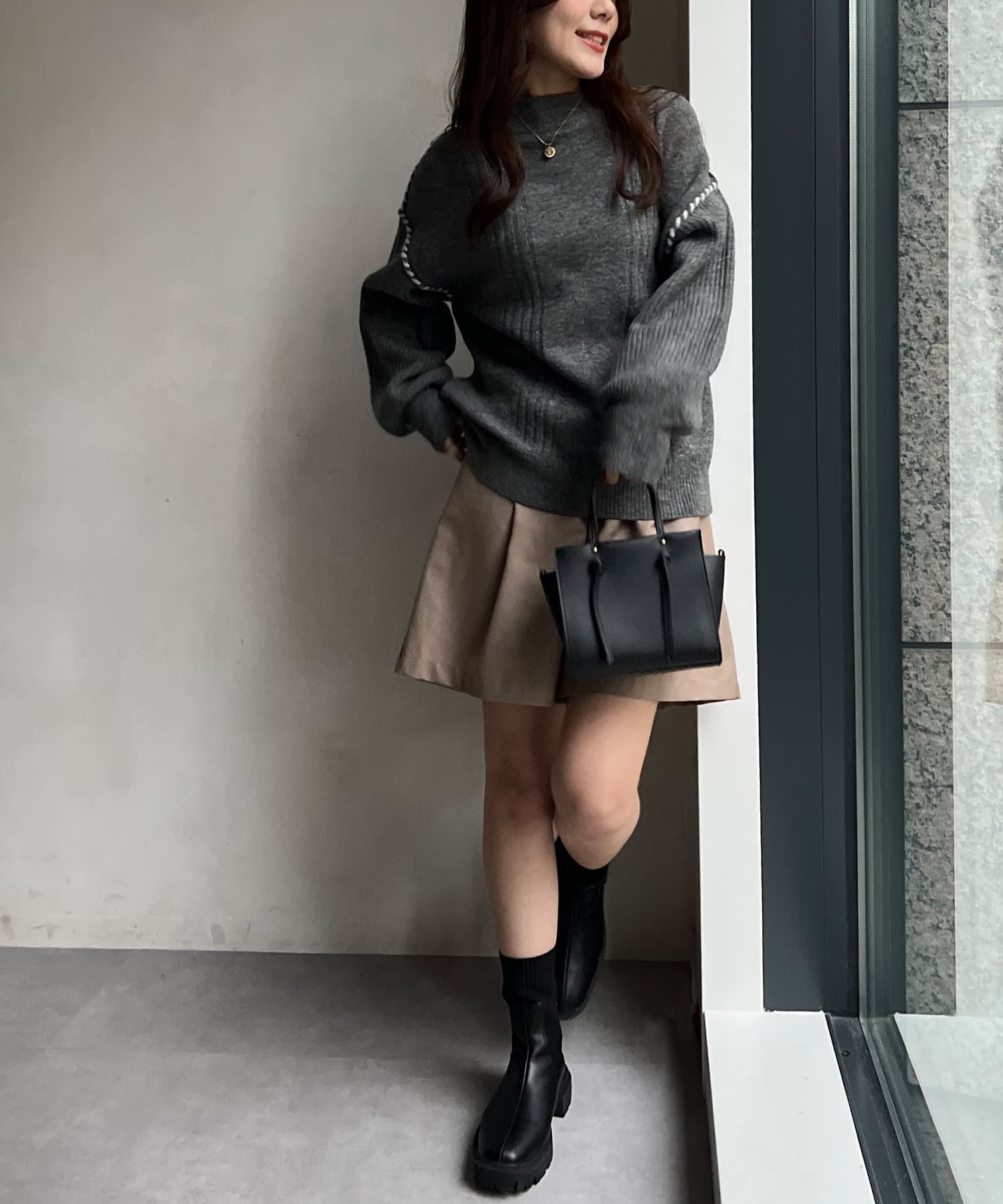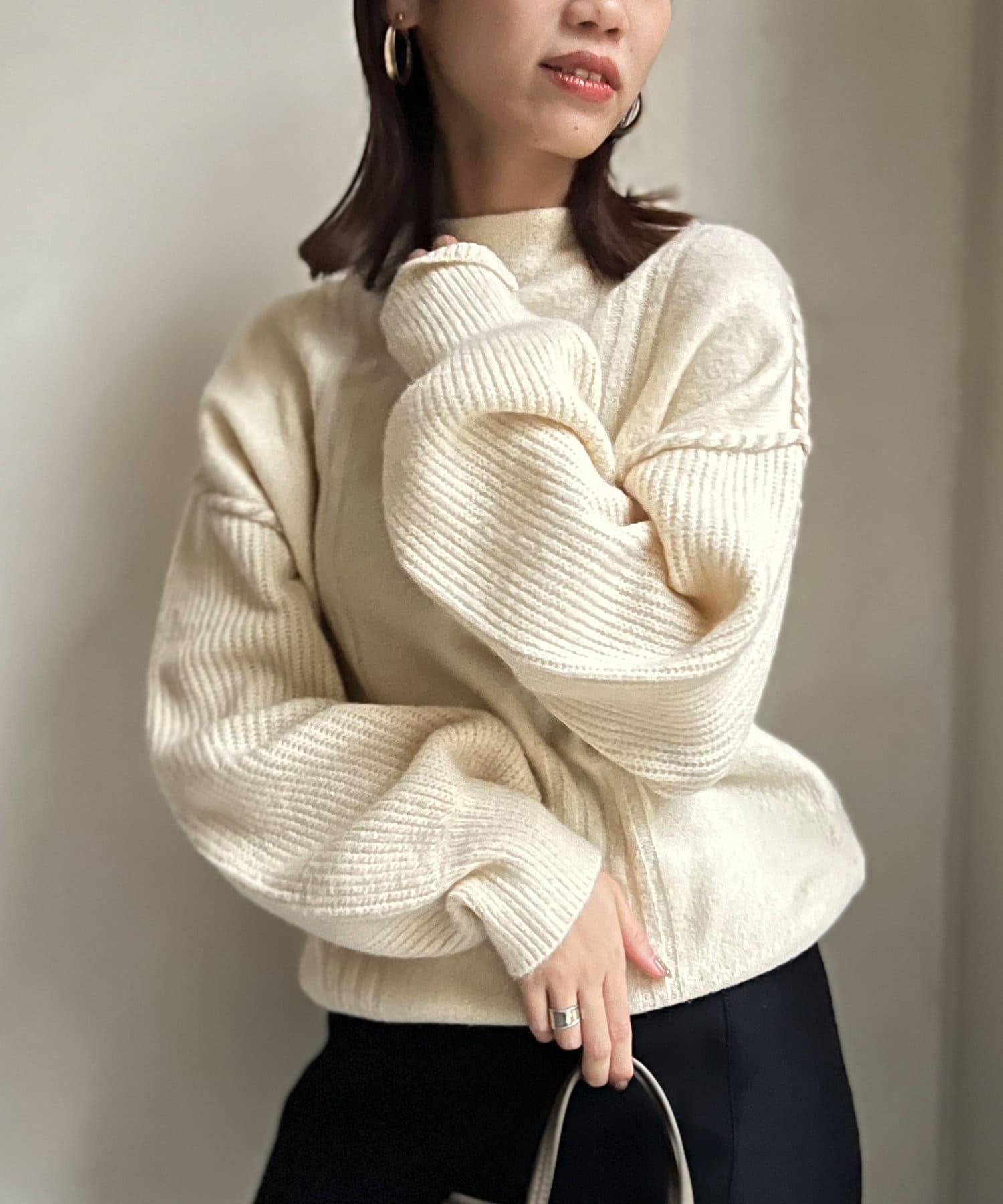 ・ゆったりとしたシルエットながら、ボトルネックで首を