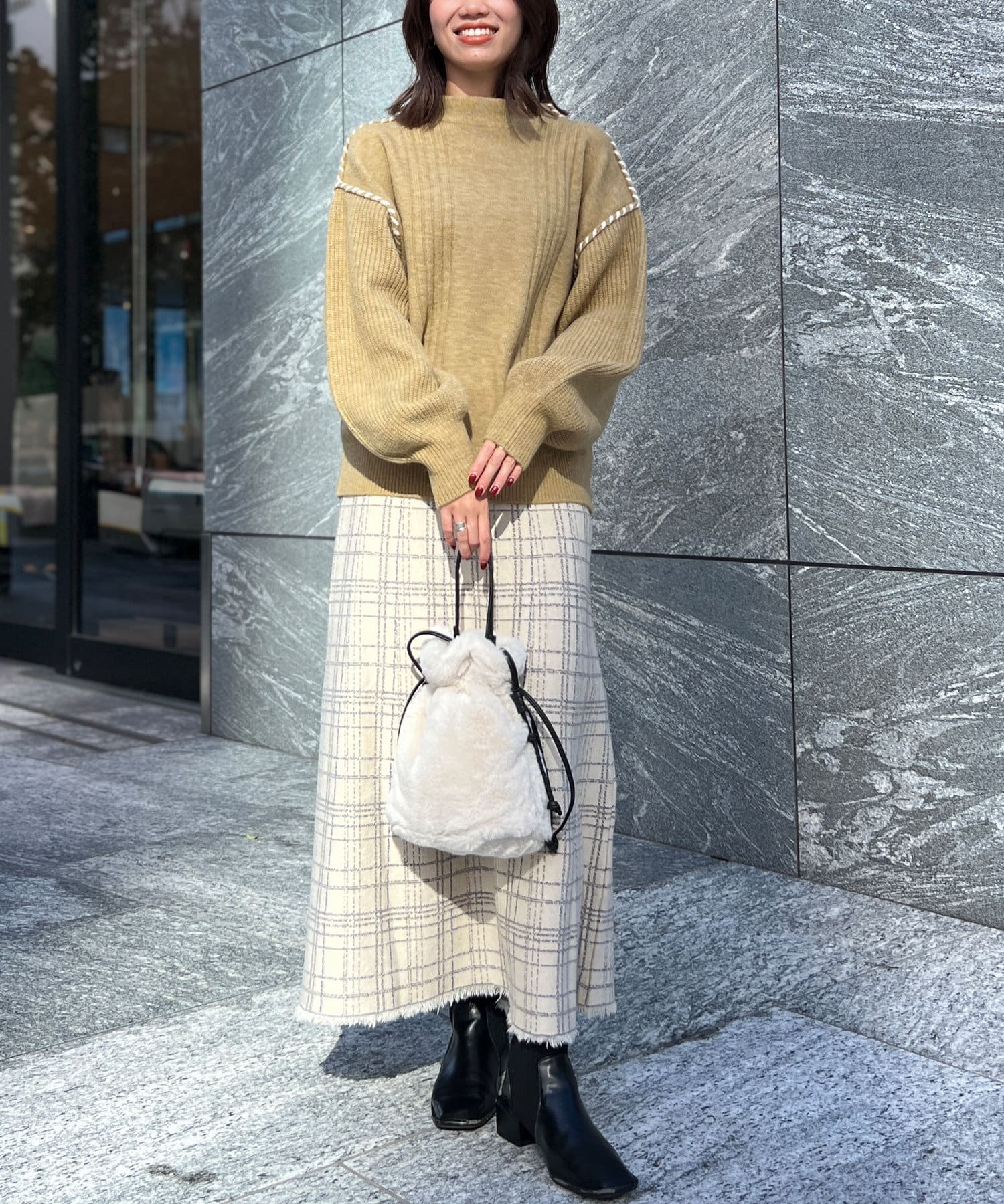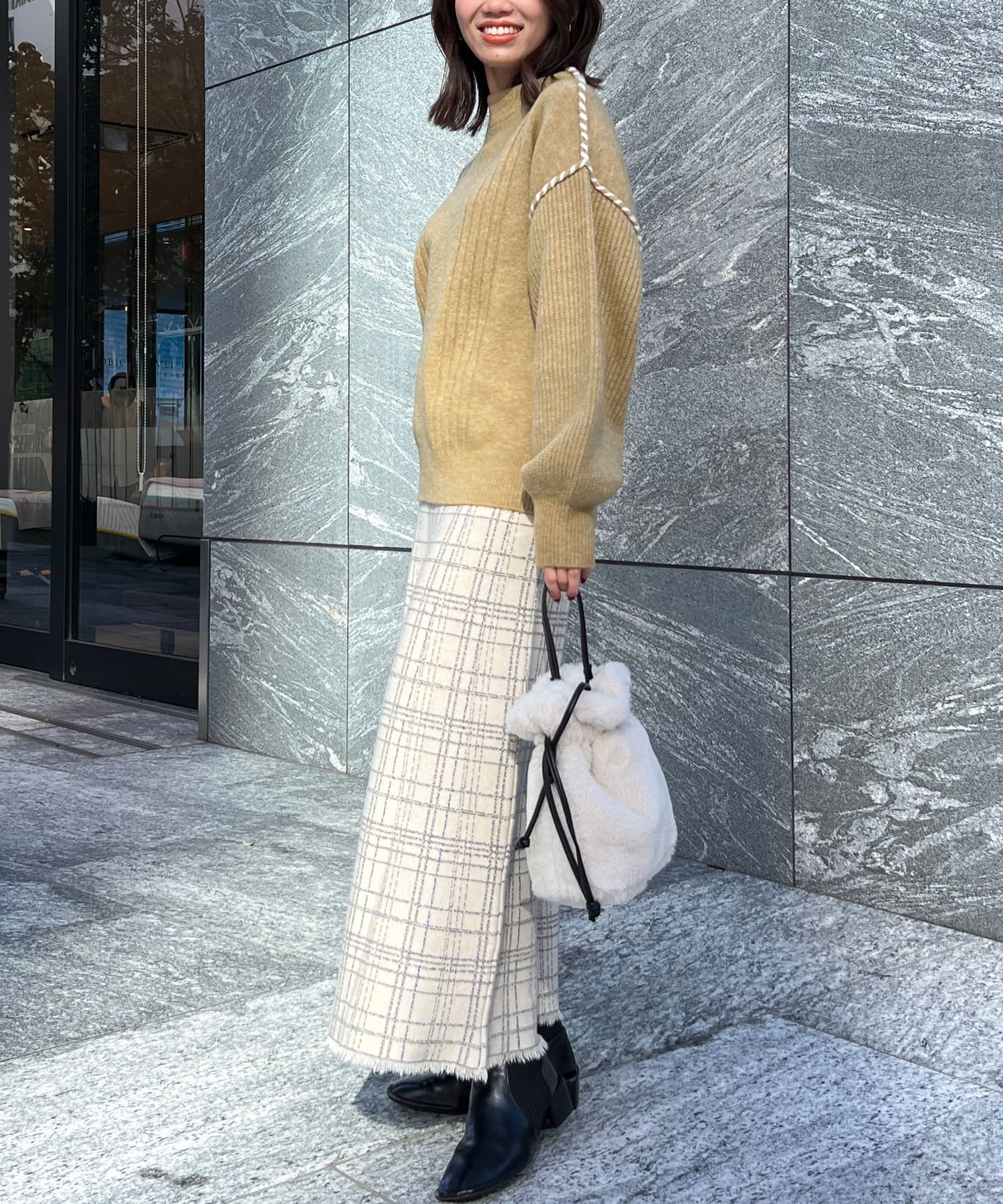 柔らかい生地感なので、ファーベストやジレと合わせたコーディネートもオススメです。