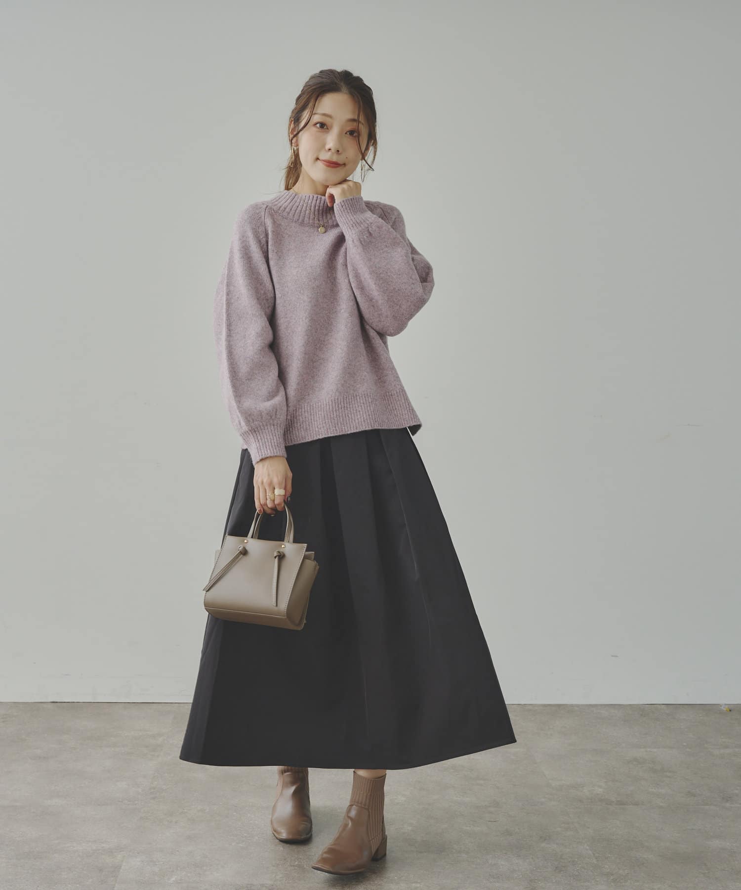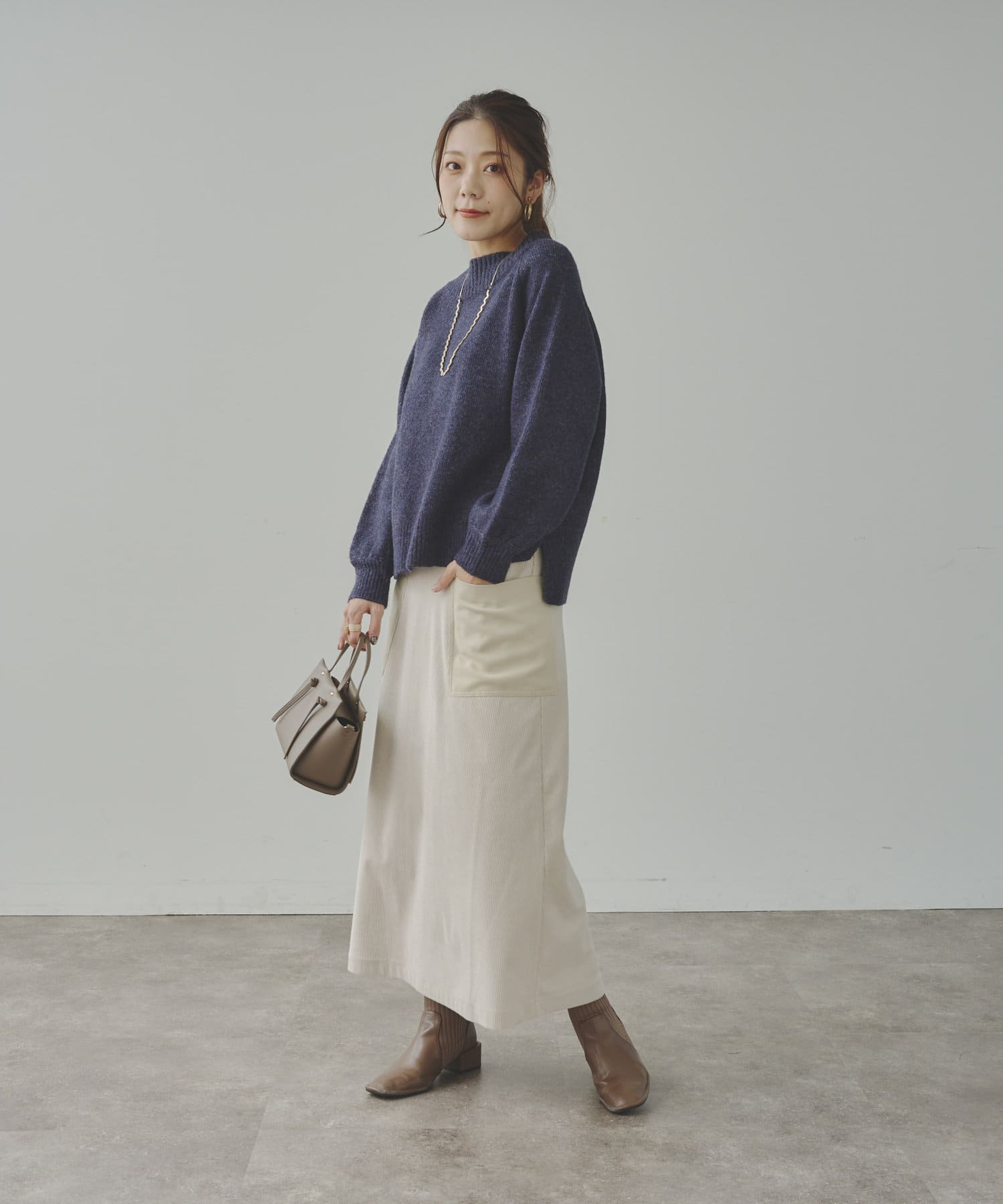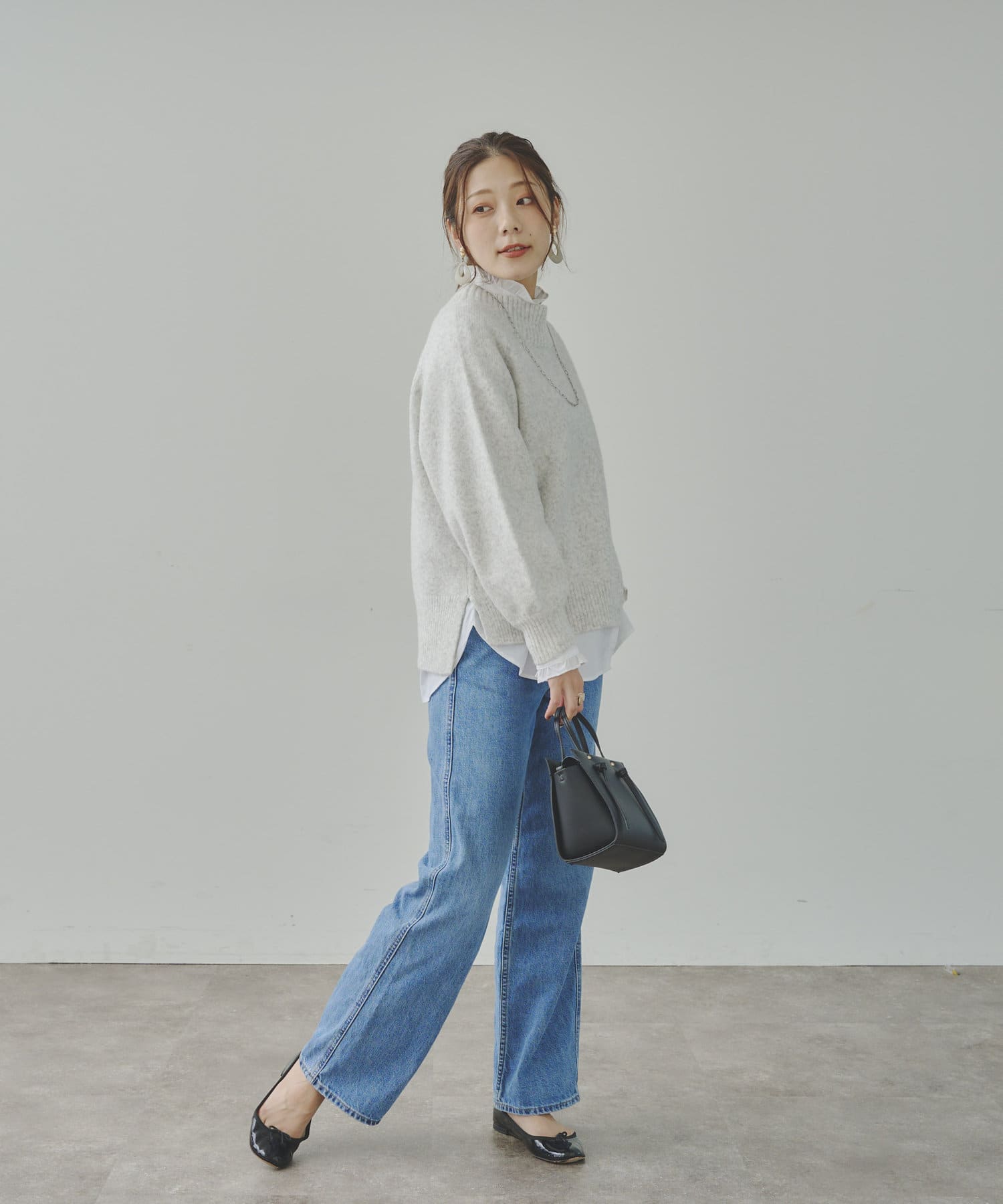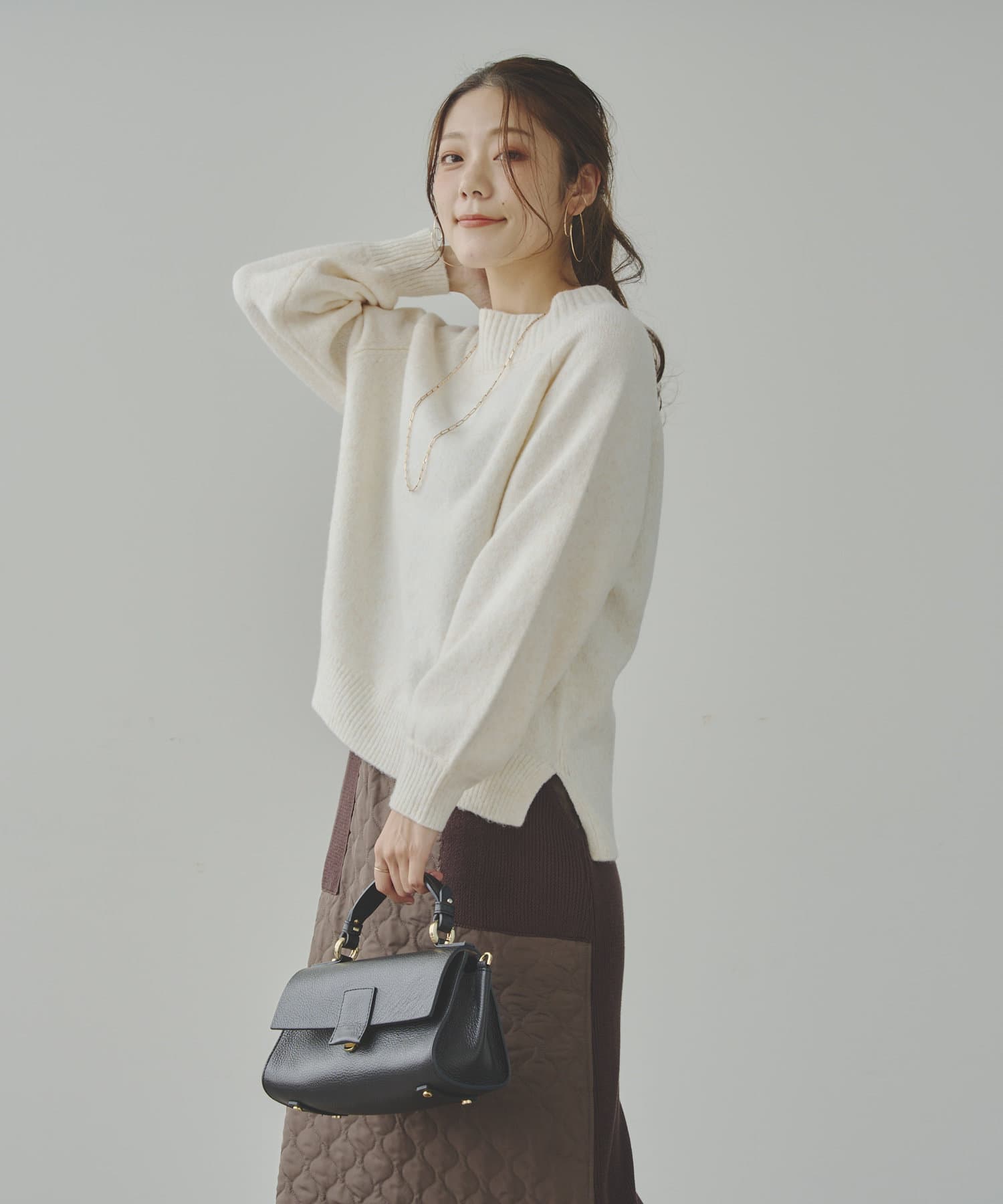 ・首元は太めのリブが入ったボトルネックで首回りをほっそりと見せてくれます。