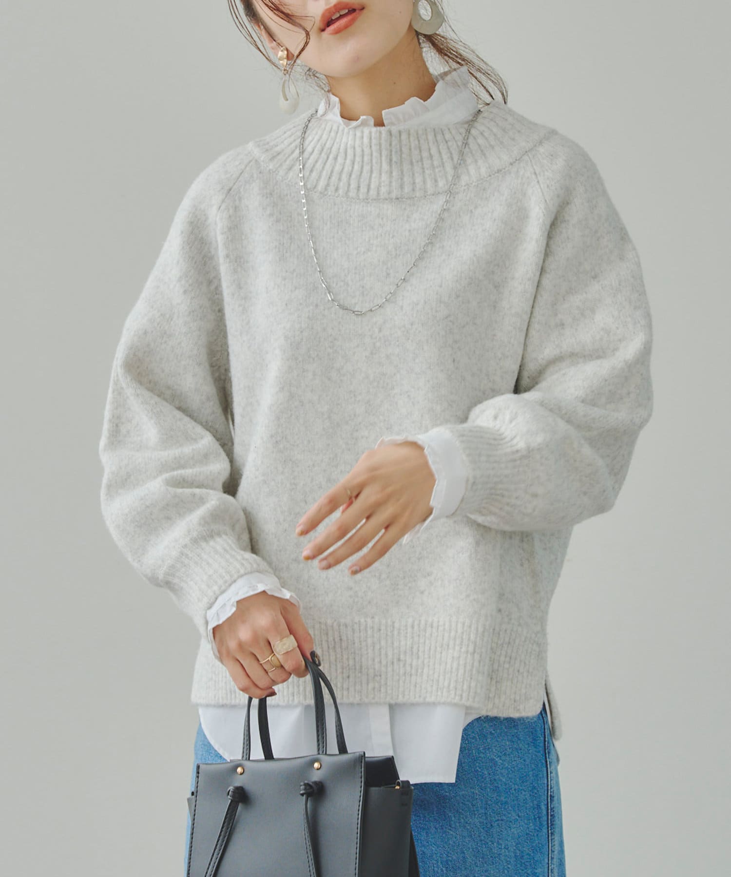 Chez toi(シェトワ) MIX糸ラグラン切替袖ボリュームプルオーバー