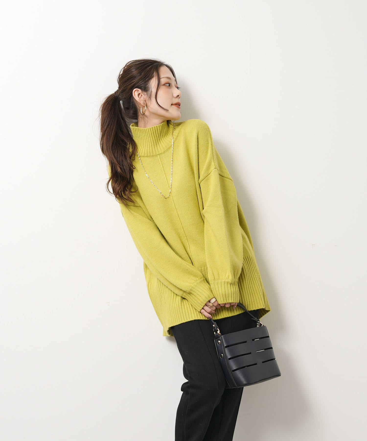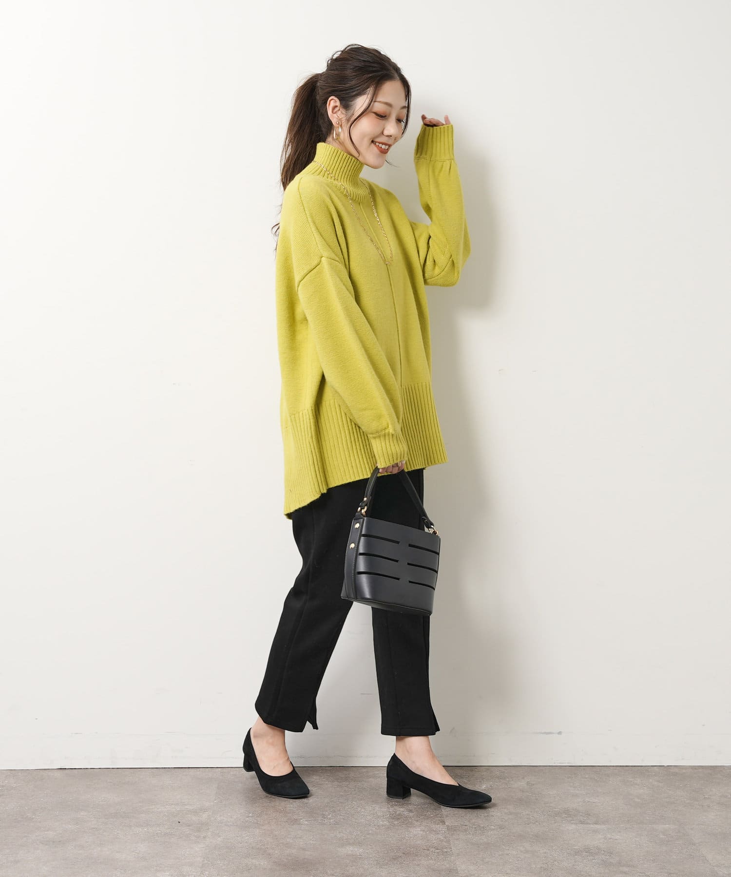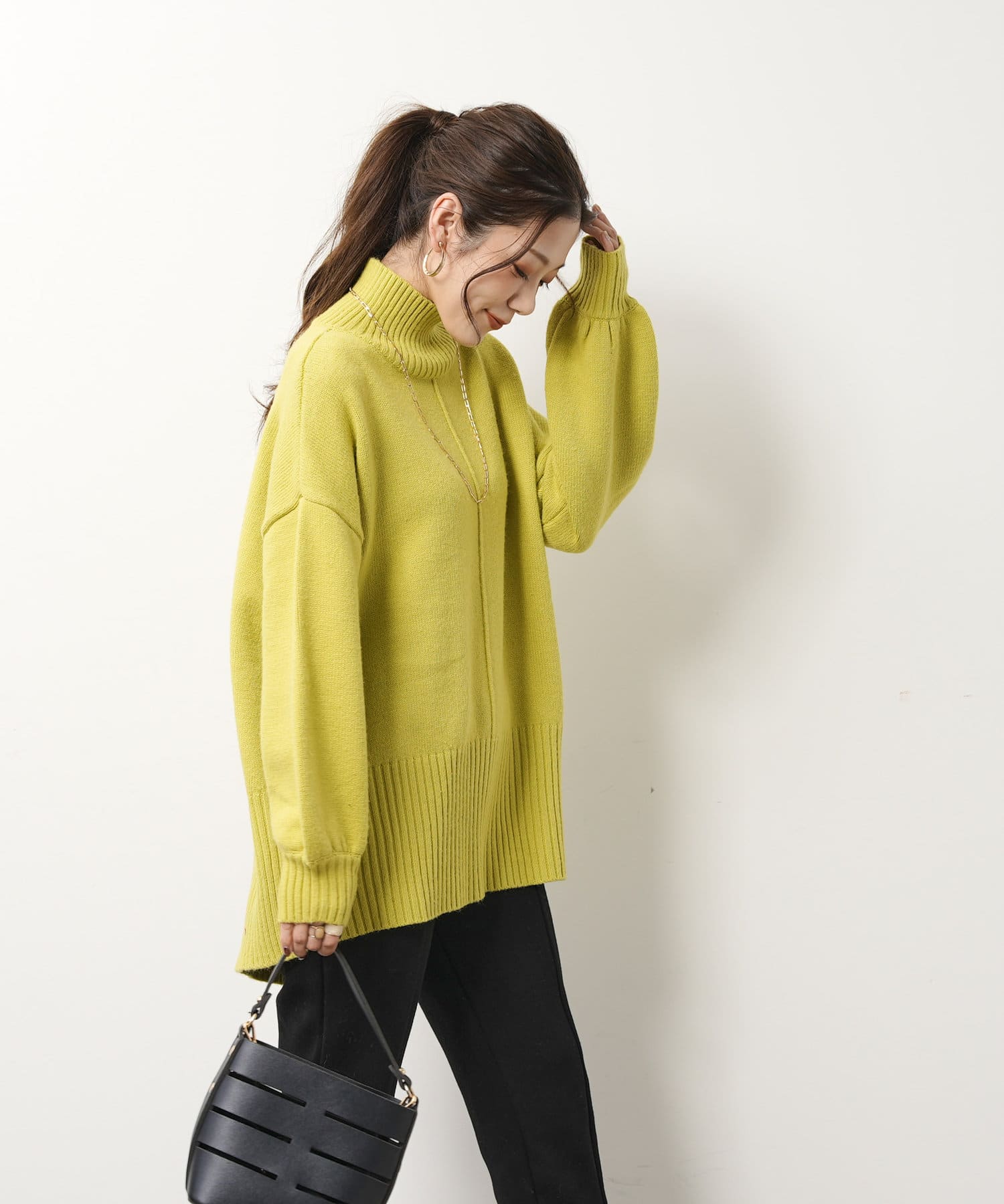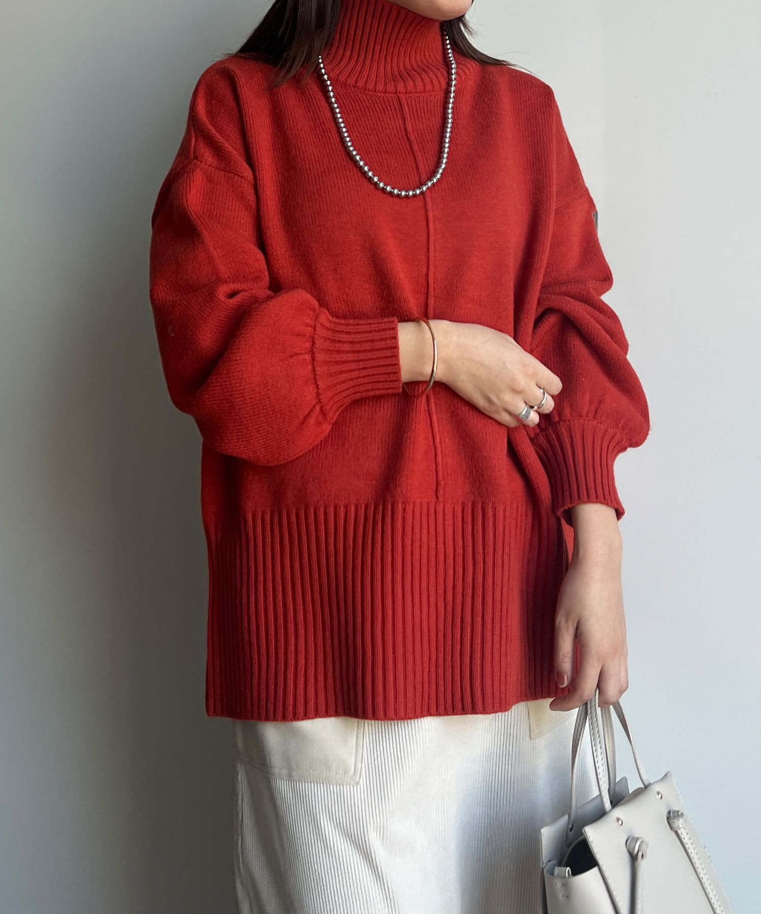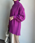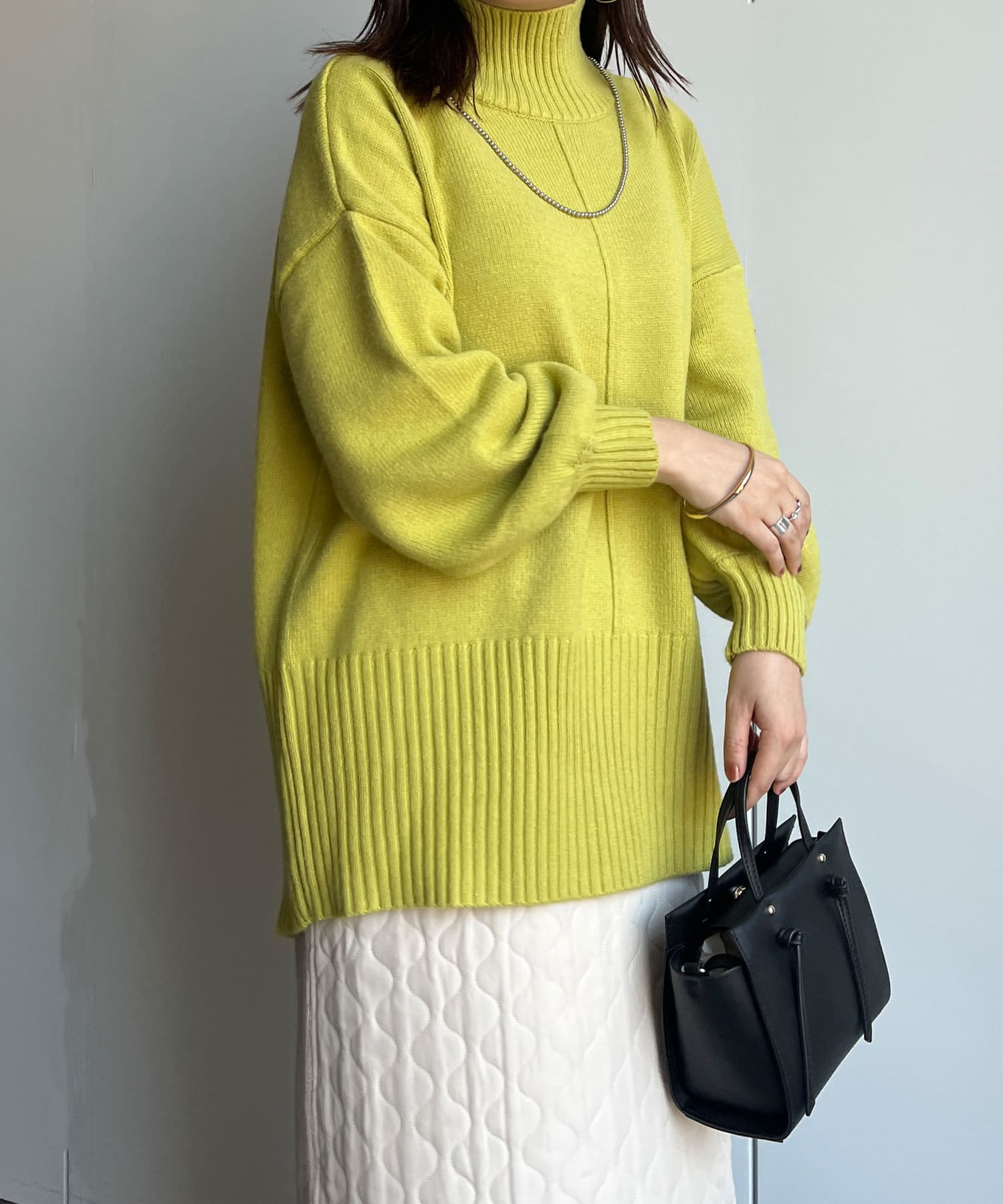 高さのあるタートルネックにバックスリットがざっくりと入ったカラーニットです。