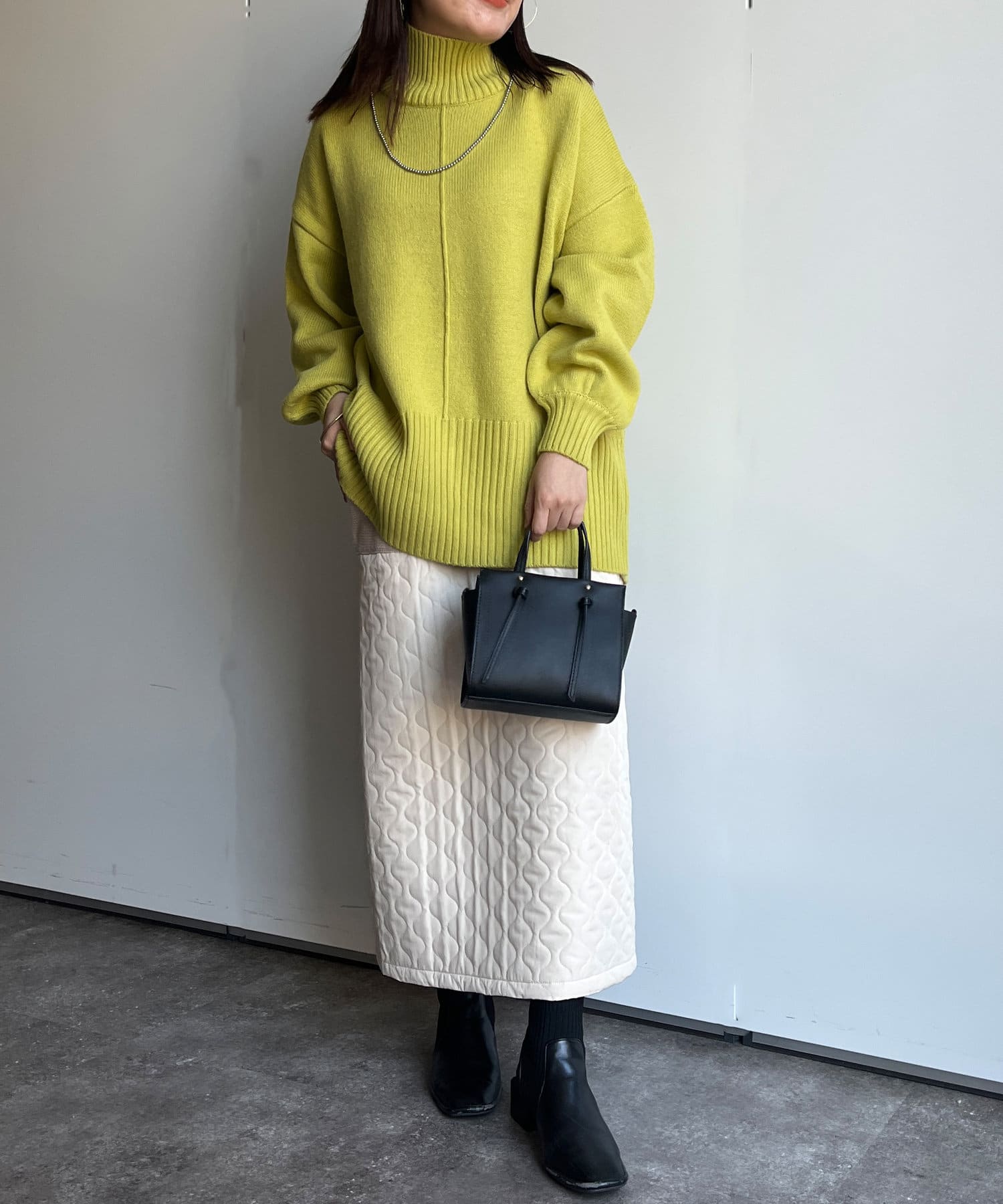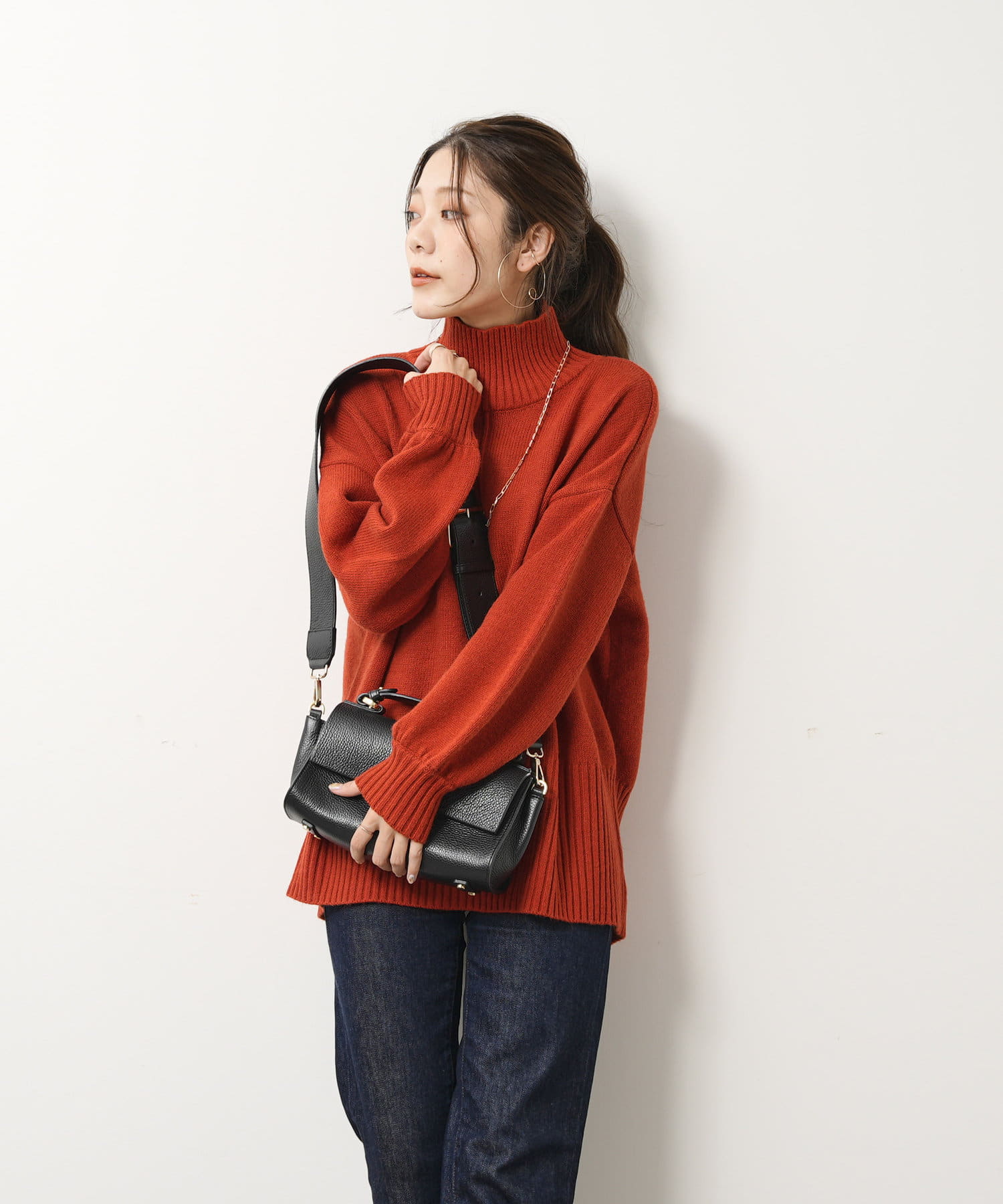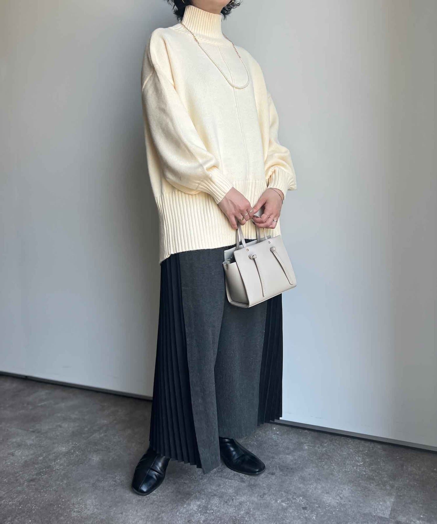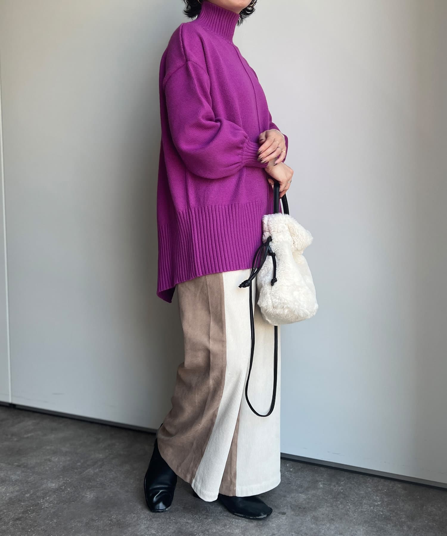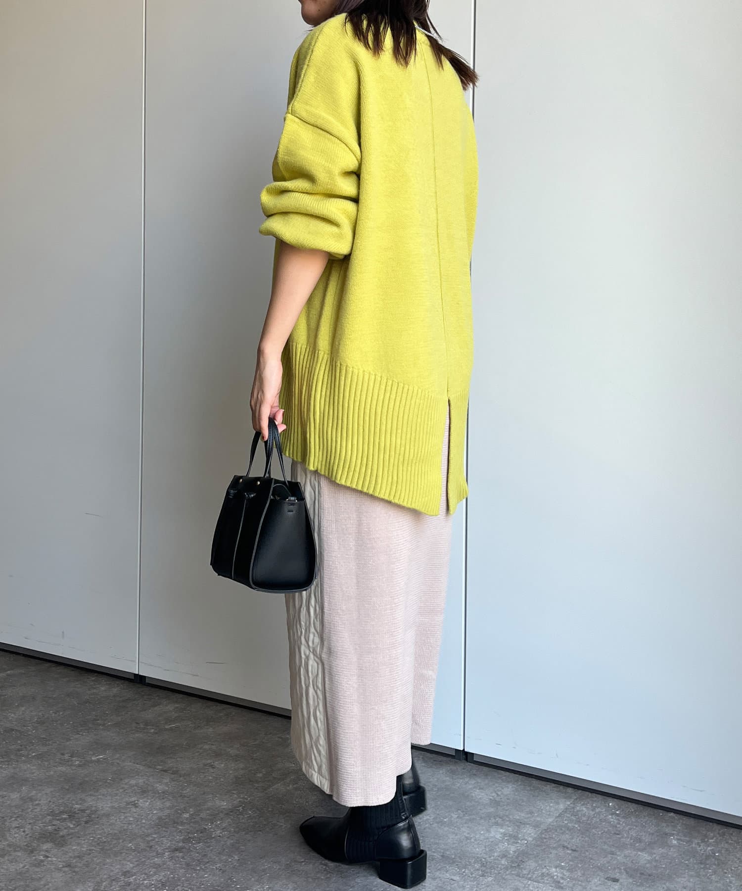 高さのあるタートルネックにバックスリットがざっくりと入ったカラーニットです。